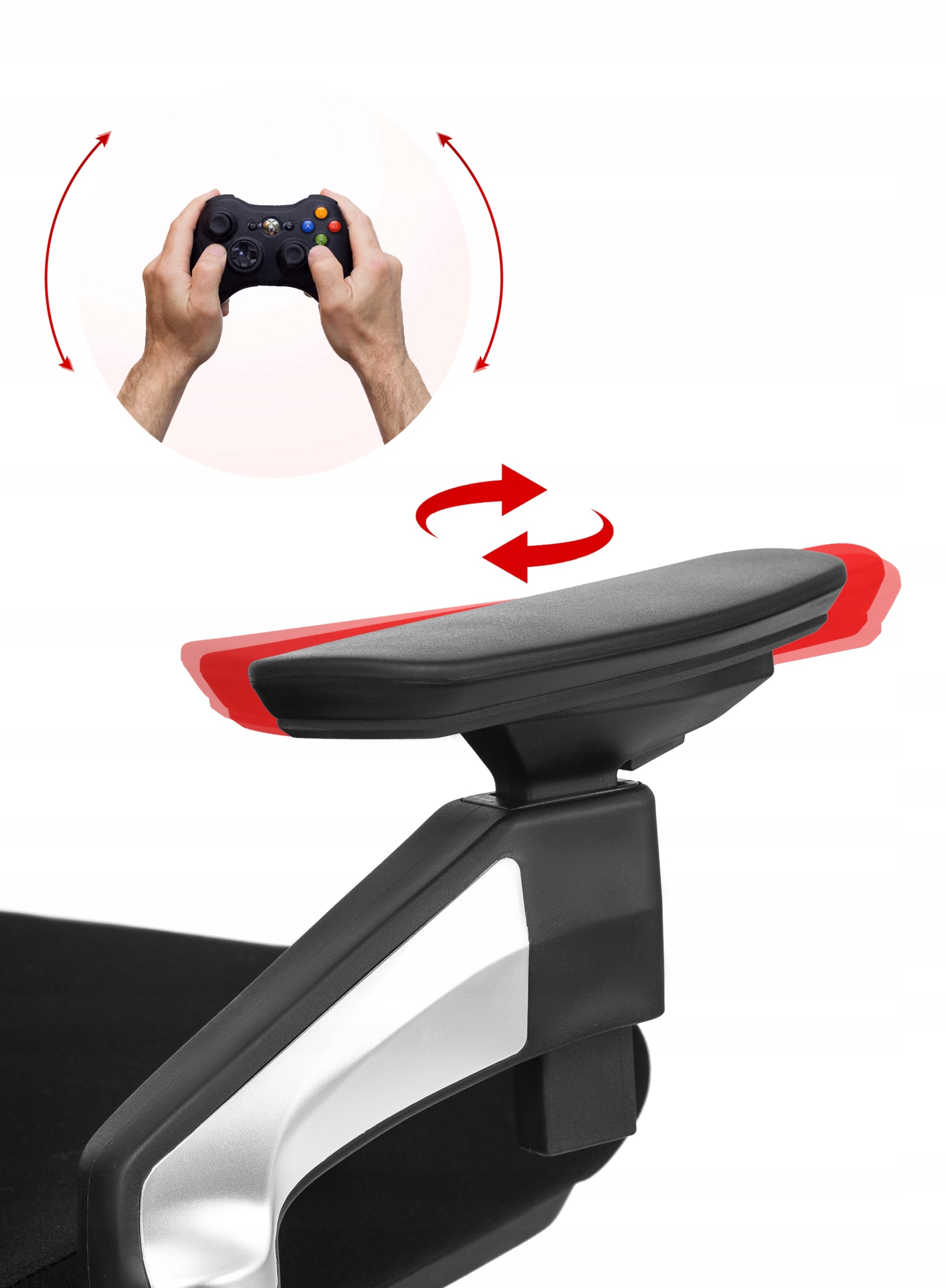 Fotel służy Ci nie tylko do pracy biurowej, ale również do gier? W takim razie na pewno docenisz możliwość obrotowej regulacji podłokietników. Dzięki tej funkcji możesz ustawić je bliżej siebie i wygodniej oprzeć przedramiona, co przełoży się na lepsze operowanie padem w dłoniach.