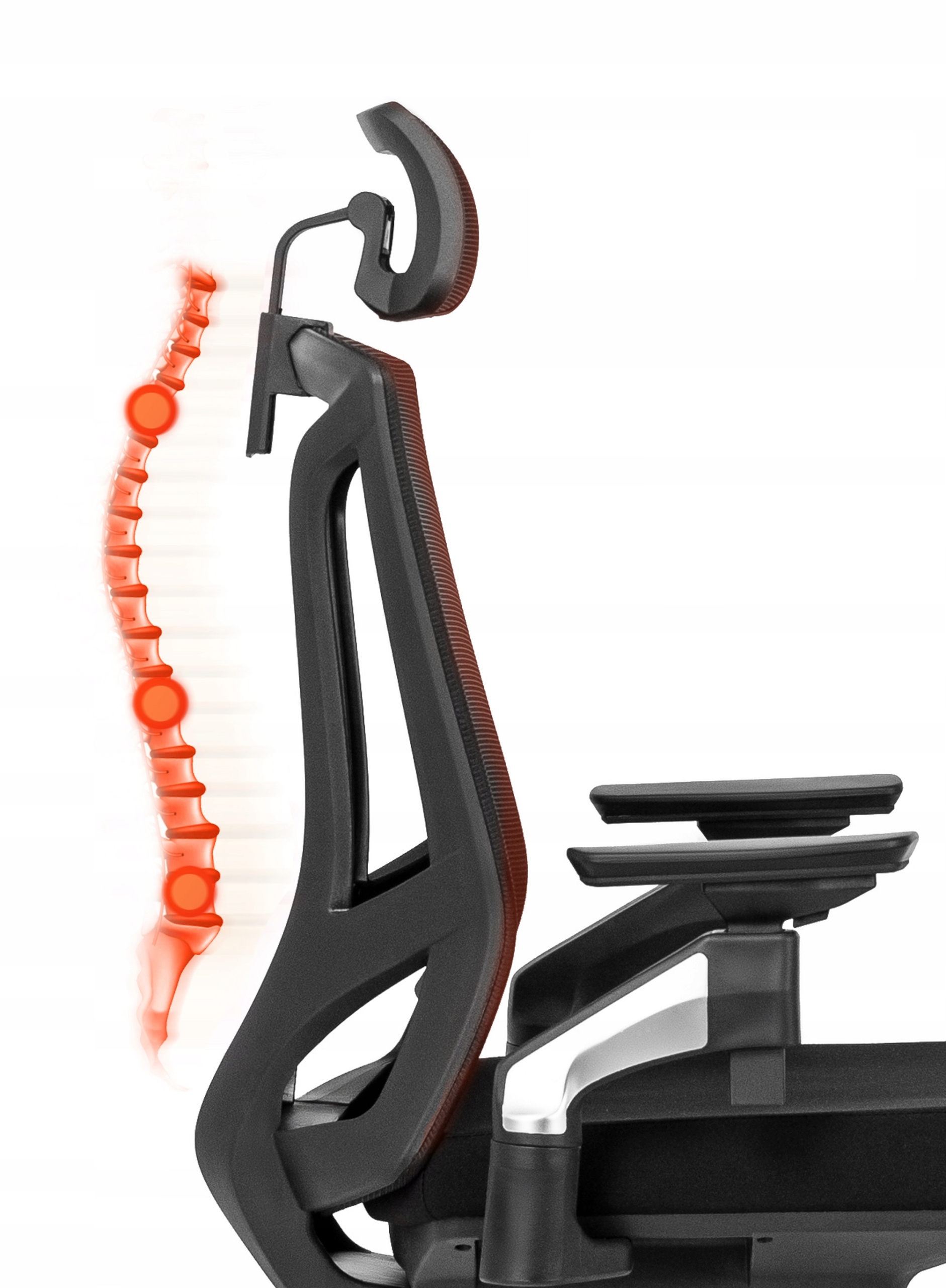 Możesz zmieniać pochylenie zagłówka oraz jego wysokość. To pozwoli Ci wygodnie oprzeć głowę, odciążając w ten sposób mięśnie karku i szyi.