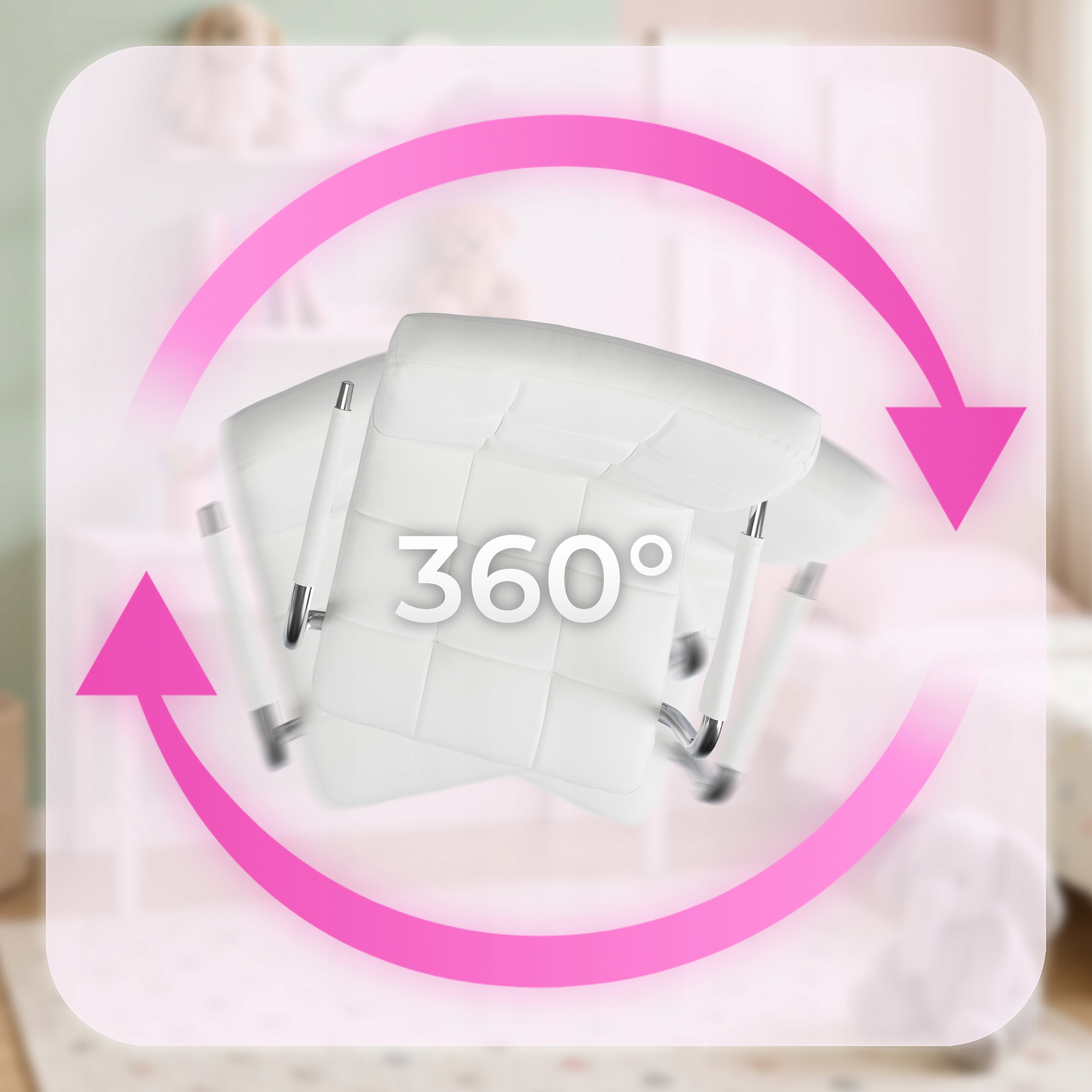 Fotel dziecięcy ASTRO został wyposażony w funkcję pełnego obrotu o 360°, dzięki czemu dziecko może swobodnie obracać się wokół własnej osi bez potrzeby wstawania.
