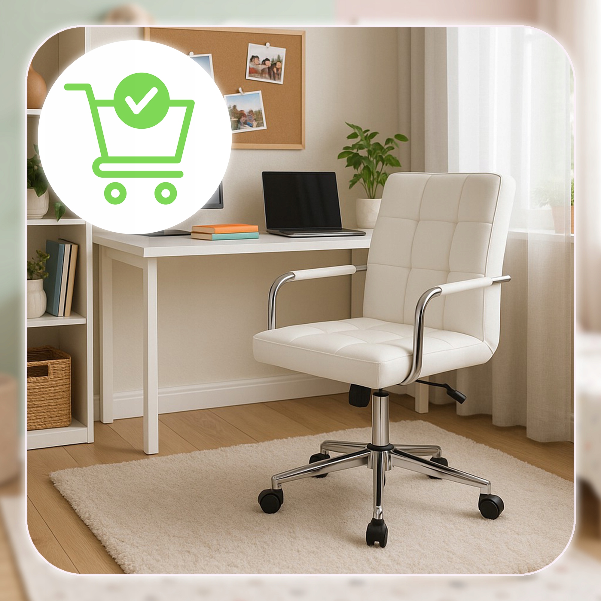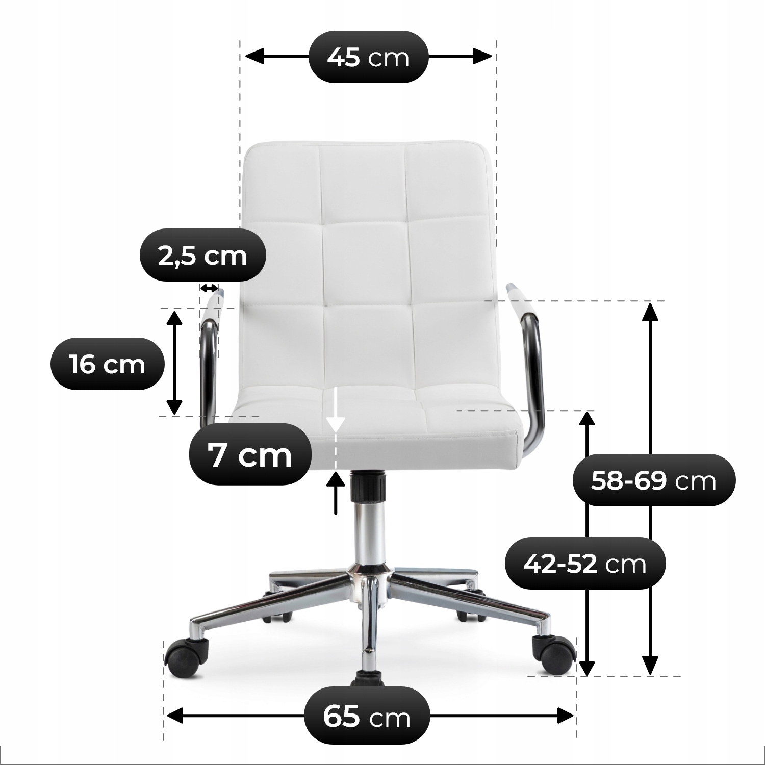 - Płynna regulacja wysokości – dopasuj fotel do biurka, toaletki lub stołu roboczego.
