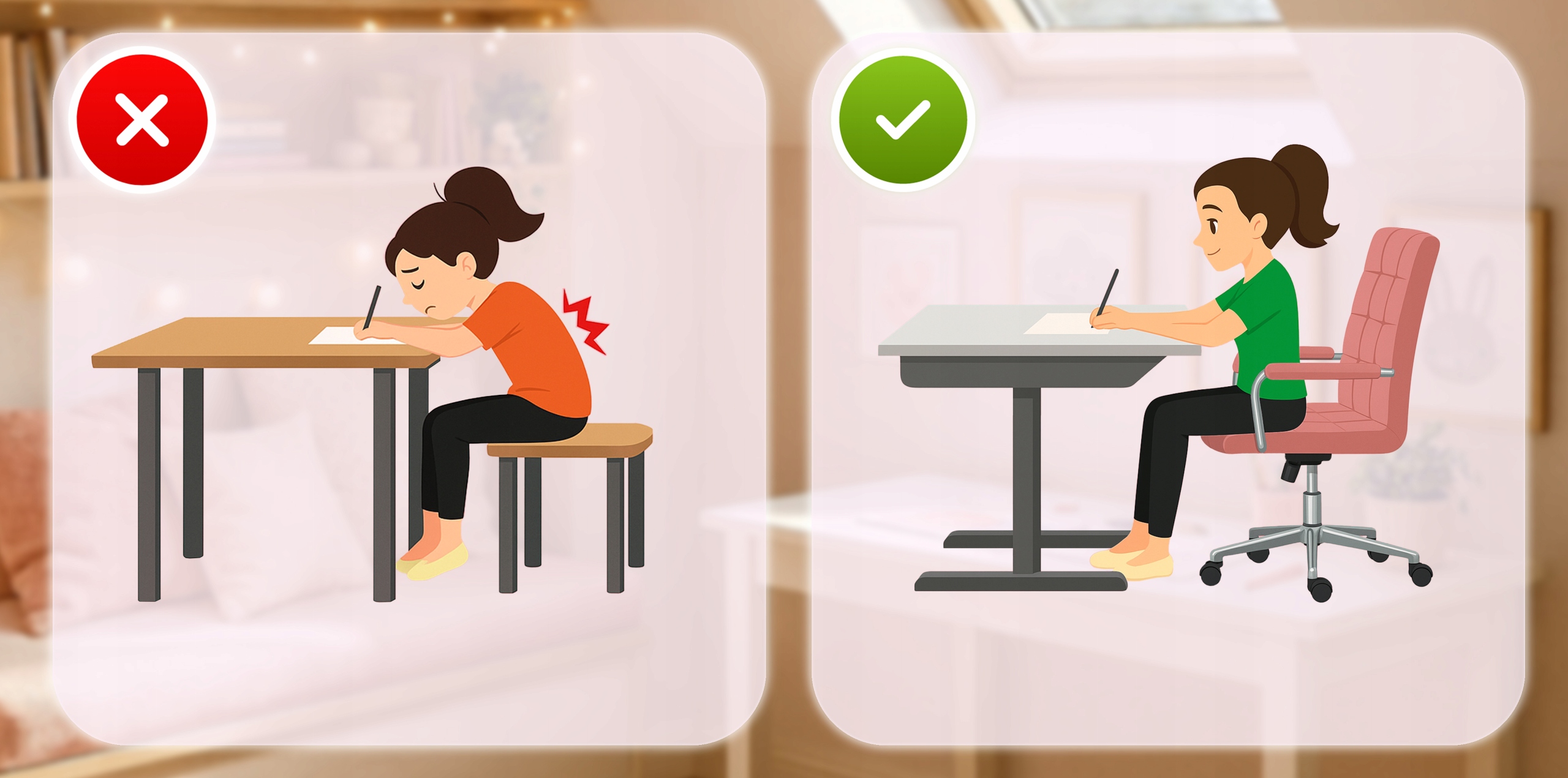 Zdrowa sylwetka dziecka zaczyna się od odpowiedniej pozycji siedzącej podczas nauki i zabawy. Wielogodzinne siedzenie na zwykłym krześle może prowadzić do garbienia się, napięć mięśniowych, a w konsekwencji nawet do wad postawy.