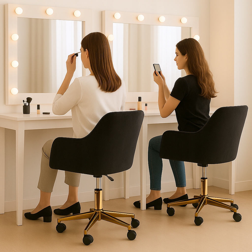- Regulowana wysokość – idealne dopasowanie do biurka, toaletki lub stołu roboczego.