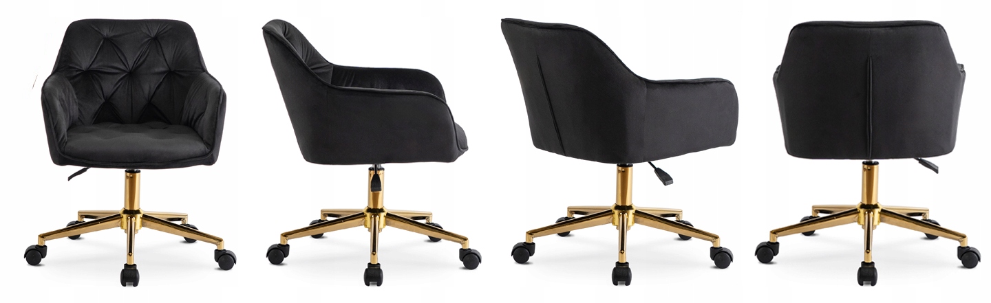 Stylowe, funkcjonalne i bajecznie wygodne – krzesło Konor w odcieniu czarnym ze złotą nogą to wymarzony dodatek do pokoju każdej nastolatki. Pikowane oparcie, miękki welur i złoty stelaż tworzą elegancką całość, która pasuje zarówno do pokoju, toaletki, biurka, jak i kącika kreatywnego.
