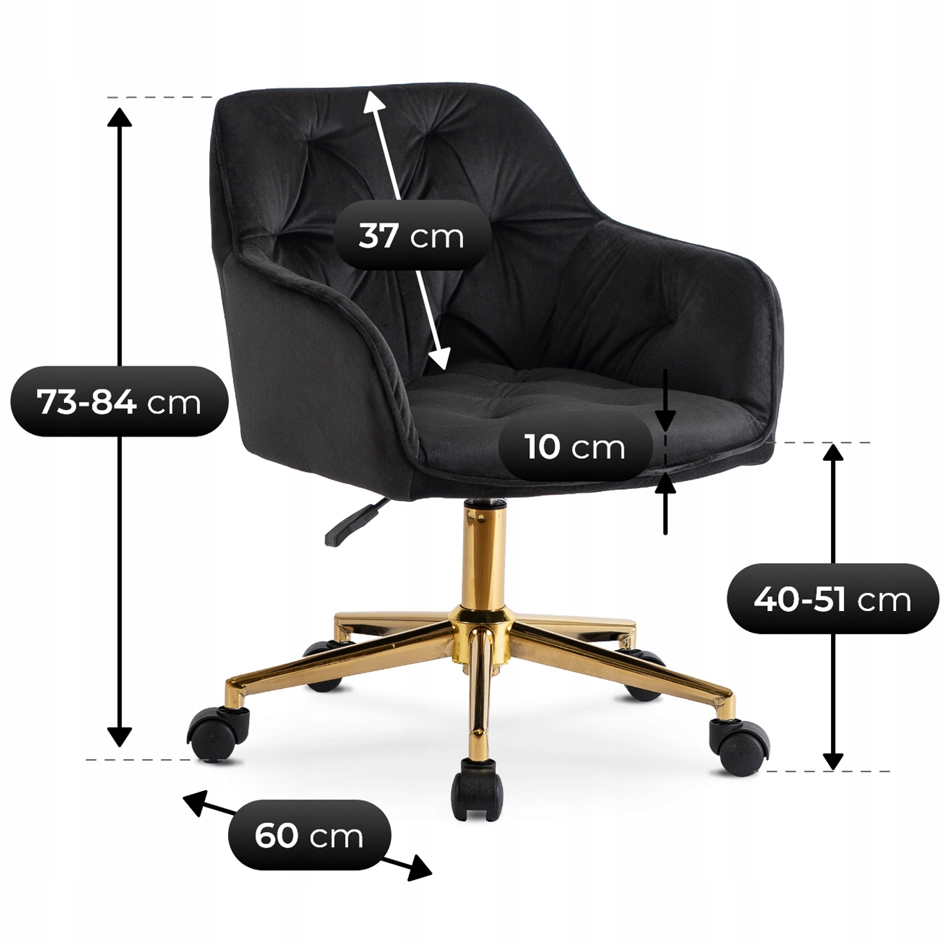 - Wysokość fotela: 73-84 cm