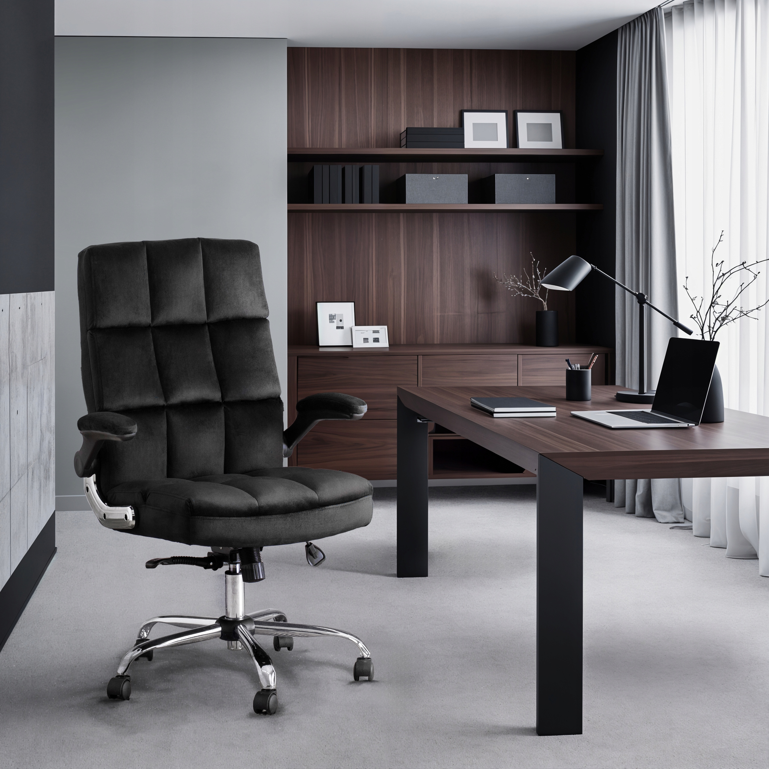Pamiętaj, że tapicerka fotela obrotowego nie jest bez znaczenia. Jakościowy fotel gabinetowy nie może być tapicerowany przypadkową tkaniną. W modelu LONDON tapicerkę stanowi aksamitna w dotyku tkanina typu velvet. To bardzo wytrzymały materiał tapicerski z wyższej półki, ponieważ posiada dodatkowo wyjątkowe walory estetyczne.