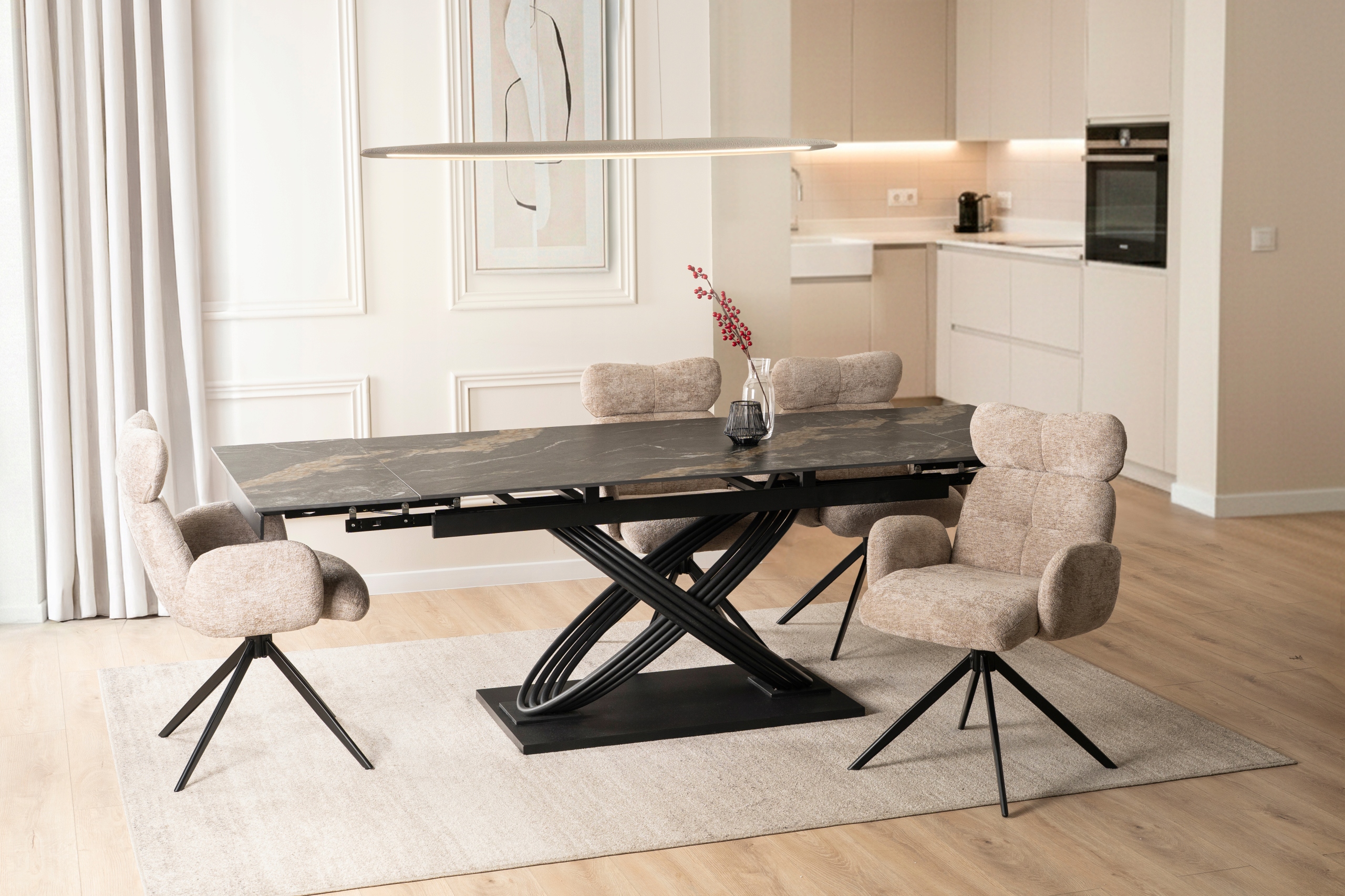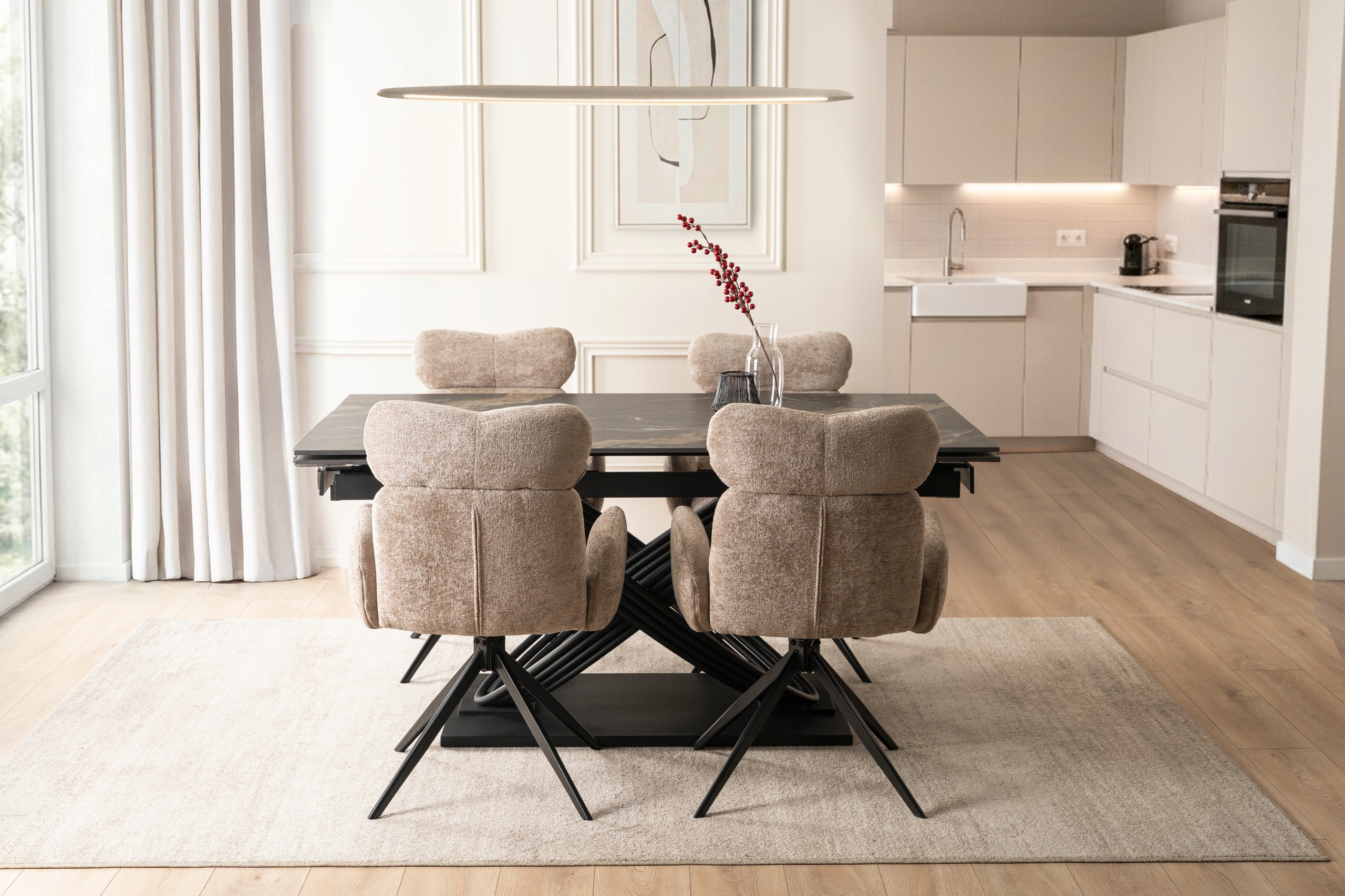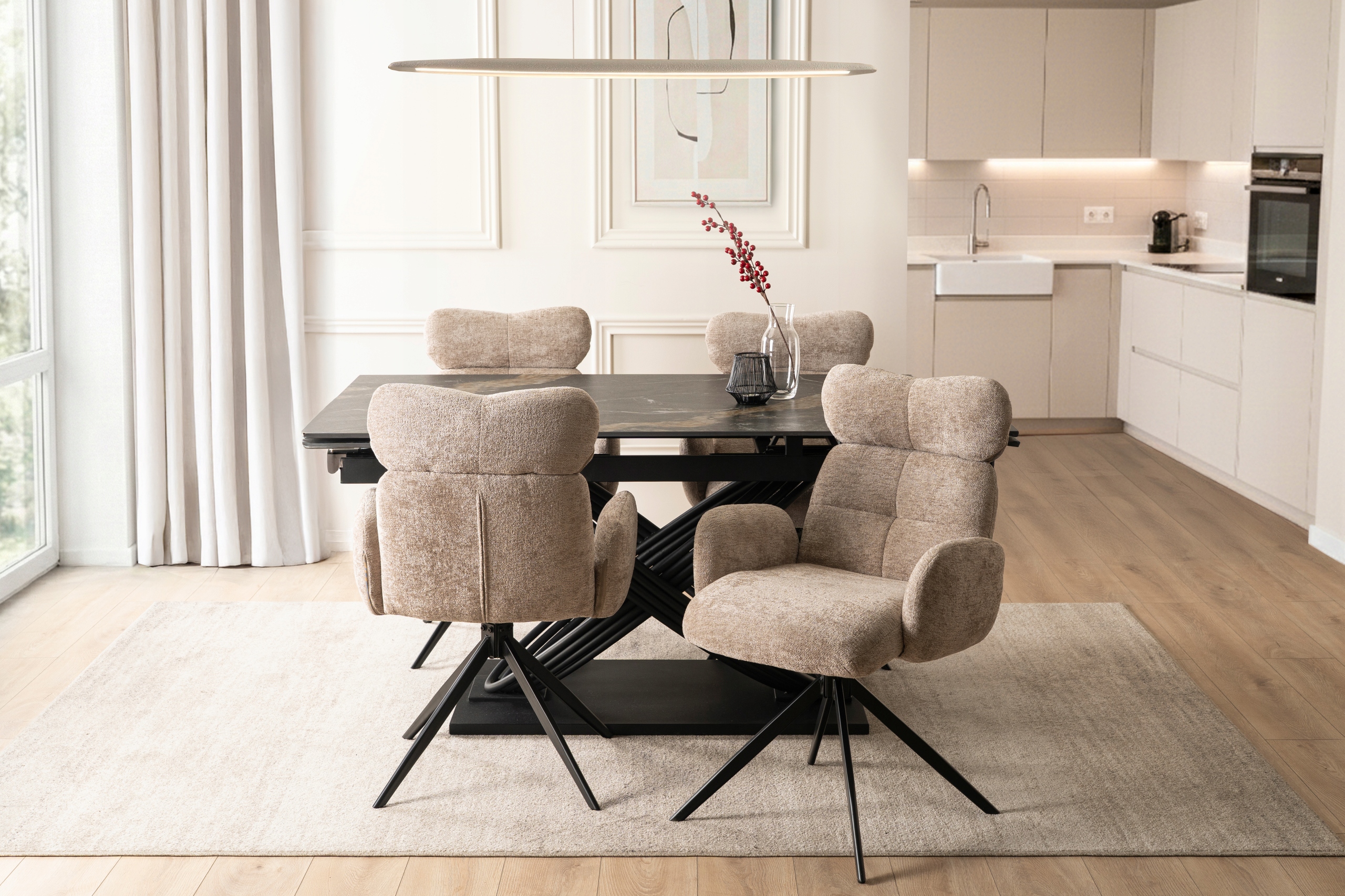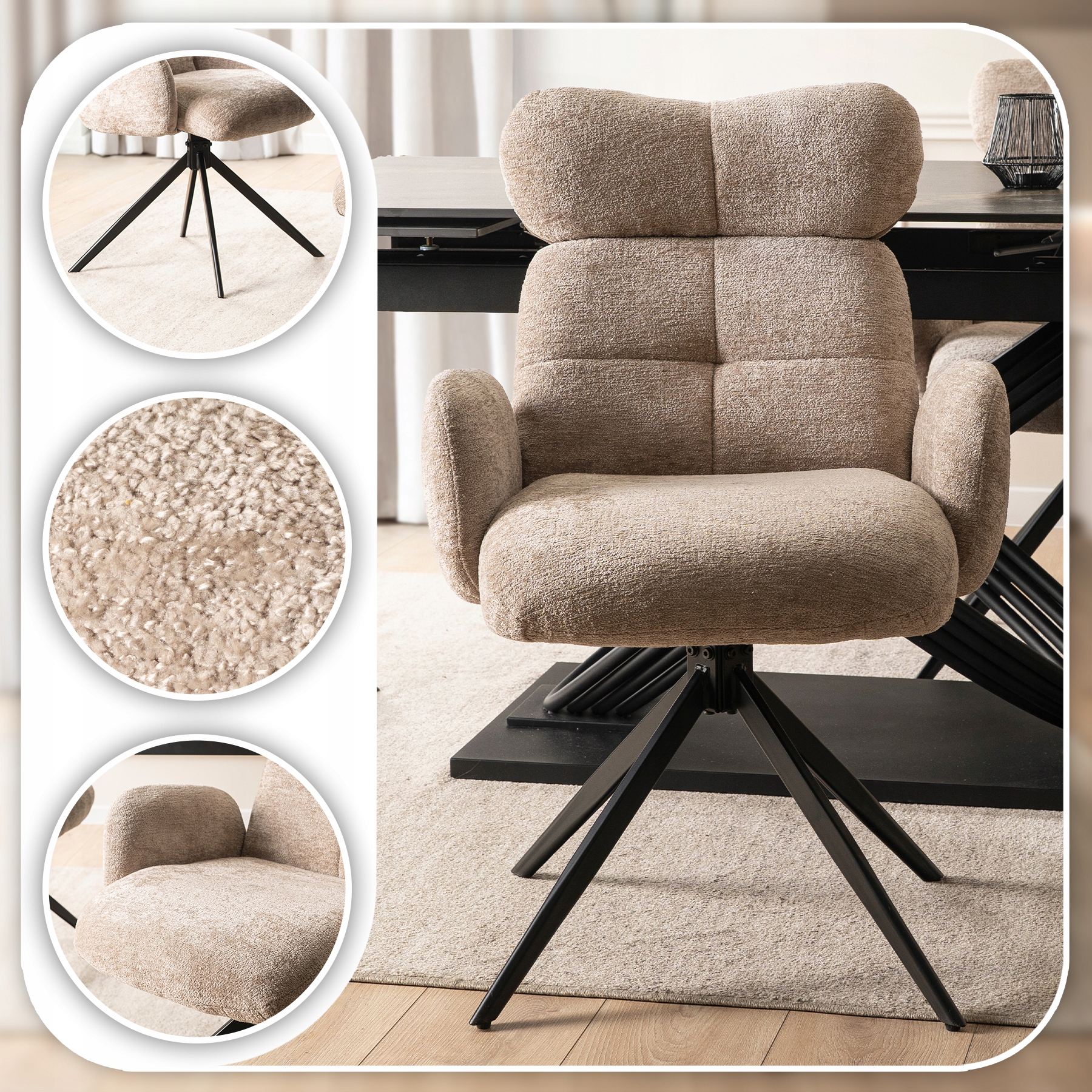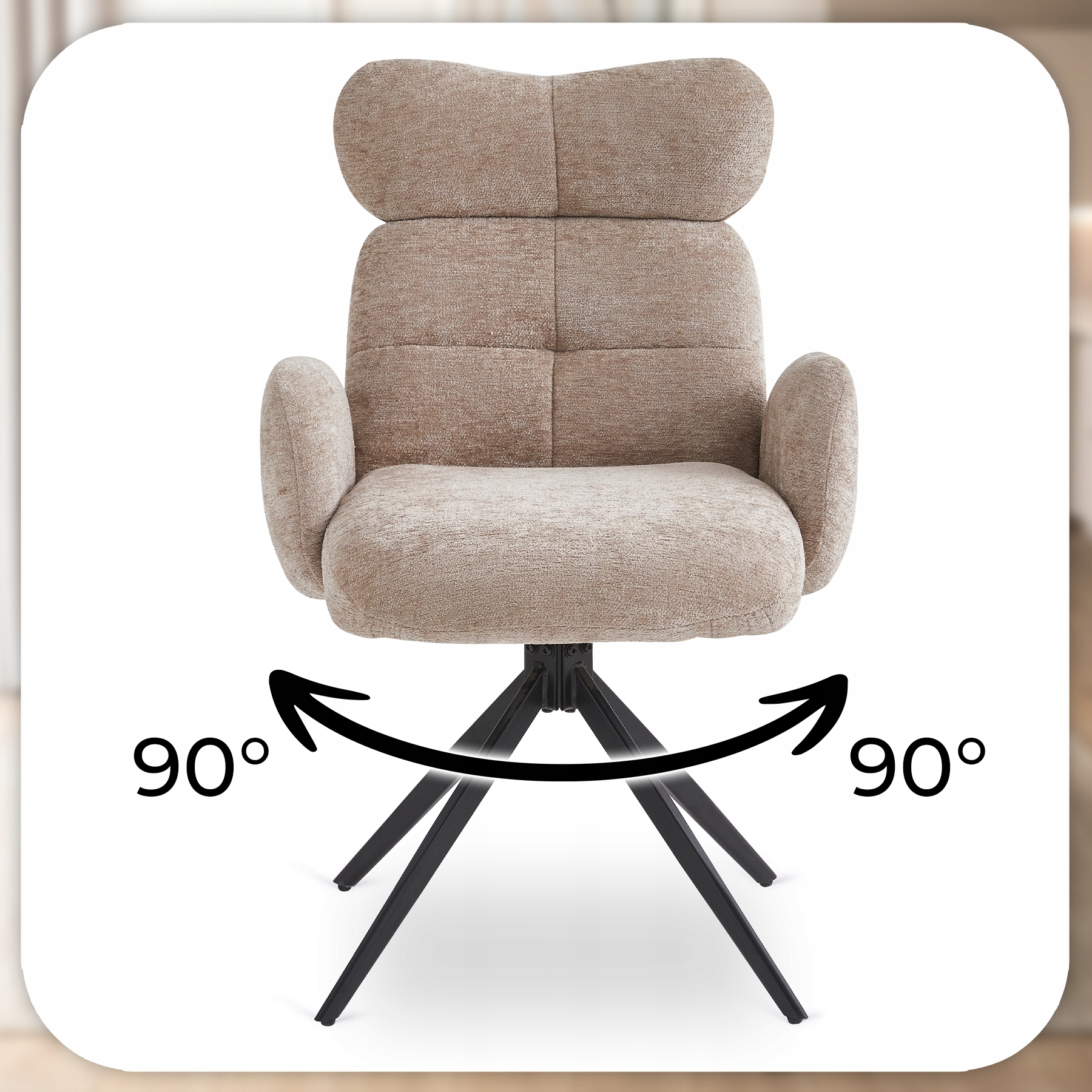 Krzesło ALVARO w kolorze beżowym to elegancka propozycja łącząca nowoczesny design i komfort. Grube siedzisko, wygodne oparcie oraz funkcja obrotu 90° zapewniają wygodę i praktyczność. Idealne do jadalni, kuchni, salonu oraz przestrzeni komercyjnych.