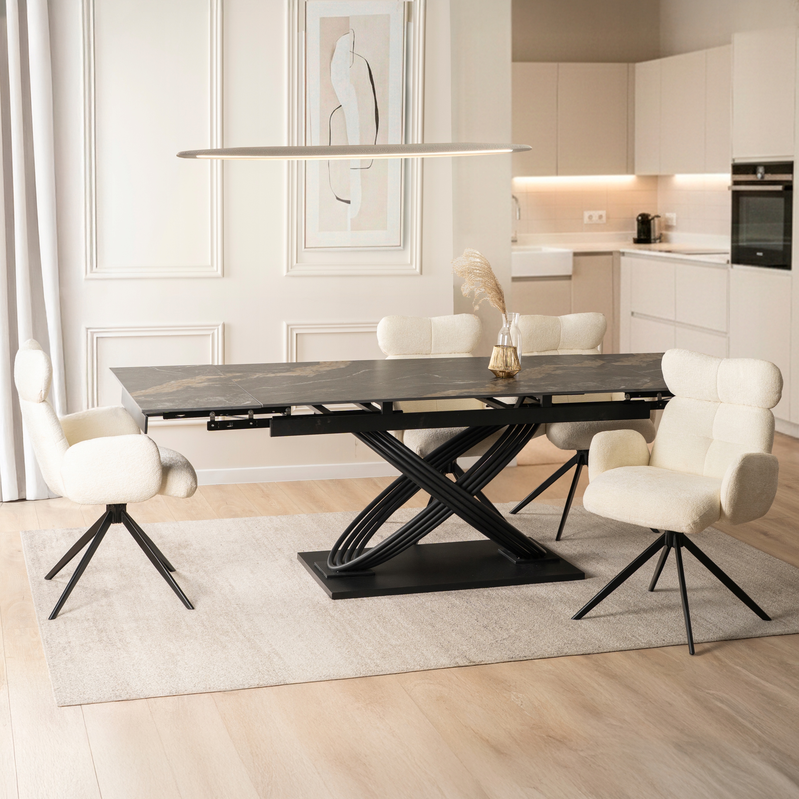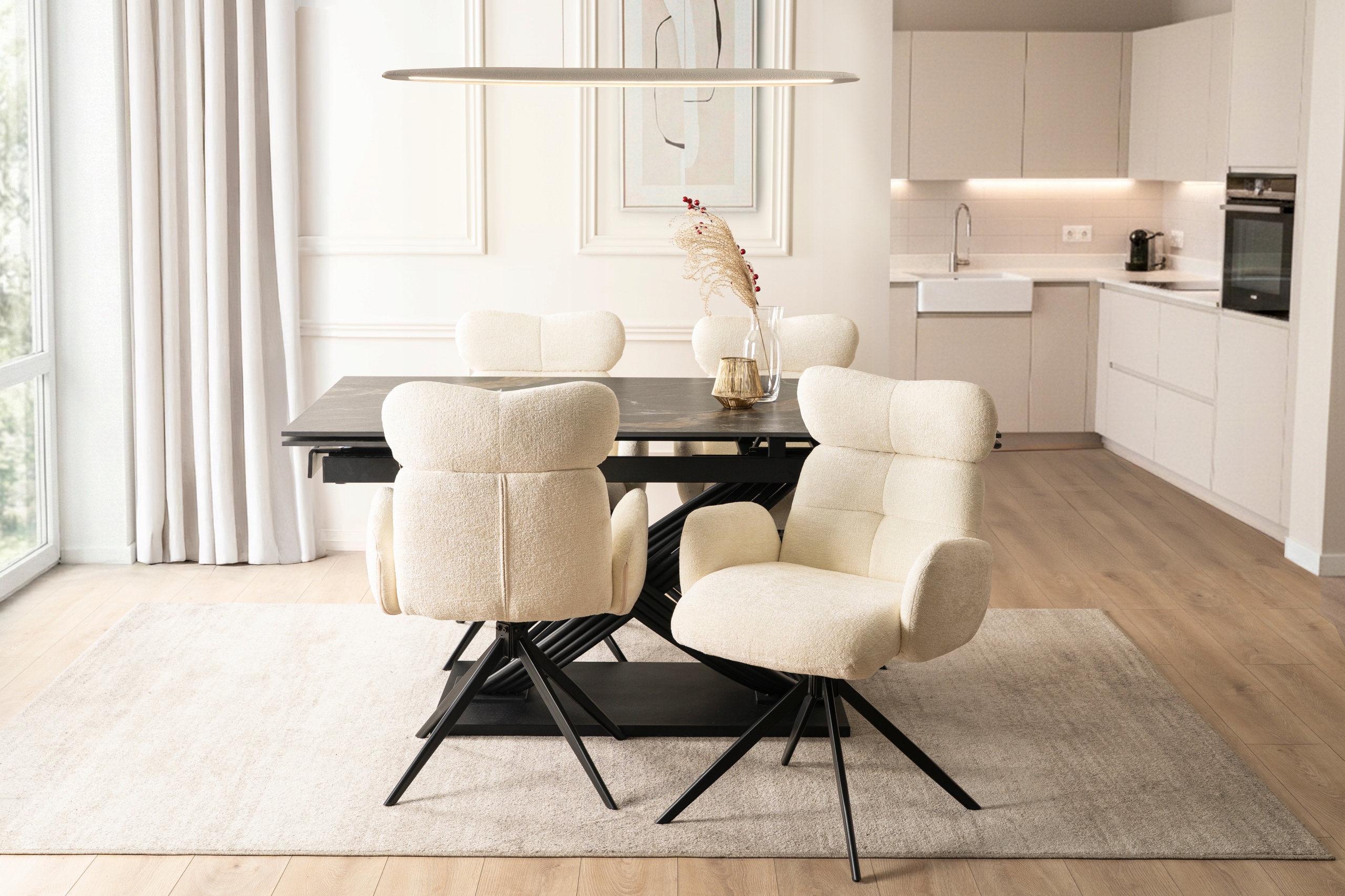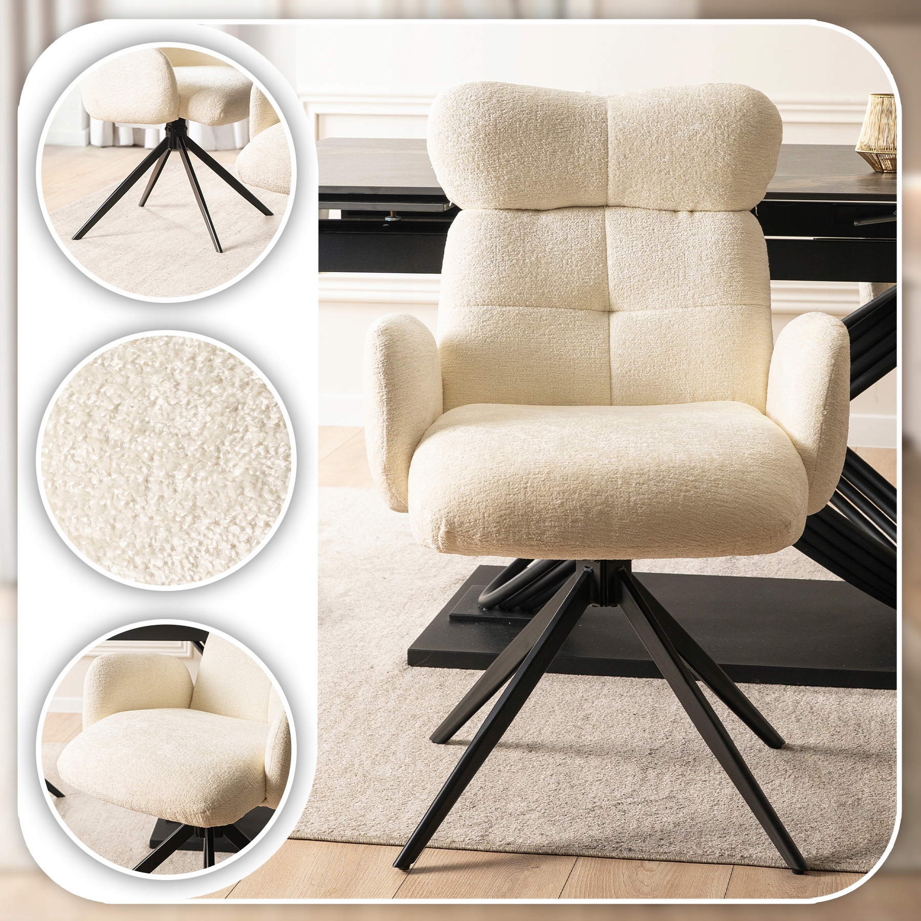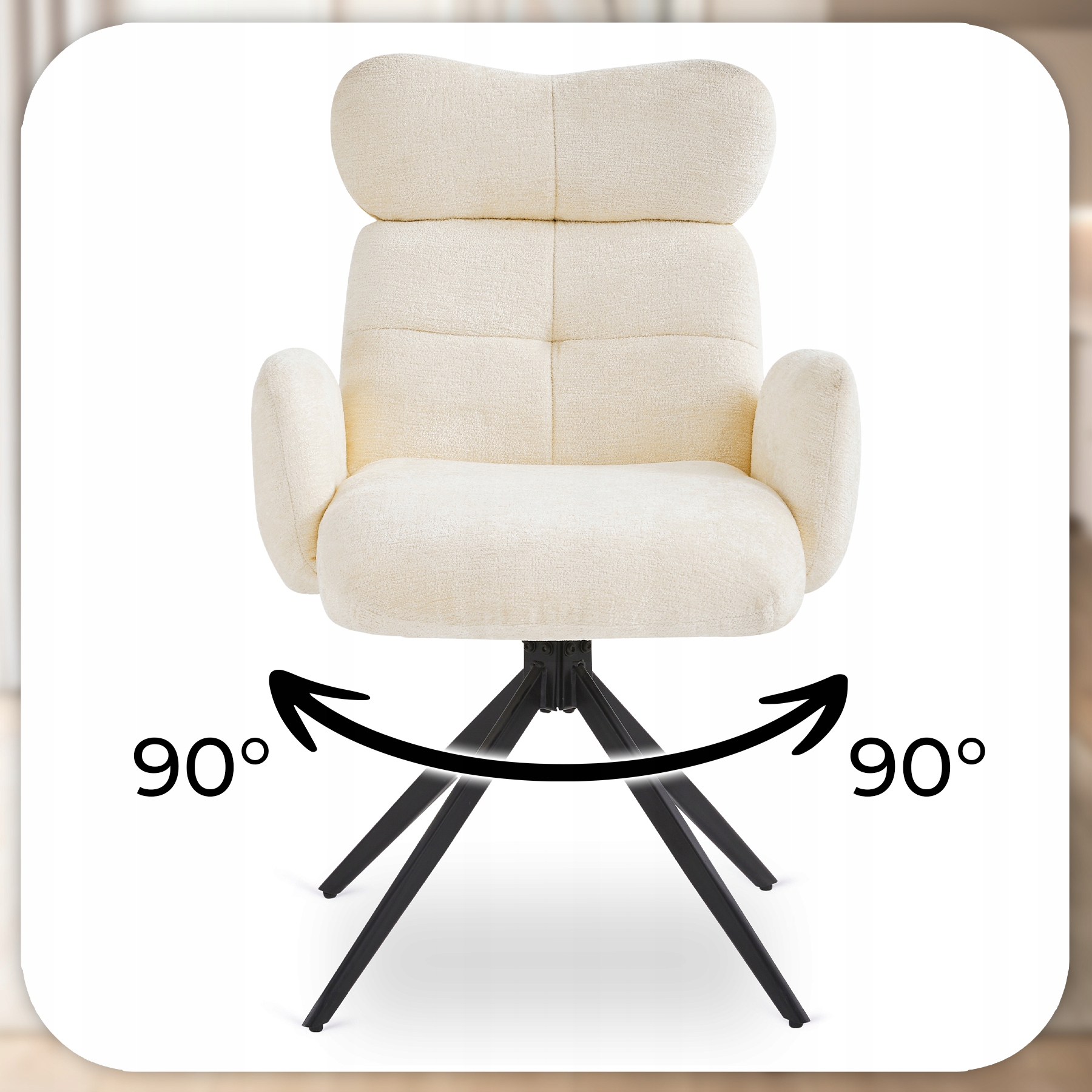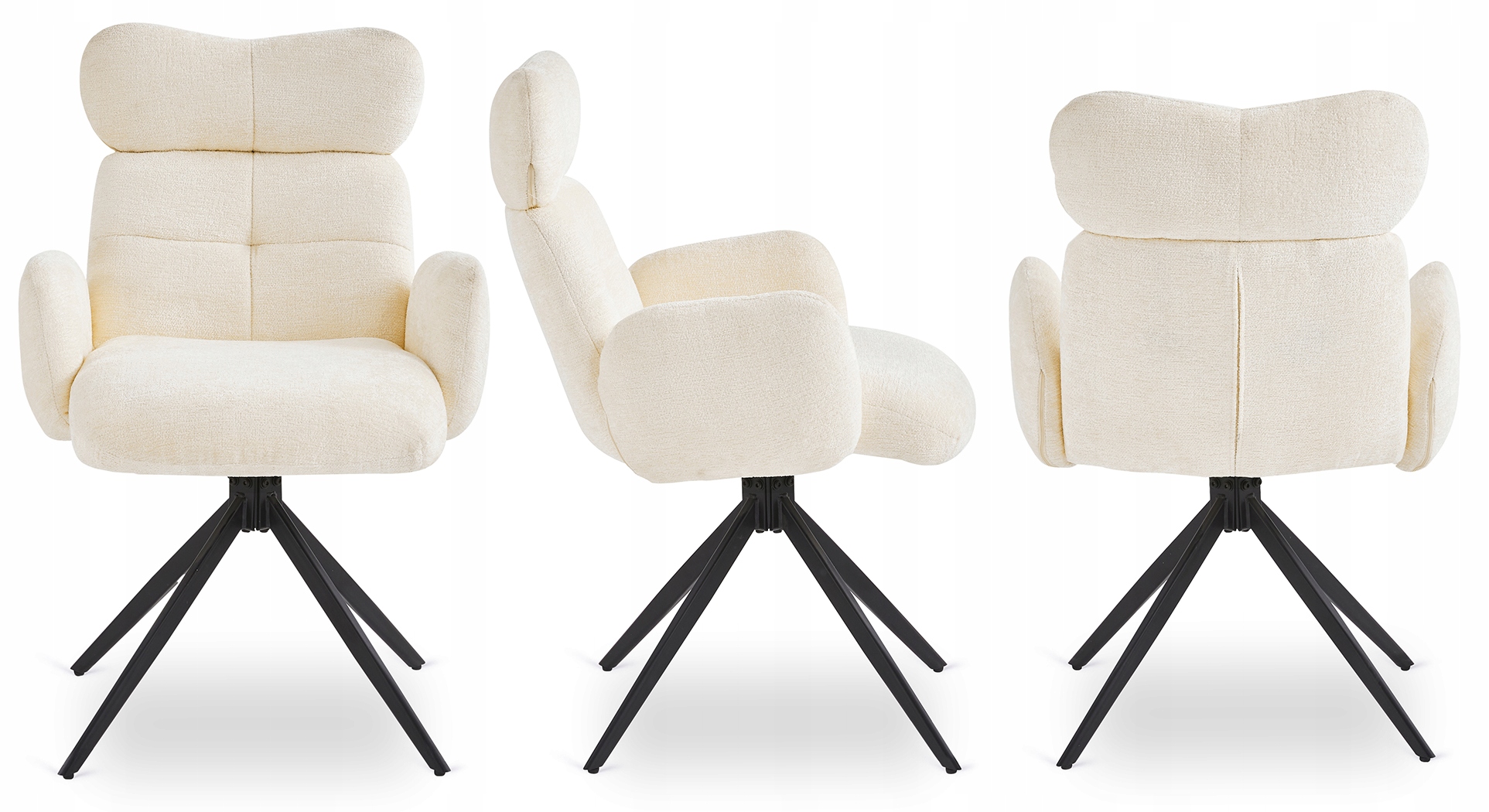 Krzesło ALVARO w kolorze kremowym to elegancka propozycja łącząca nowoczesny design i komfort. Grube siedzisko, wygodne oparcie oraz funkcja obrotu 90° zapewniają wygodę i praktyczność. Idealne do jadalni, kuchni, salonu oraz przestrzeni komercyjnych.