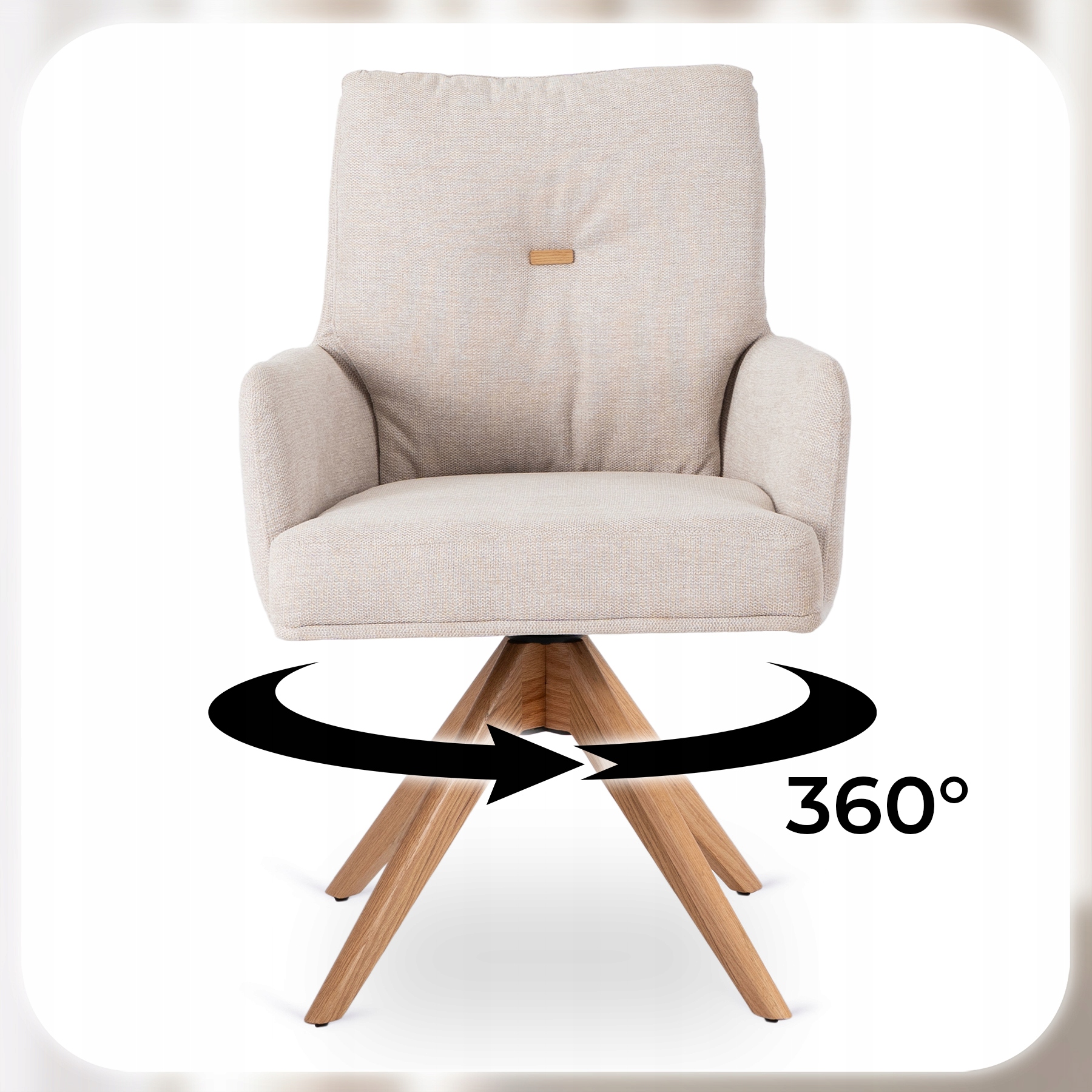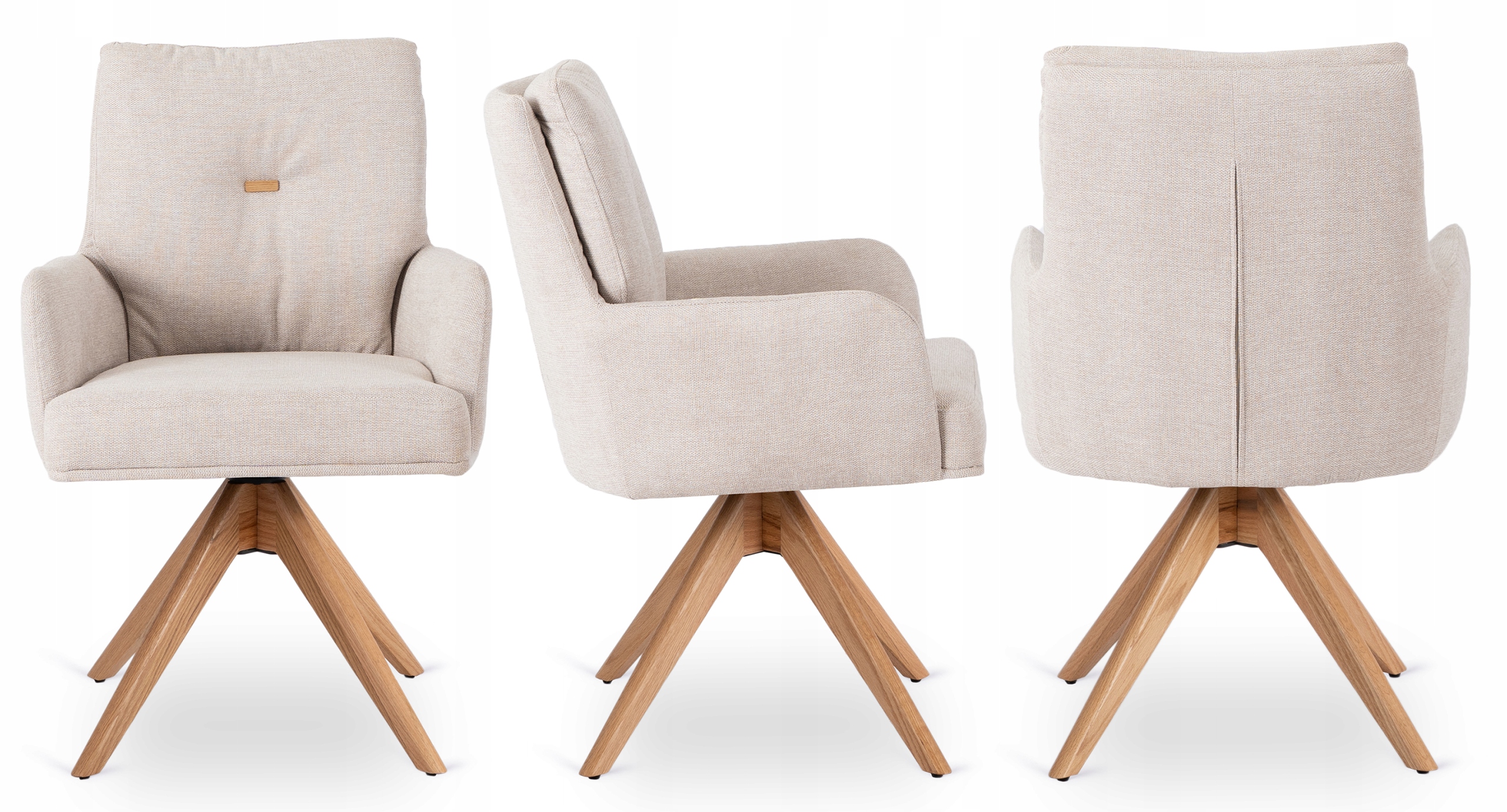 Krzesło BIANCO w kolorze beżowym to elegancka propozycja łącząca nowoczesny design i komfort. Miękkie siedzisko ze sprężyną, wyprofilowane oparcie oraz funkcja obrotu 360° z automatycznym powrotem do pozycji bazowej zapewniają wygodę i praktyczność. Idealne do jadalni, kuchni, salonu oraz przestrzeni komercyjnych.