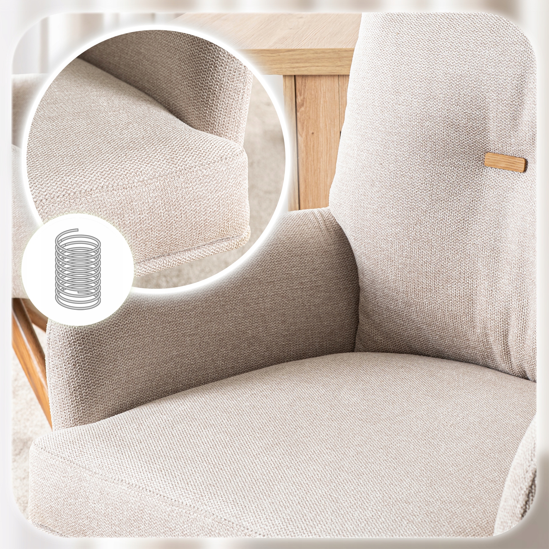 Siedzisko ma aż 11 cm grubości i wypełnione jest sprężynami oraz miękką pianką tapicerską, dzięki czemu jest komfortowe, sprężyste i odporne na odkształcenia.