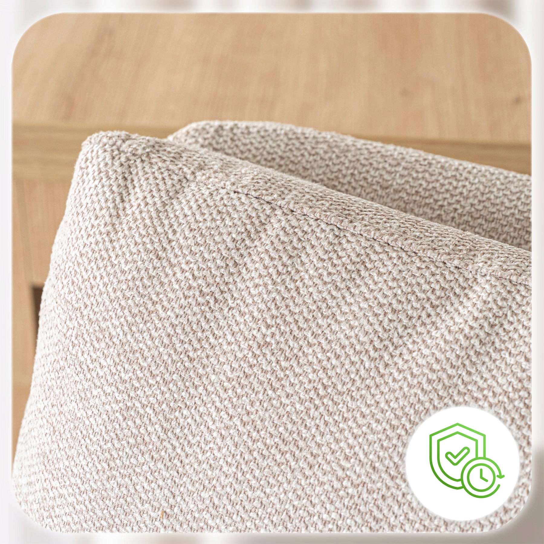 - Wysokiej jakości tkanina tapicerska – przyjemna w dotyku, trwała i łatwa w utrzymaniu czystości.