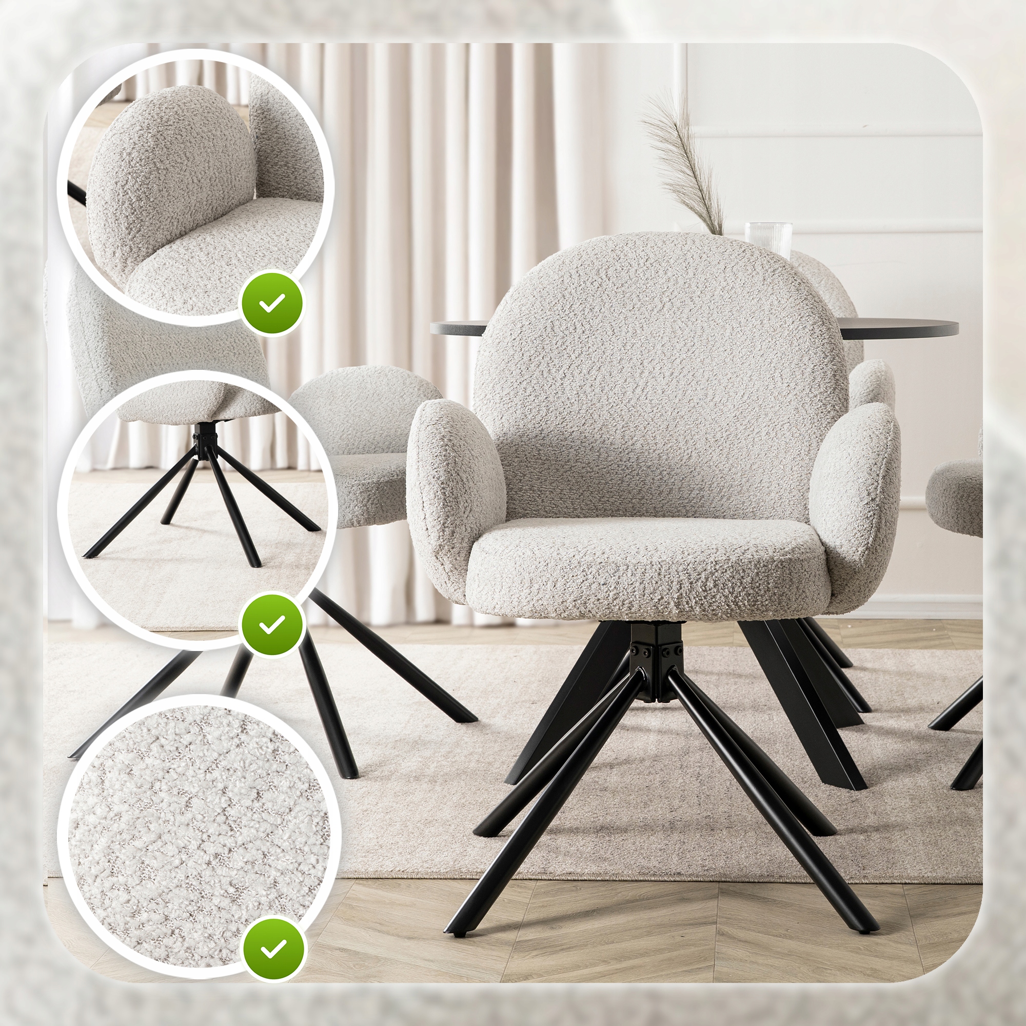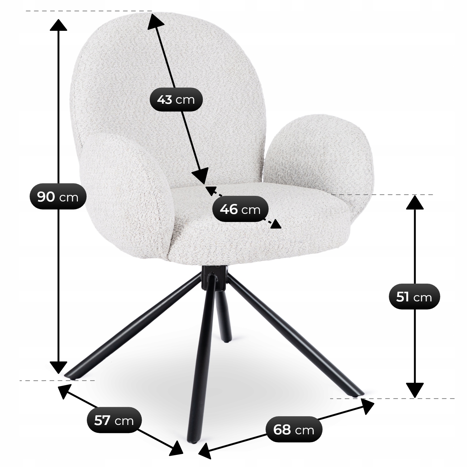 - Wytrzymała i odporna na ścieranie – tkanina teddy jest doskonała do codziennego użytku, nawet przy intensywnym użytkowaniu krzesła przez domowników, dzieci czy gości.