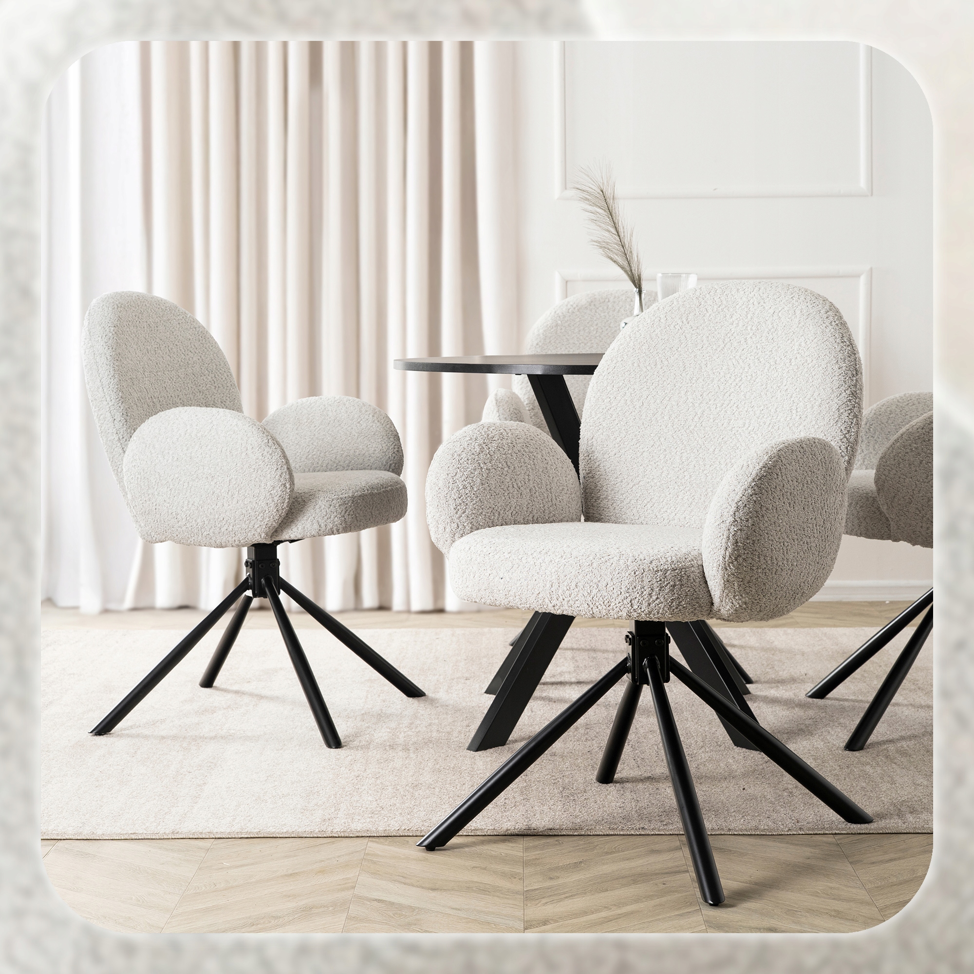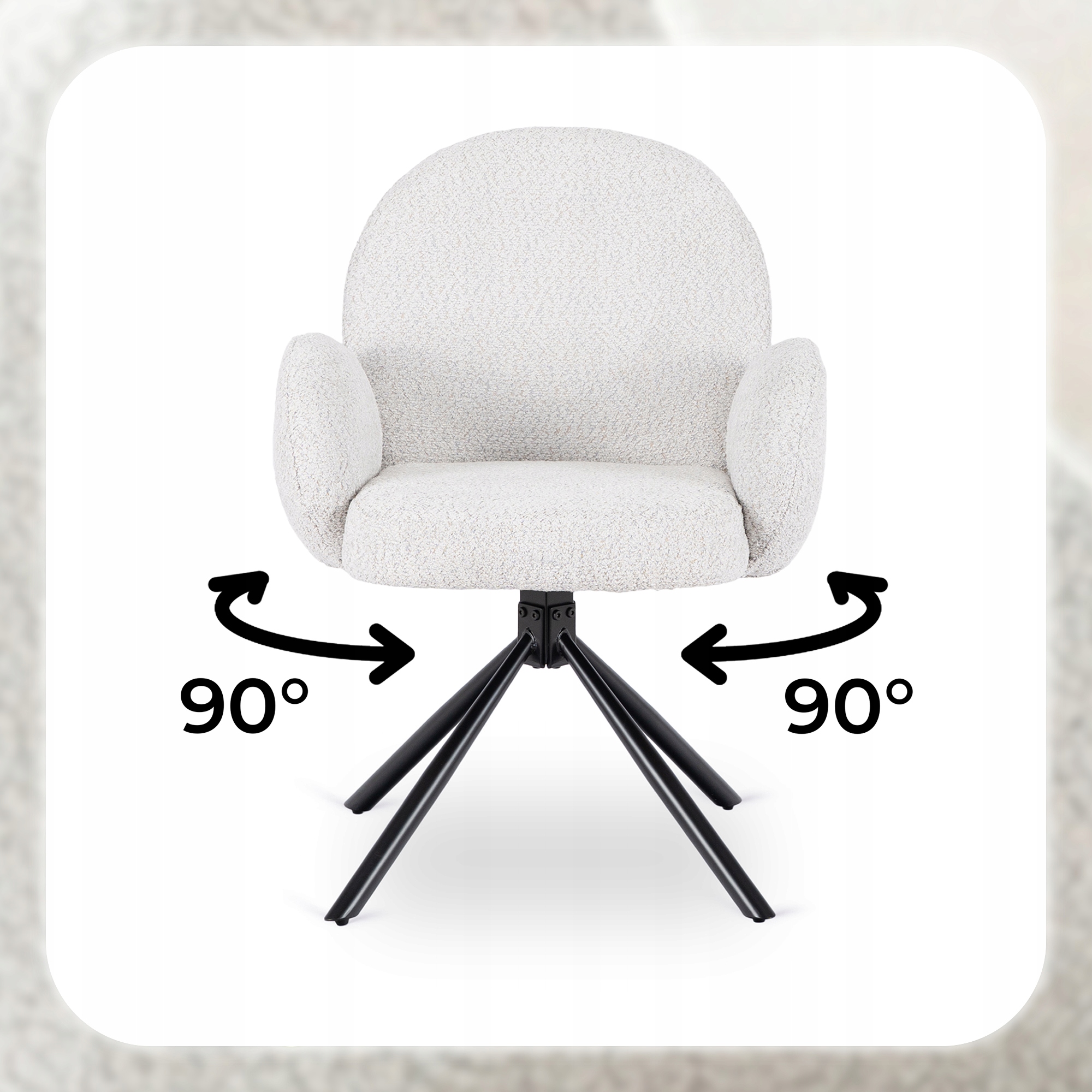 Krzesło MUSSO w kolorze szarym to elegancka propozycja łącząca nowoczesny design i komfort. Miękkie siedzisko, okrągłe oparcie, z okrągłymi podłokietnikami oraz funkcja obrotu 90° zapewniają wygodę i praktyczność. Idealne do jadalni, kuchni, salonu oraz przestrzeni komercyjnych.