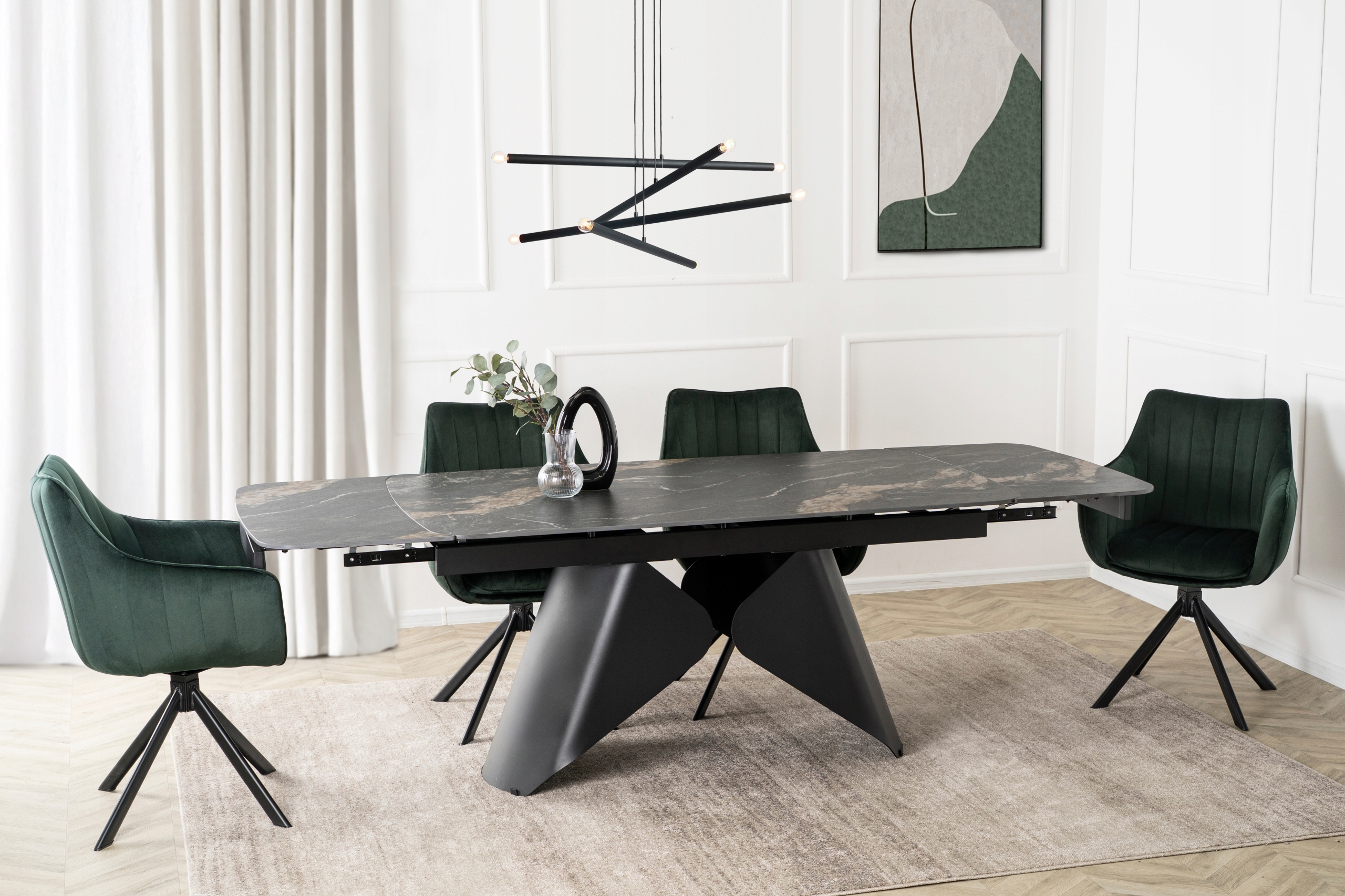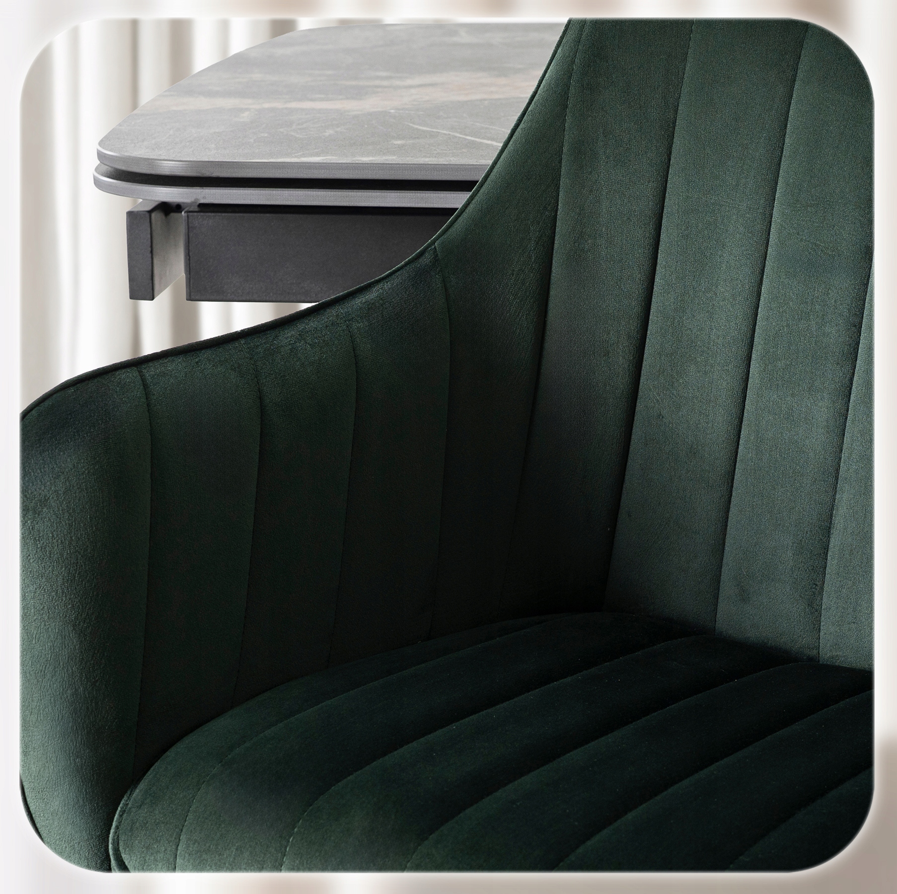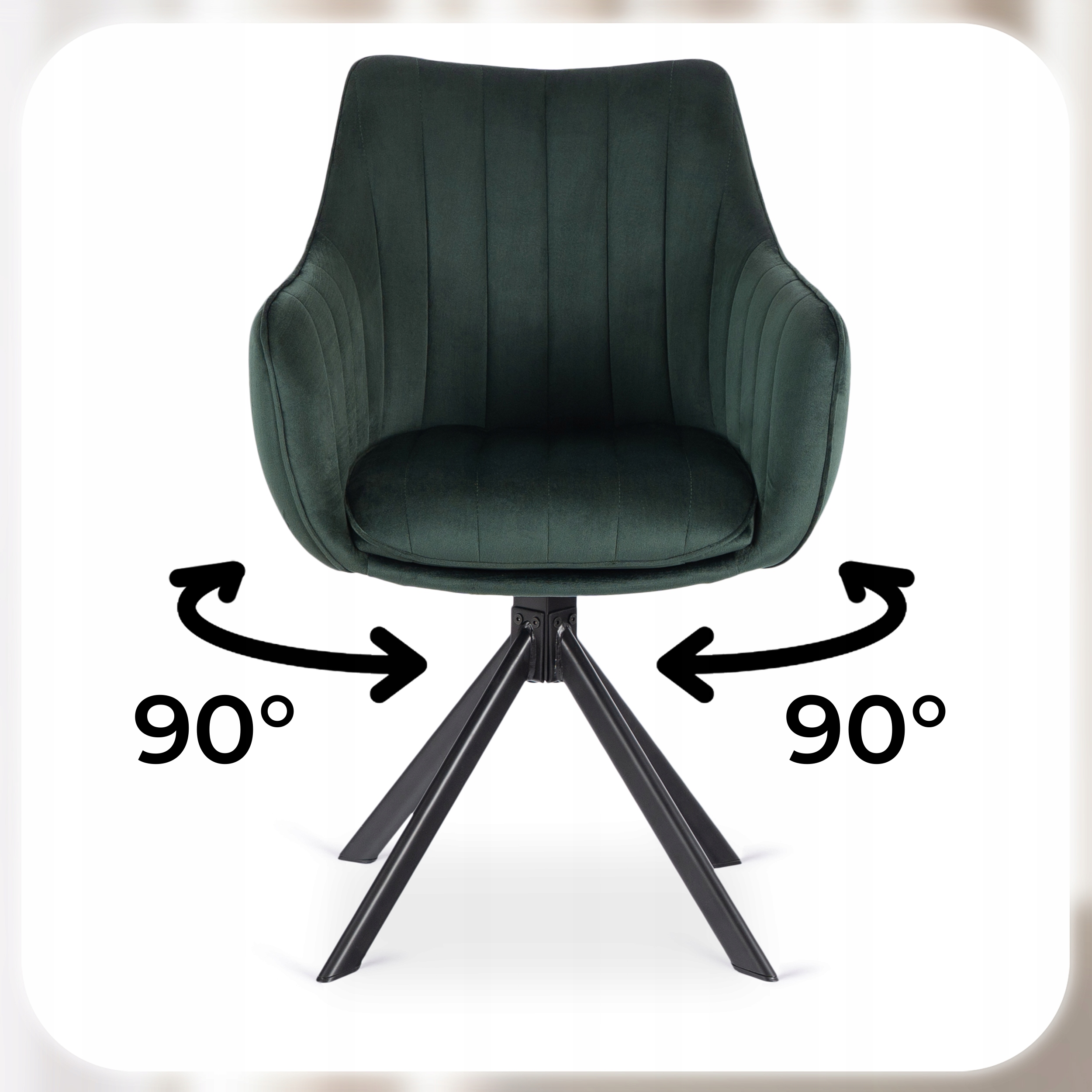 Krzesło MUMBAI w kolorze zielonym to elegancka propozycja łącząca nowoczesny design i komfort. Miękkie siedzisko, wyprofilowane oparcie z przeszyciami oraz funkcja obrotu 90° zapewniają wygodę i praktyczność. Idealne do jadalni, kuchni, salonu oraz przestrzeni komercyjnych.