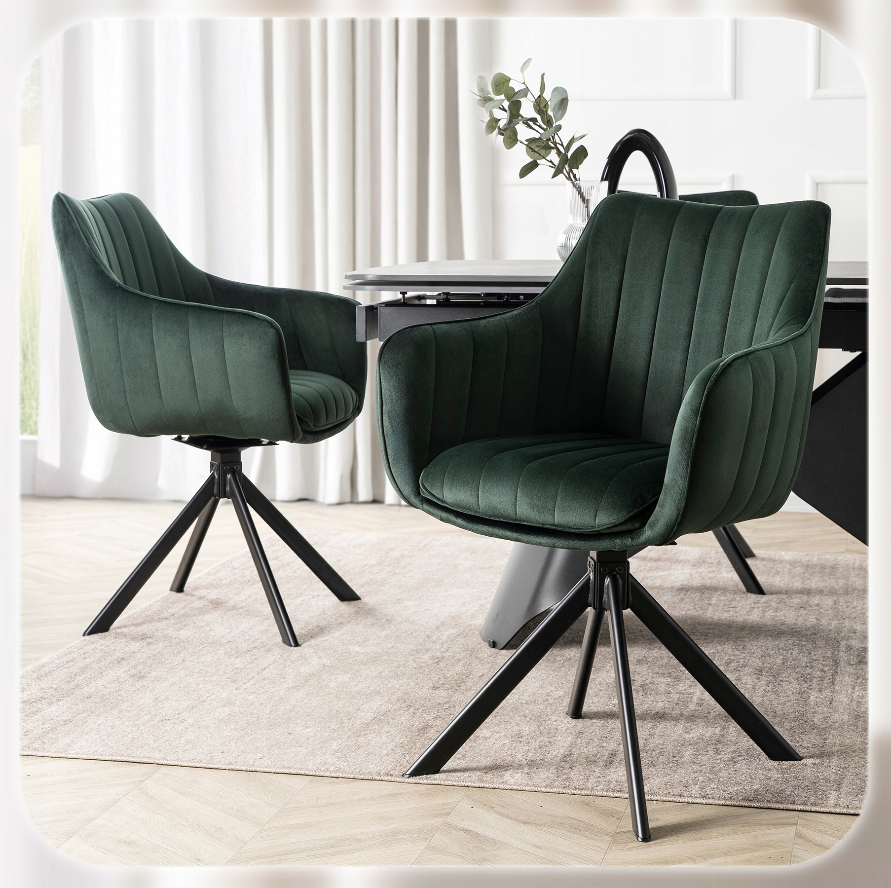 ✨ Krzesło Obrotowe Kubełkowe Tapicerowane Do Jadalni Salonu Zielony MUMBAI