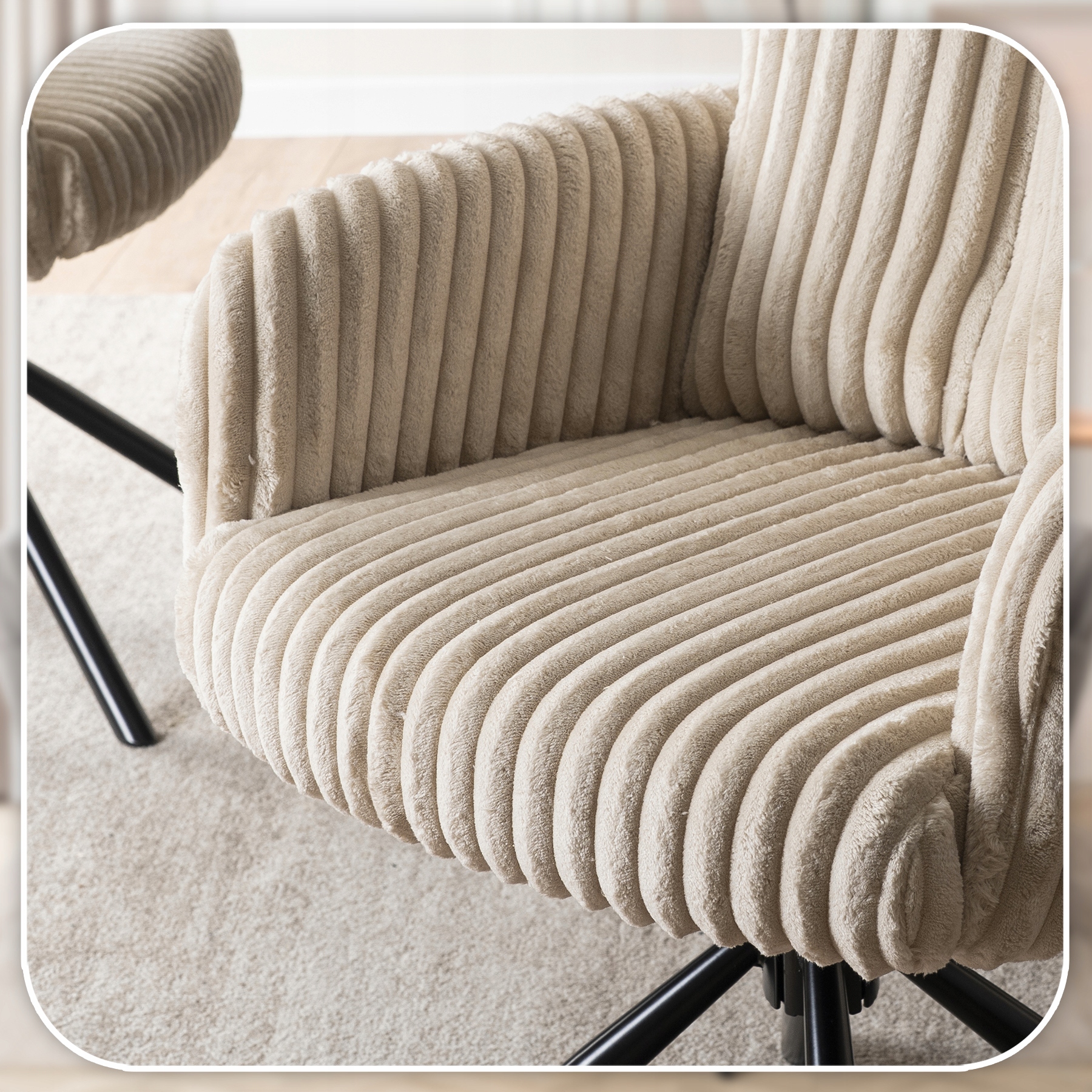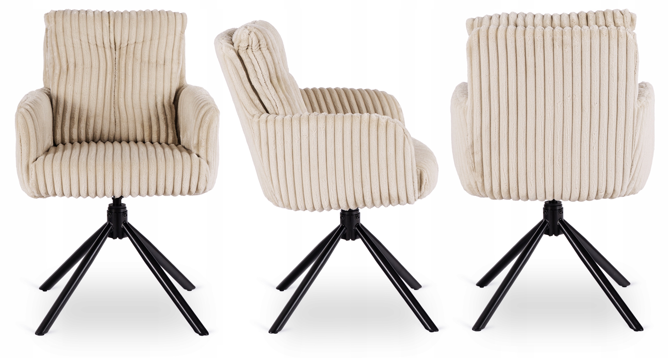 Krzesło Obrotowe Kubełkowe Tapicerowane Do Jadalni Sztruks Beżowy JUNE