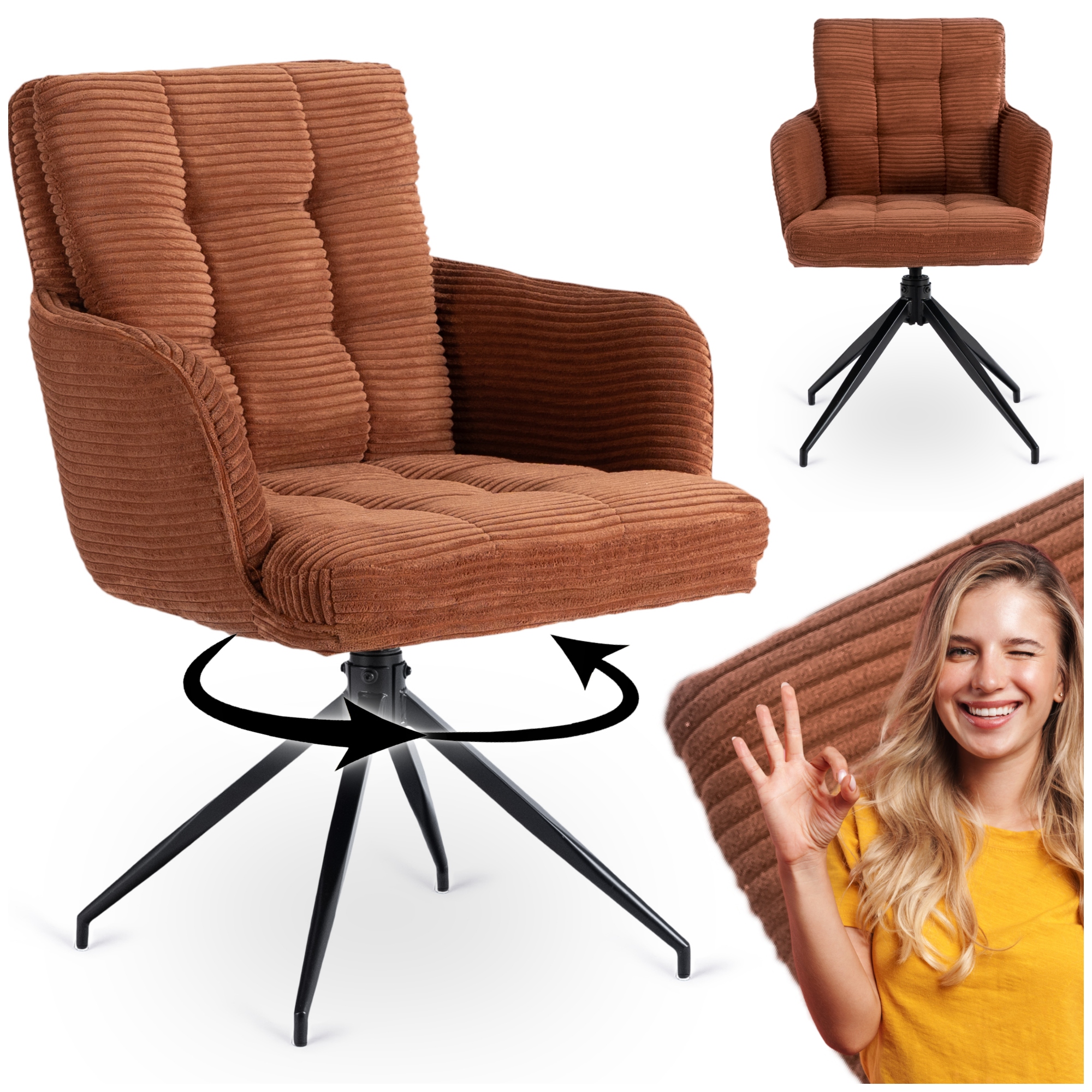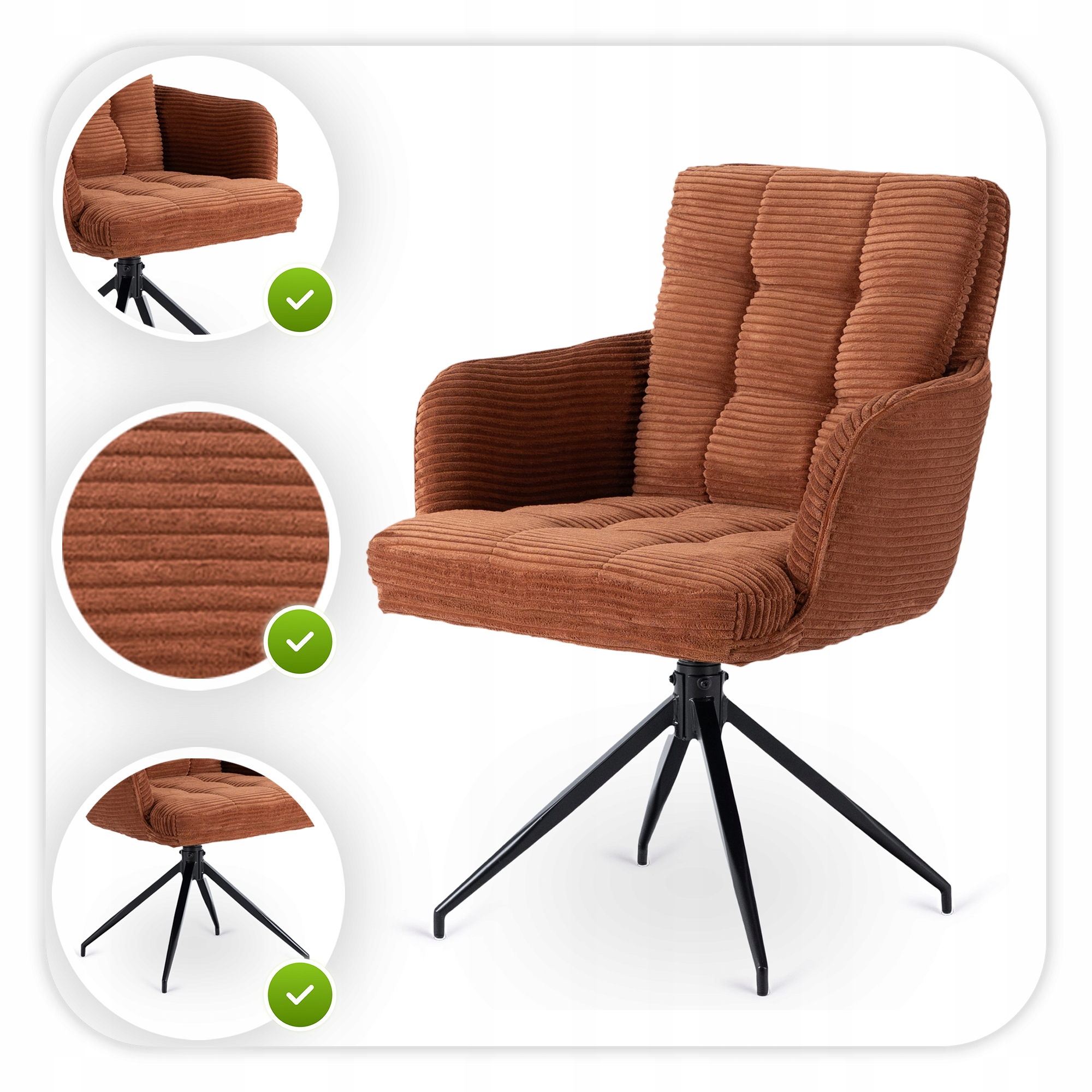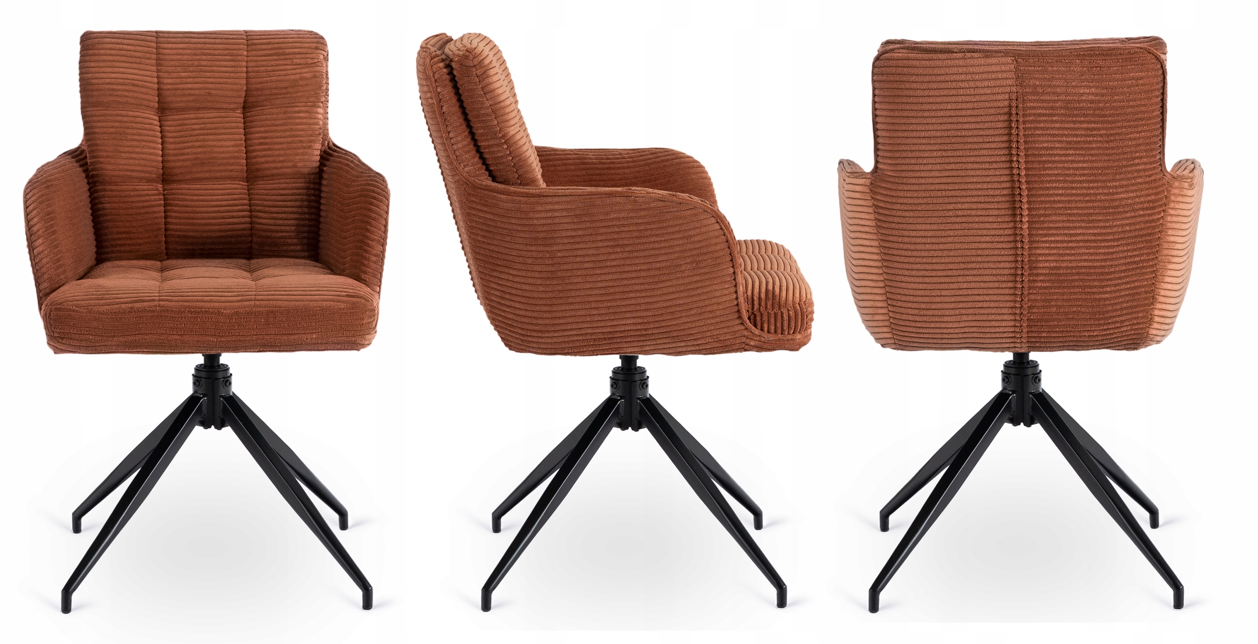 ✨ Krzesło Obrotowe Kubełkowe Tapicerowane Do Jadalni Sztruks Rudy AKITA