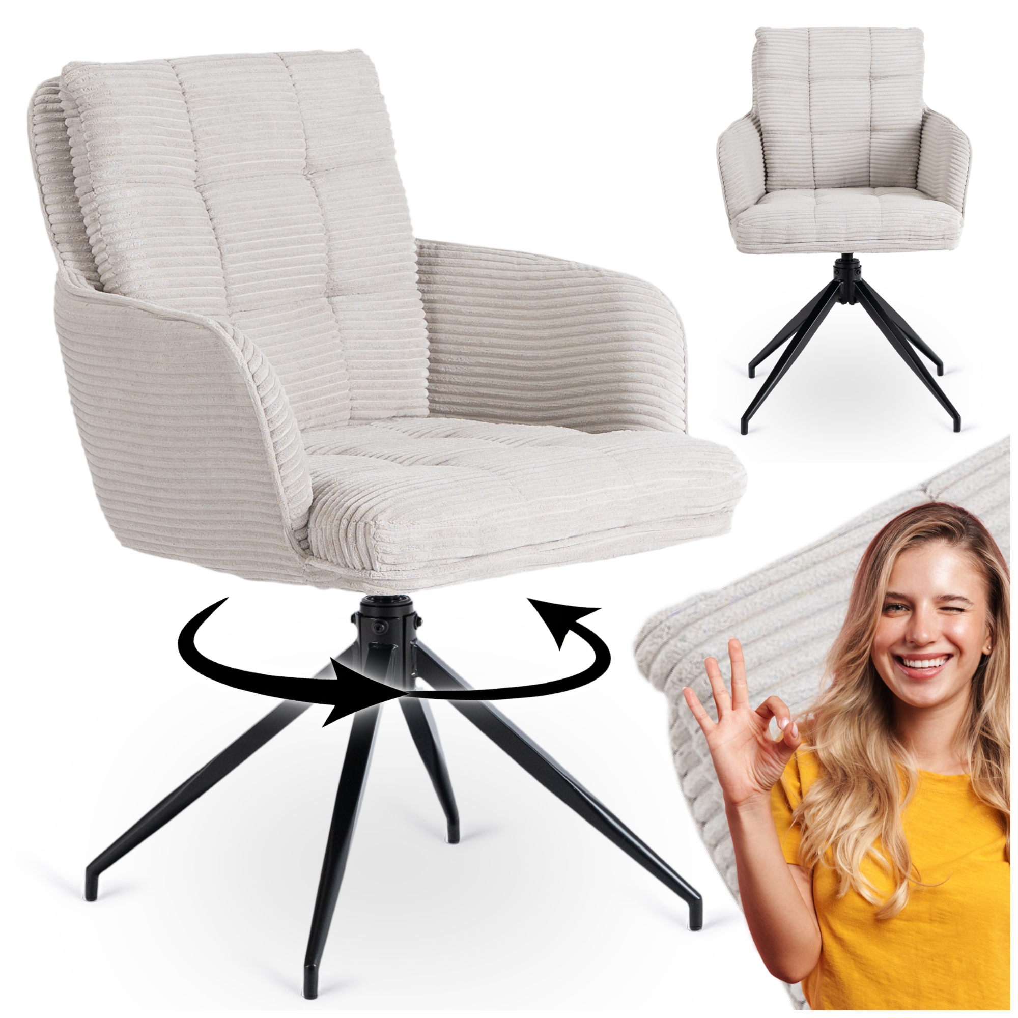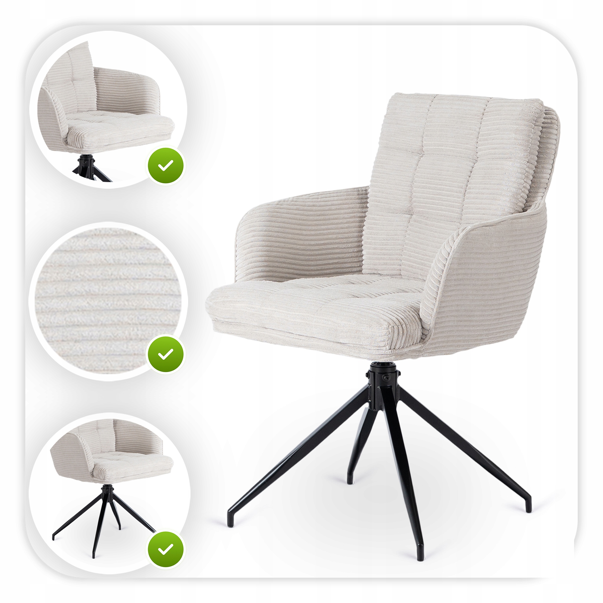 ✨ Krzesło Obrotowe Kubełkowe Tapicerowane Do Jadalni Sztruks Szary AKITA