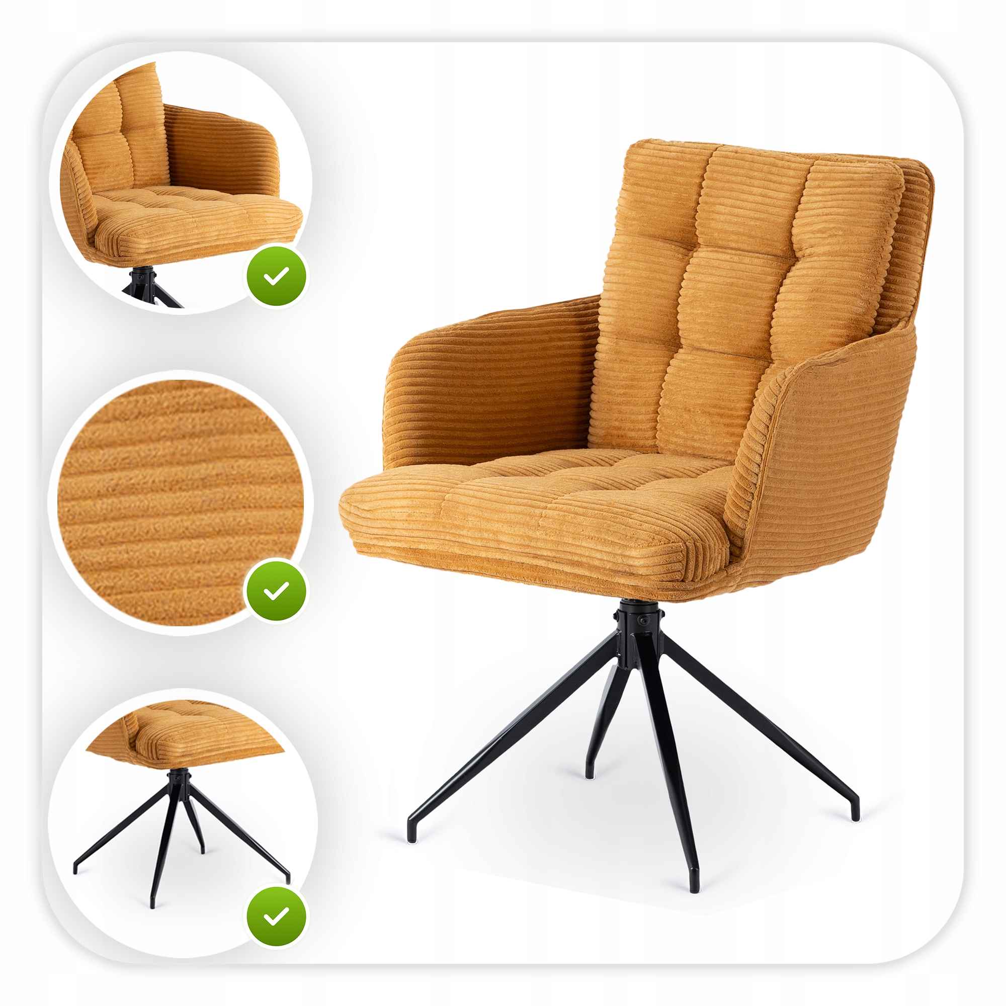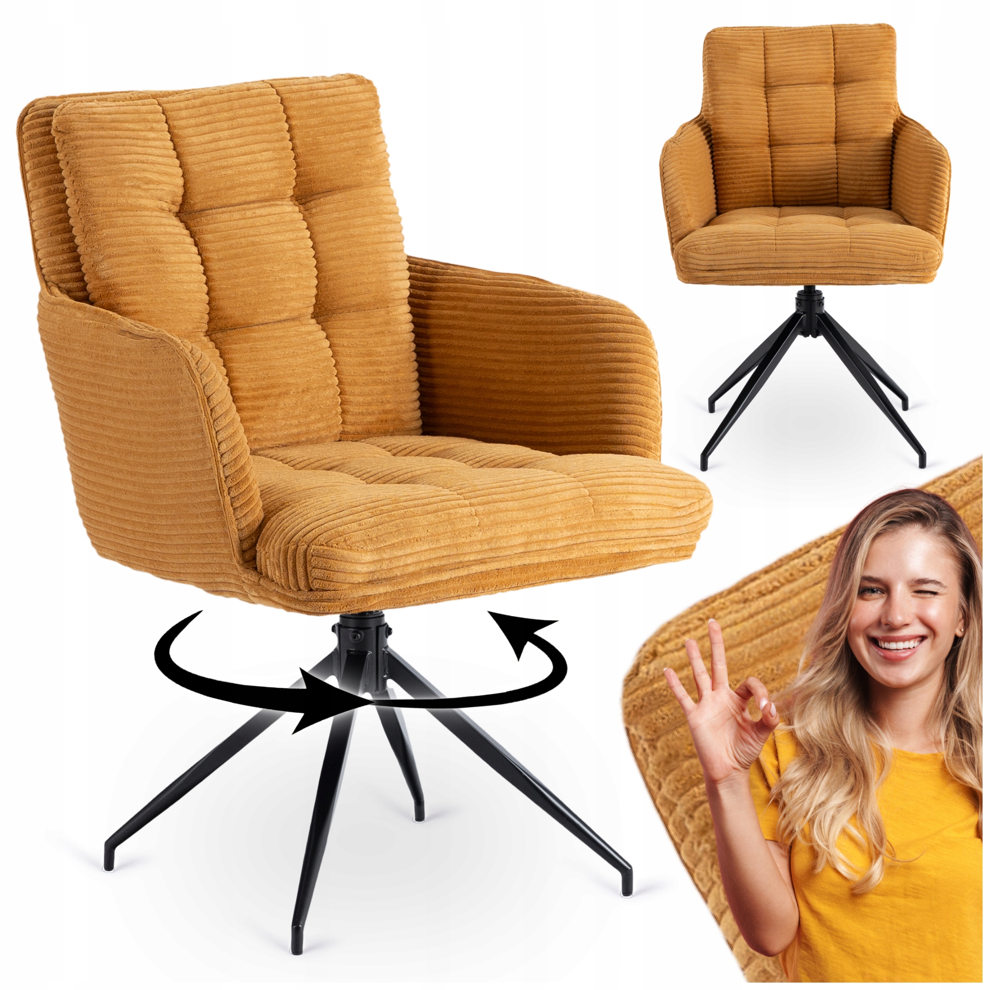 ✨ Krzesło Obrotowe Kubełkowe Tapicerowane Do Salonu Sztruks Musztardowy AKITA