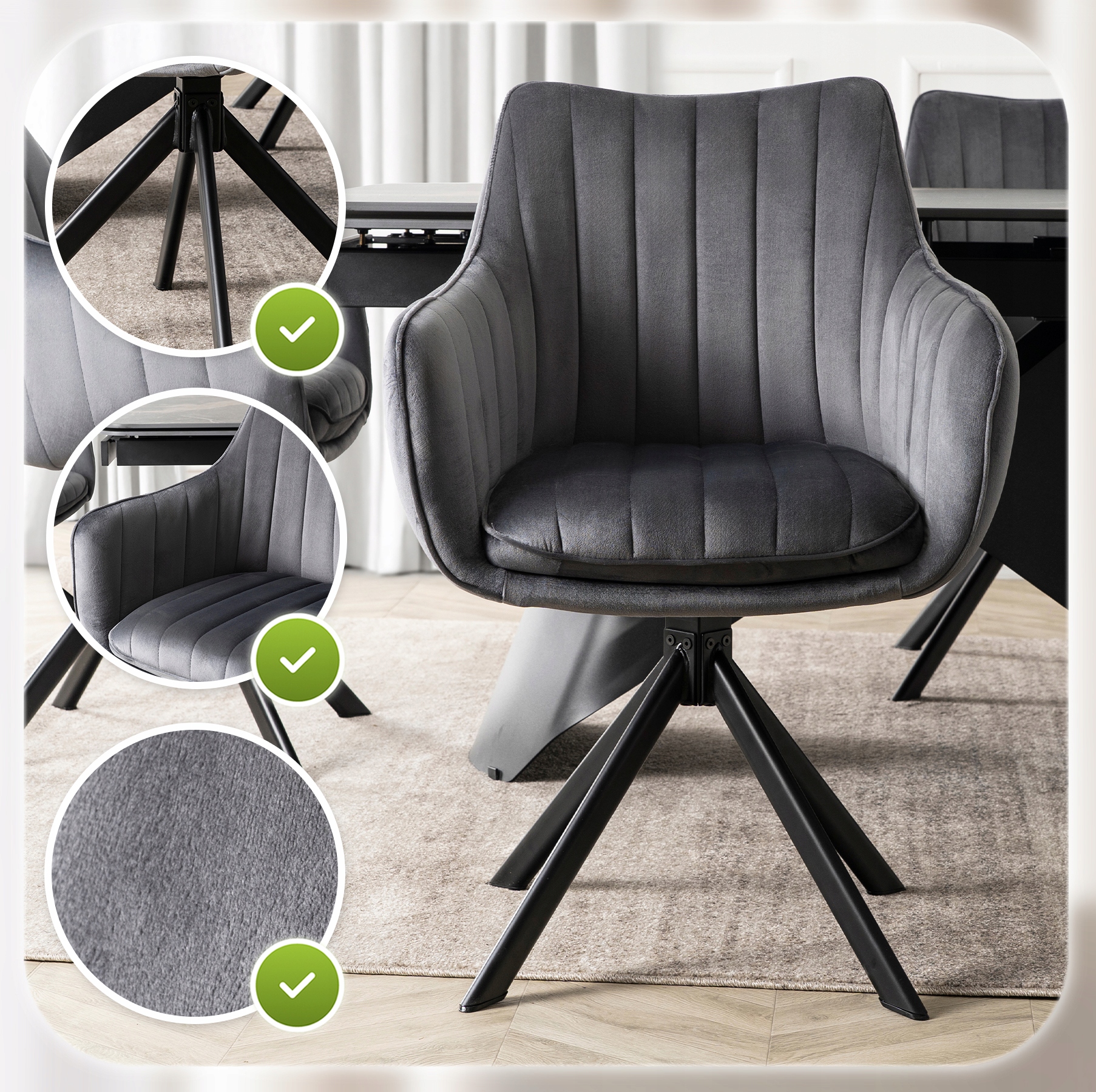 ✨ Krzesło Obrotowe Kubełkowe Tapicerowane Do Jadalni Salonu Szary MUMBAI