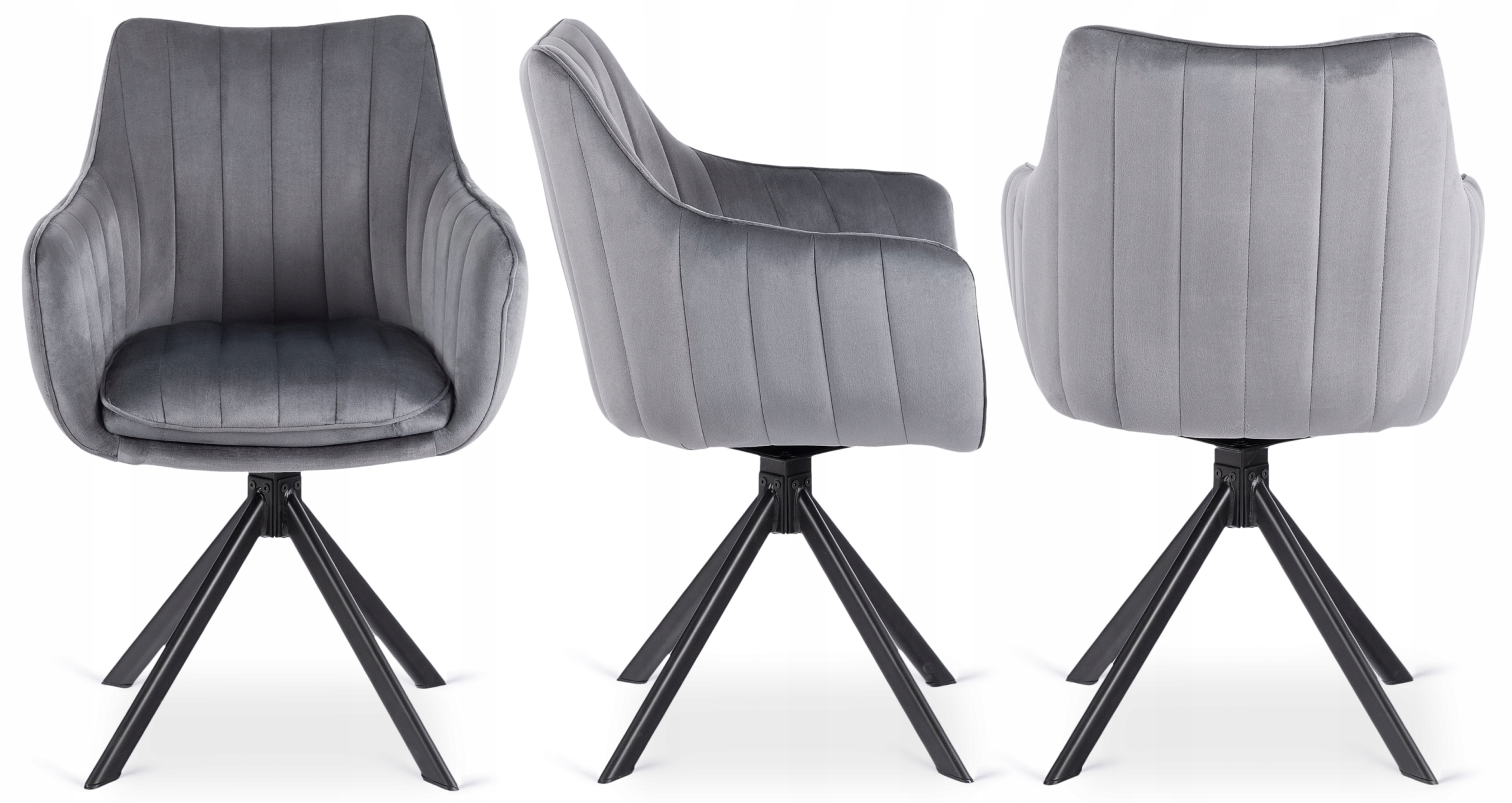 Krzesło MUMBAI w kolorze szarym to elegancka propozycja łącząca nowoczesny design i komfort. Miękkie siedzisko, wyprofilowane oparcie z przeszyciami oraz funkcja obrotu 90° zapewniają wygodę i praktyczność. Idealne do jadalni, kuchni, salonu oraz przestrzeni komercyjnych.