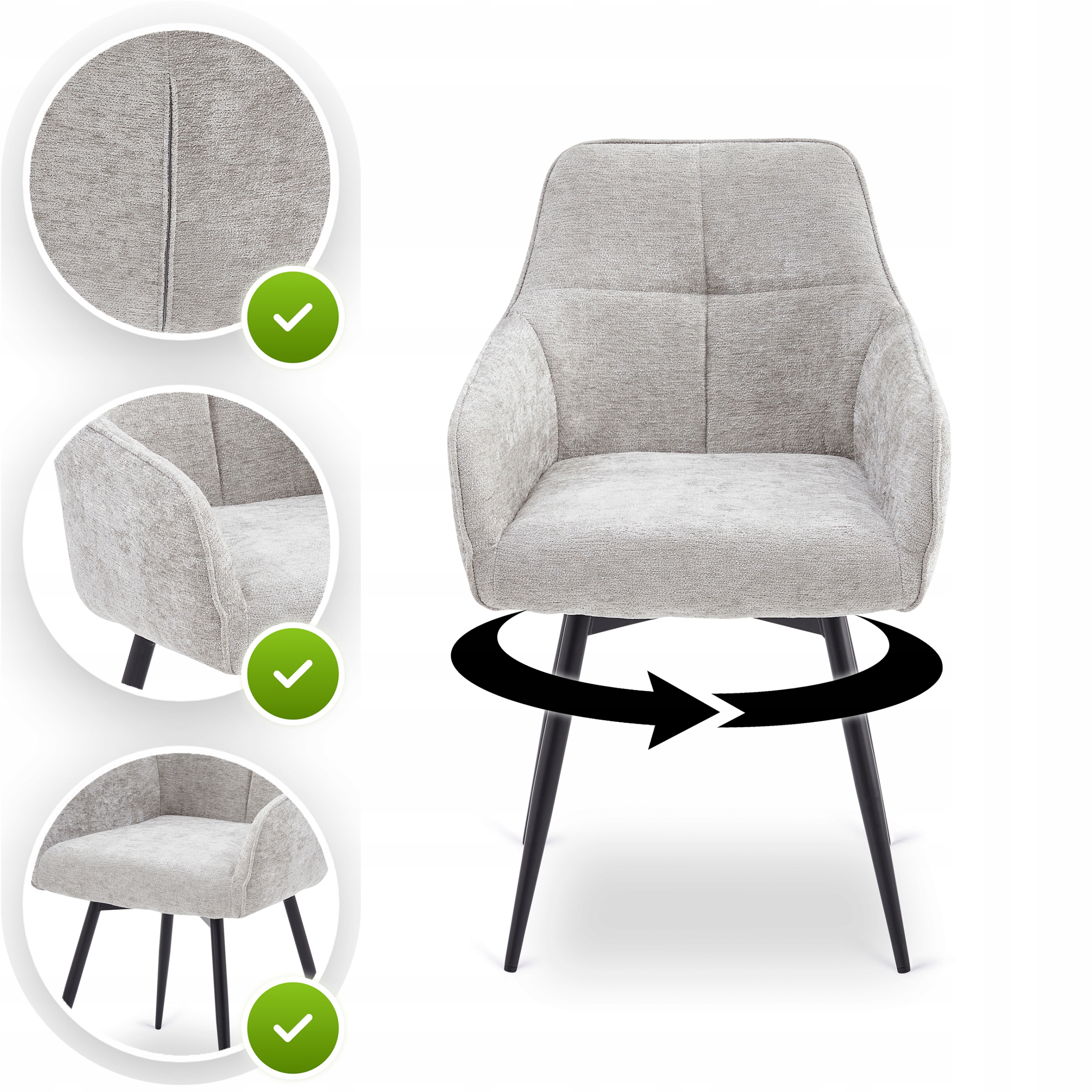 Krzesło Obrotowe Tapicerowane Kuchenne Do Jadalni Salonu Szary LARISA
