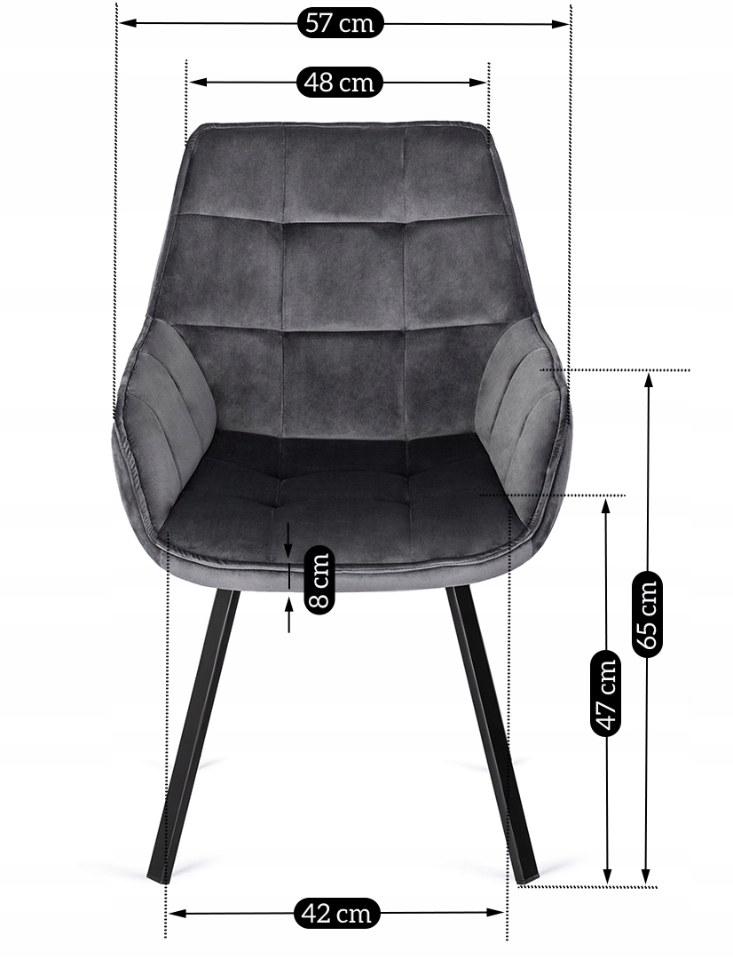 - Głębokość krzesła: 57 cm