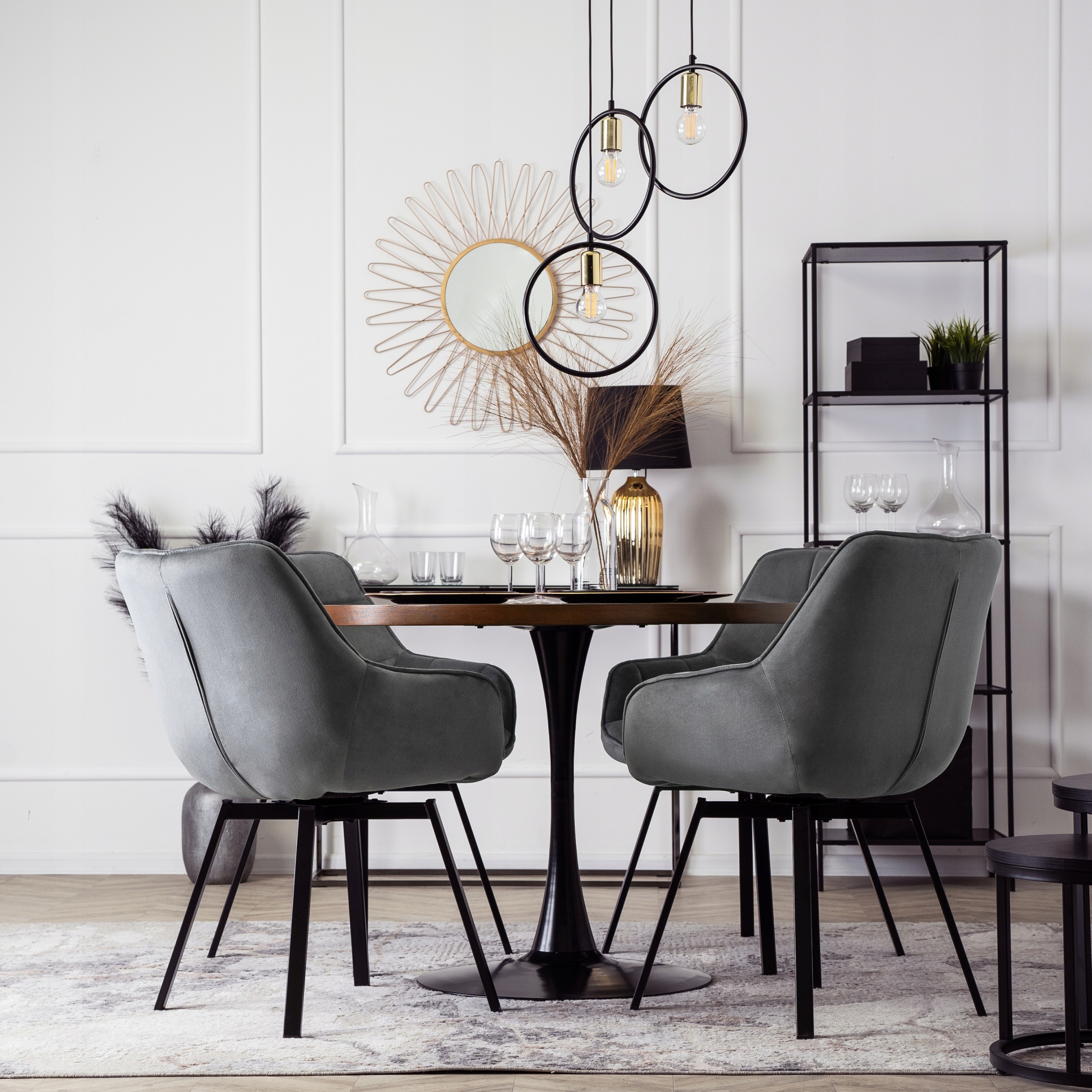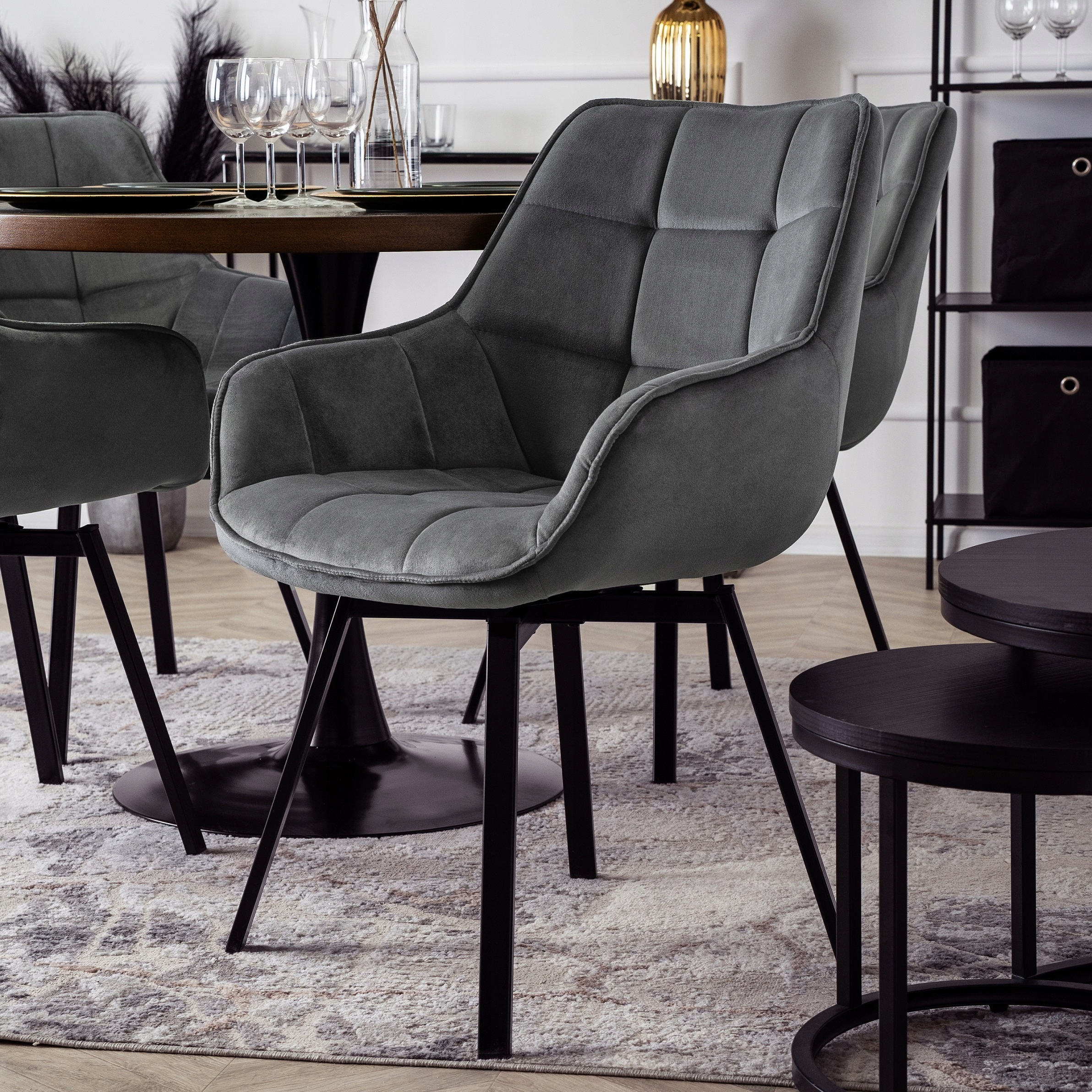Krzesło Obrotowe Tapicerowane Welurowe Do Jadalni Salonu Loft Szare LUNA ⭐⭐⭐⭐⭐