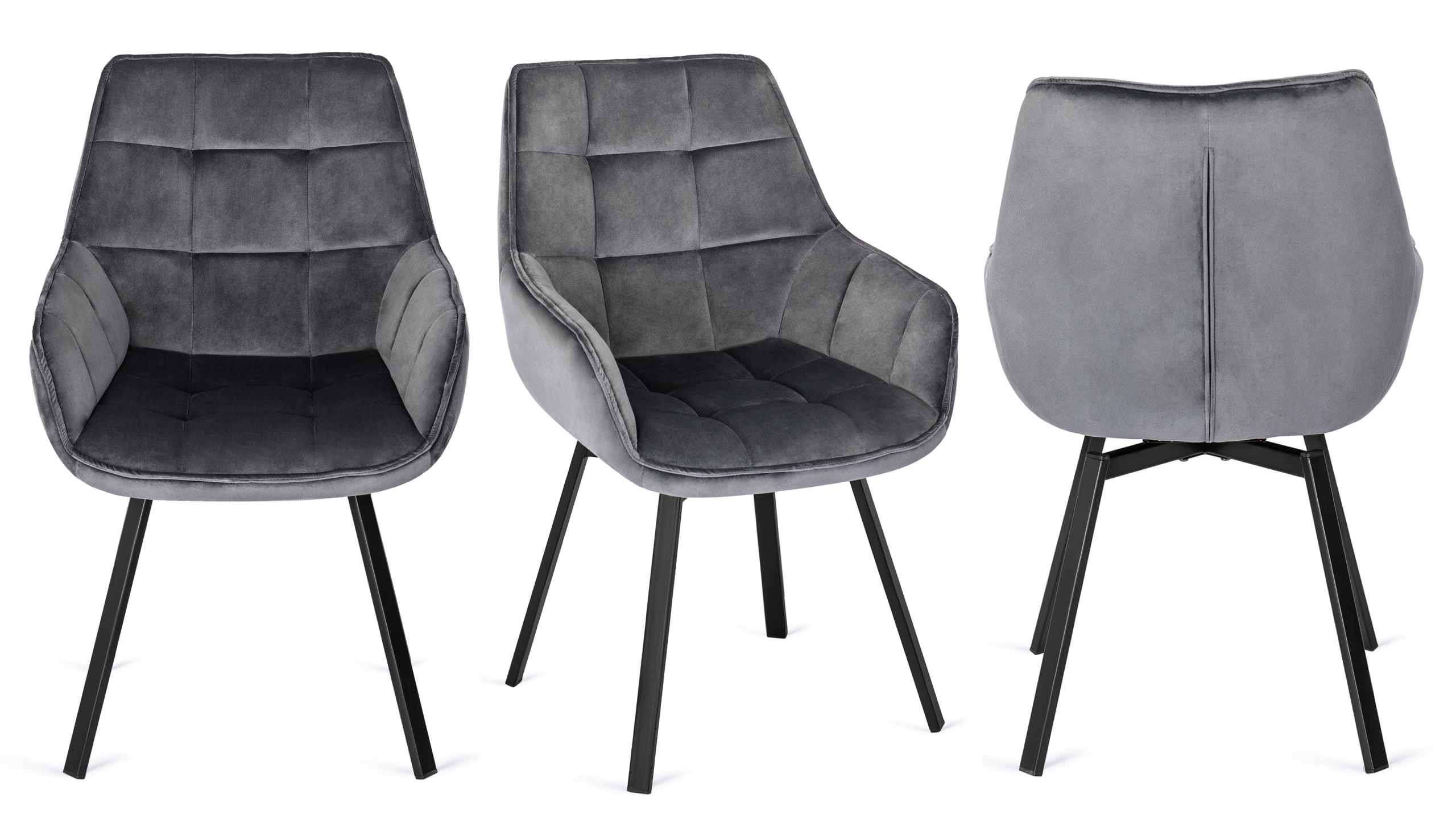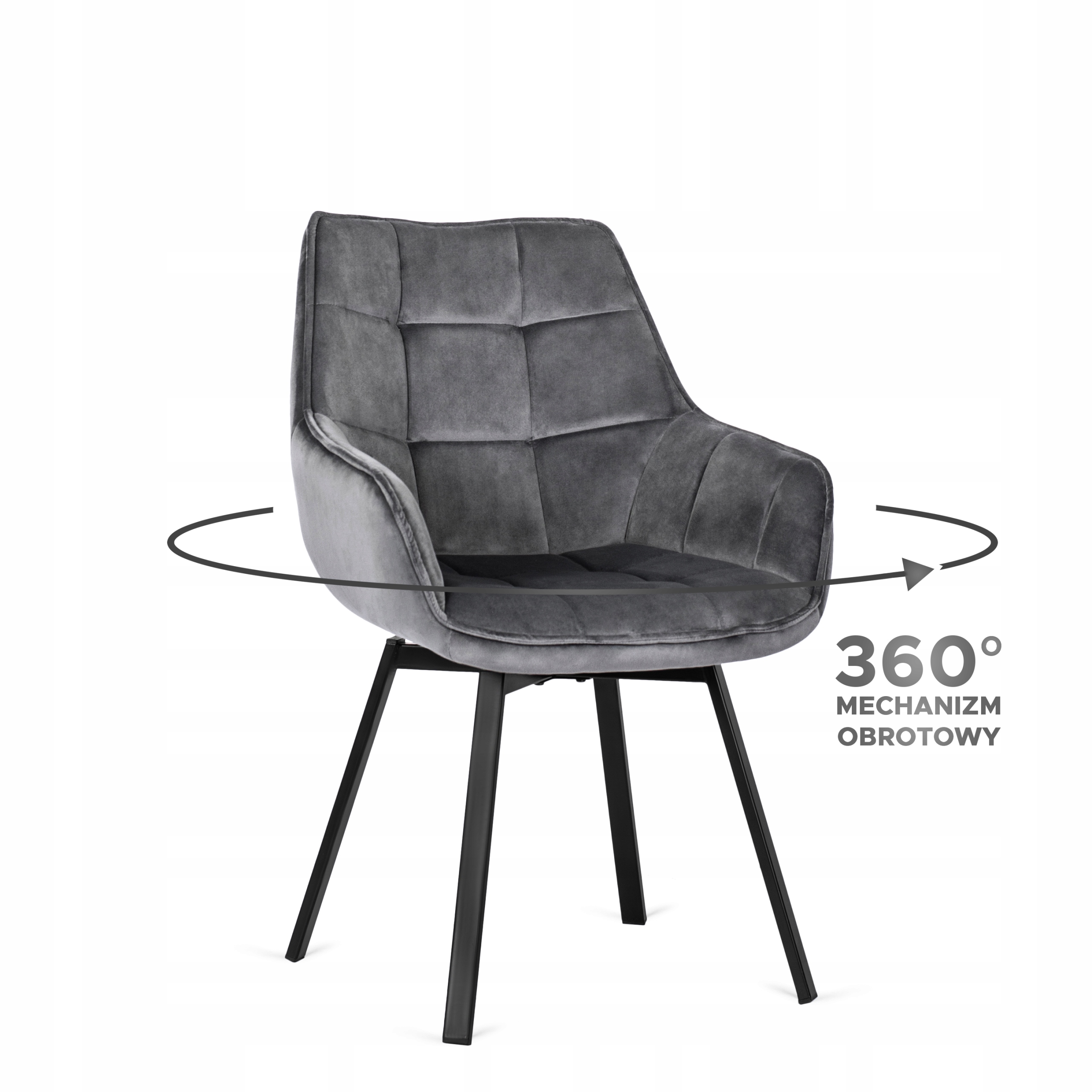 - Krzesło welurowe z funkcją obracania LUNA w kolorze popielatym z czarnymi nogami