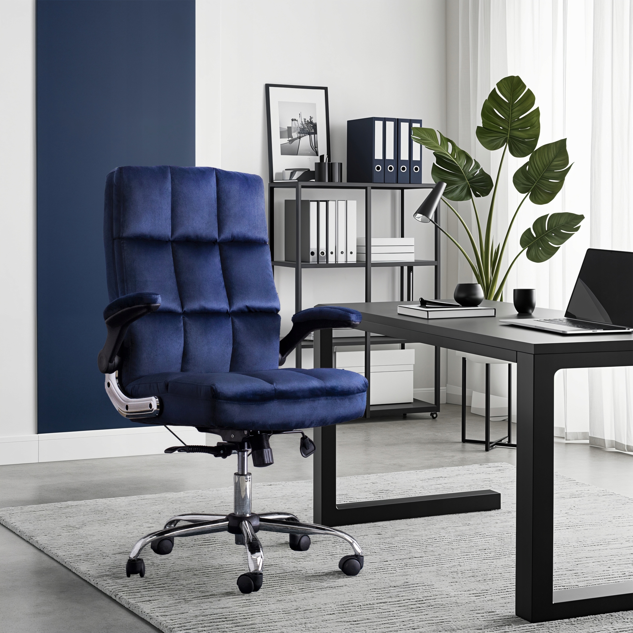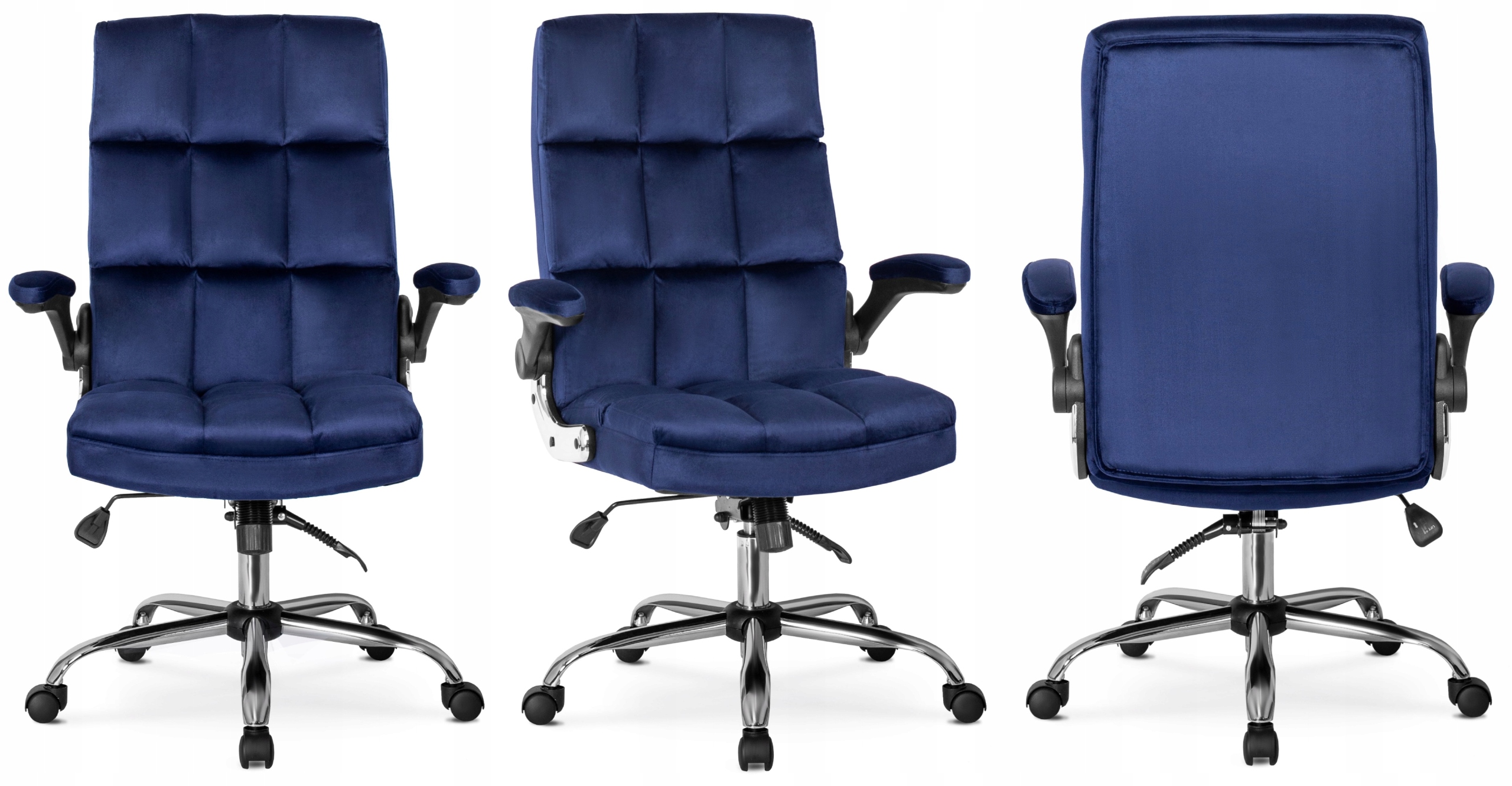 Krzesło Obrotowe Welurowe Fotel Do Biurka Gabinetu Salonu Granatowy LONDON ⭐⭐⭐⭐⭐