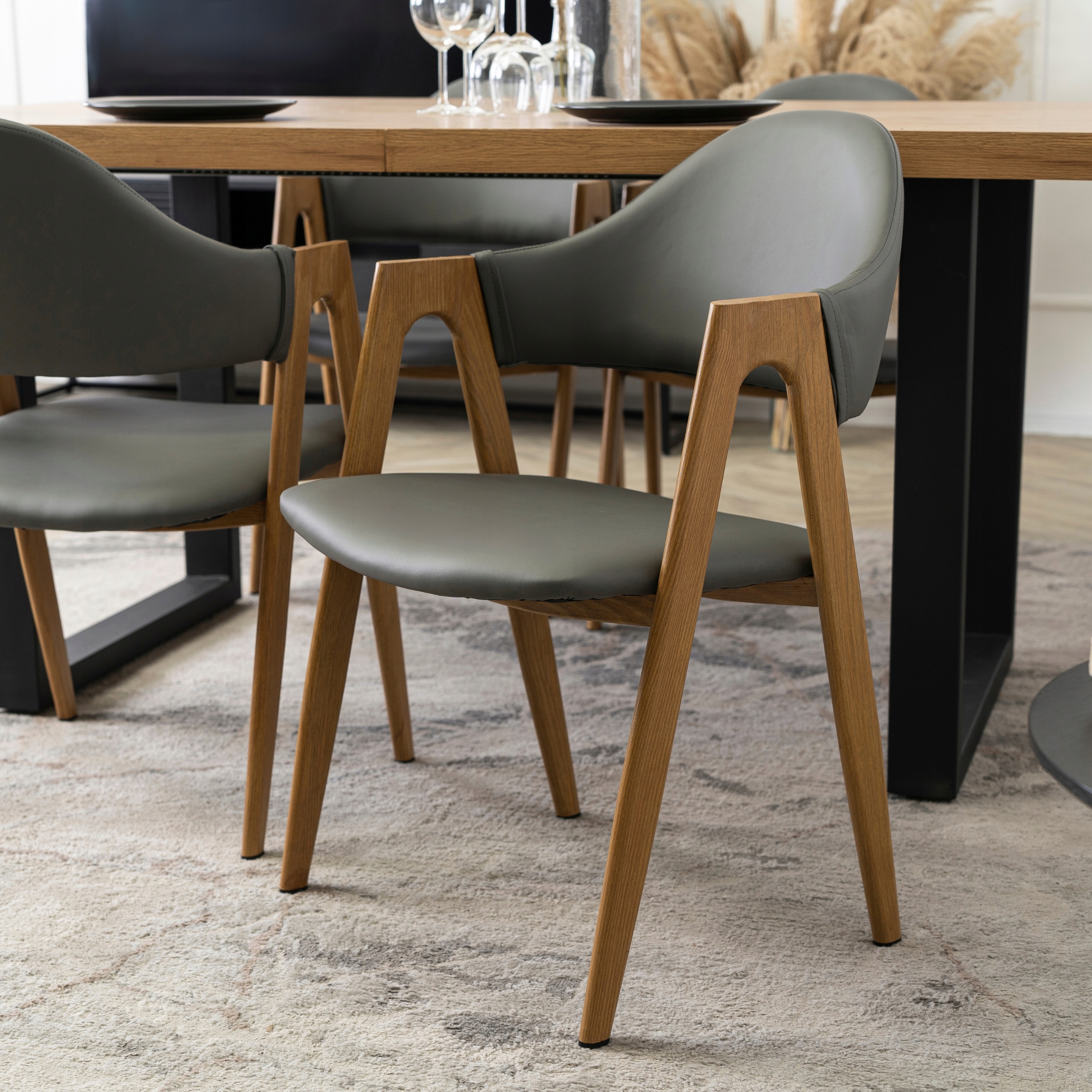 Krzesło Skandynawskie Tapicerowane Z Eko Skóry Do Jadalni Szare Dąb WILLY ⭐⭐⭐⭐⭐