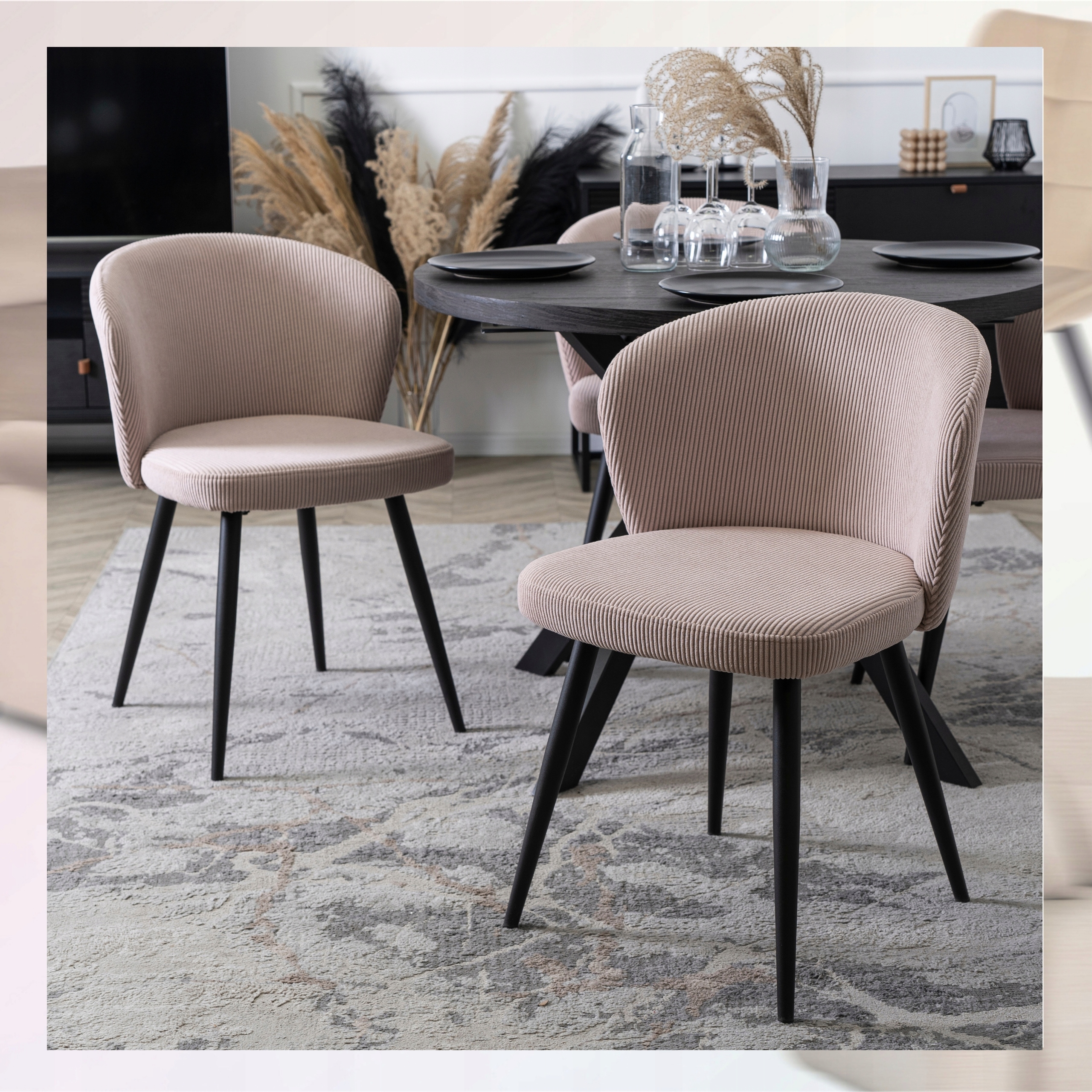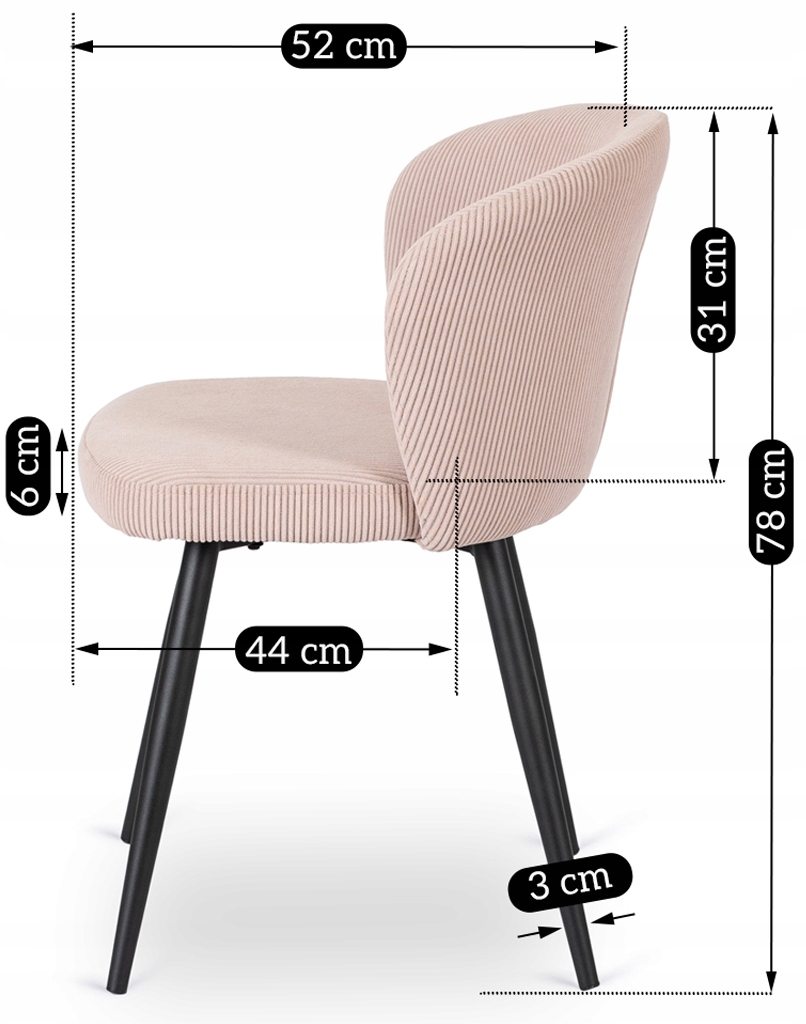 Krzesło idealnie pasuje do nowoczesnych kuchni, jadalni oraz eleganckich salonów i pracowni.