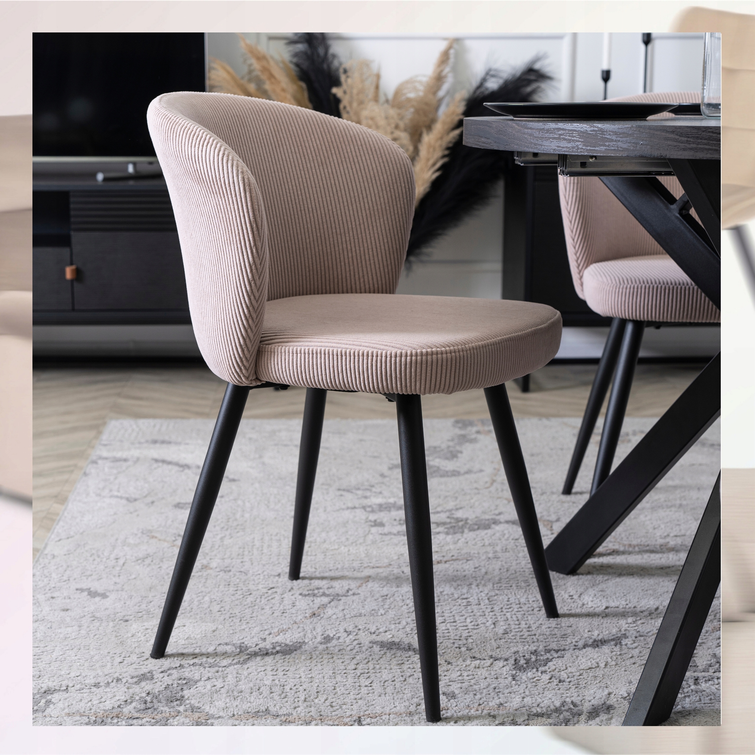 Krzesło Sztruks Tapicerowane Do Salonu Jadalni Loftowe Beżowe HAILEY ⭐⭐⭐⭐⭐
