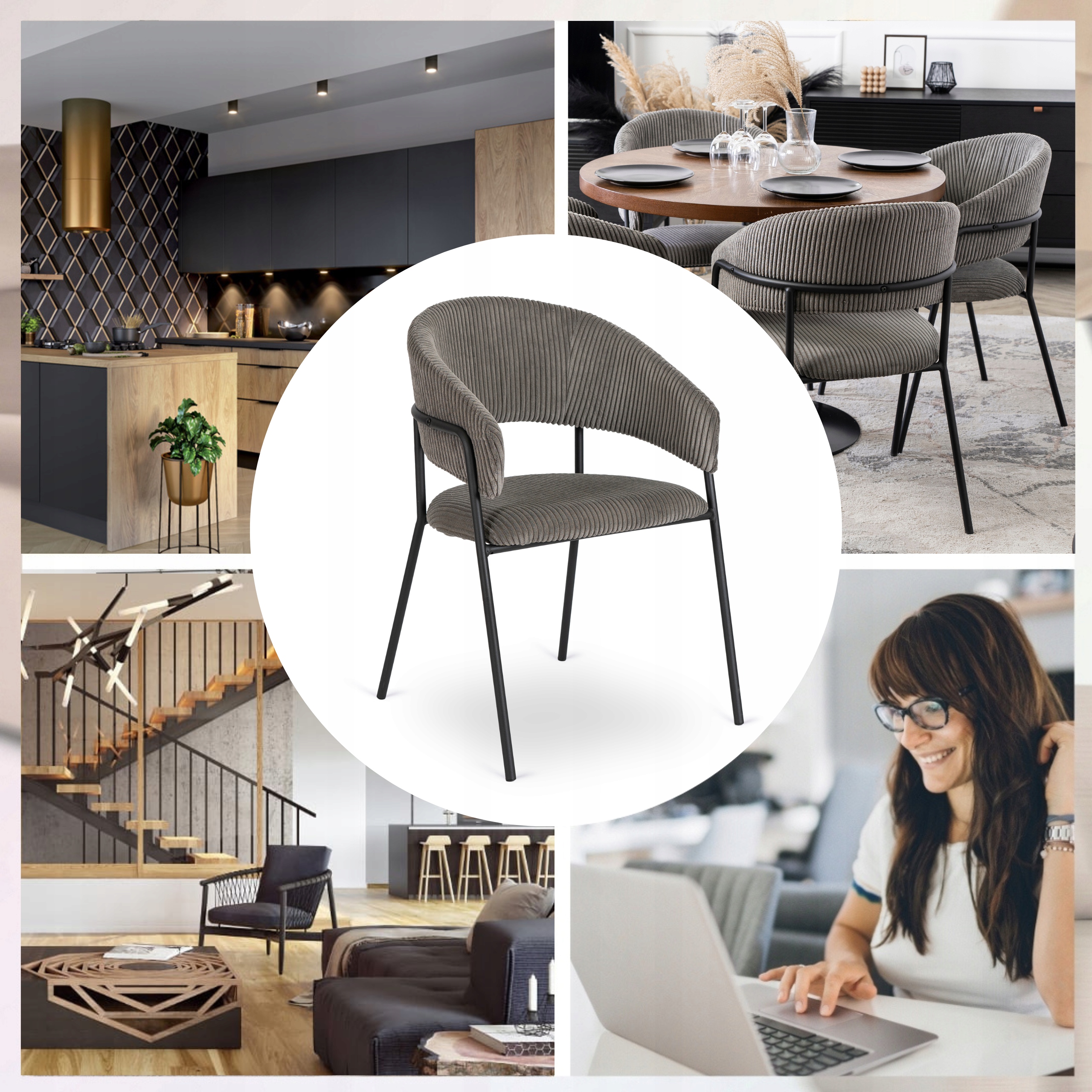 Krzesło idealnie pasuje do nowoczesnych kuchni, jadalni oraz eleganckich salonów i pracowni.