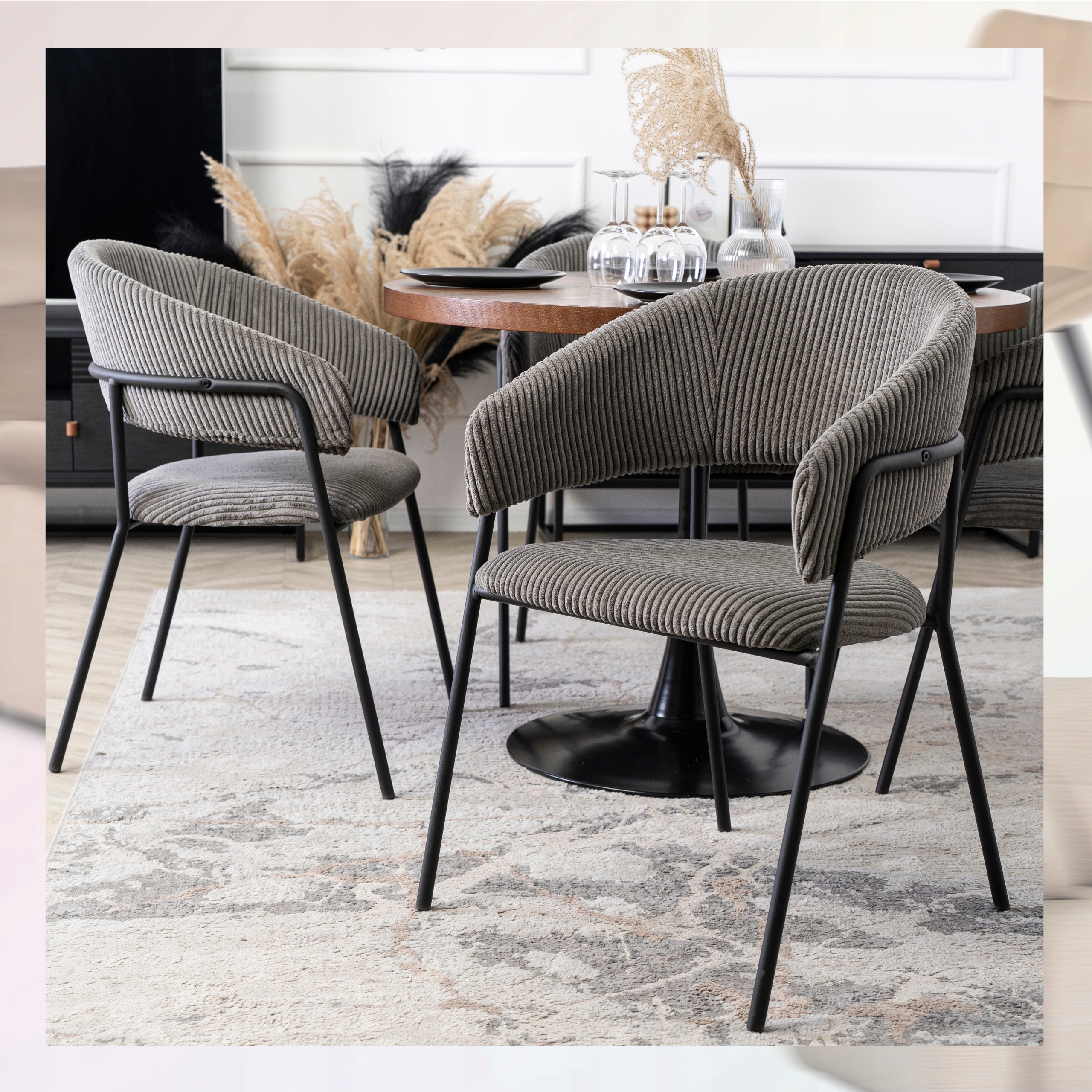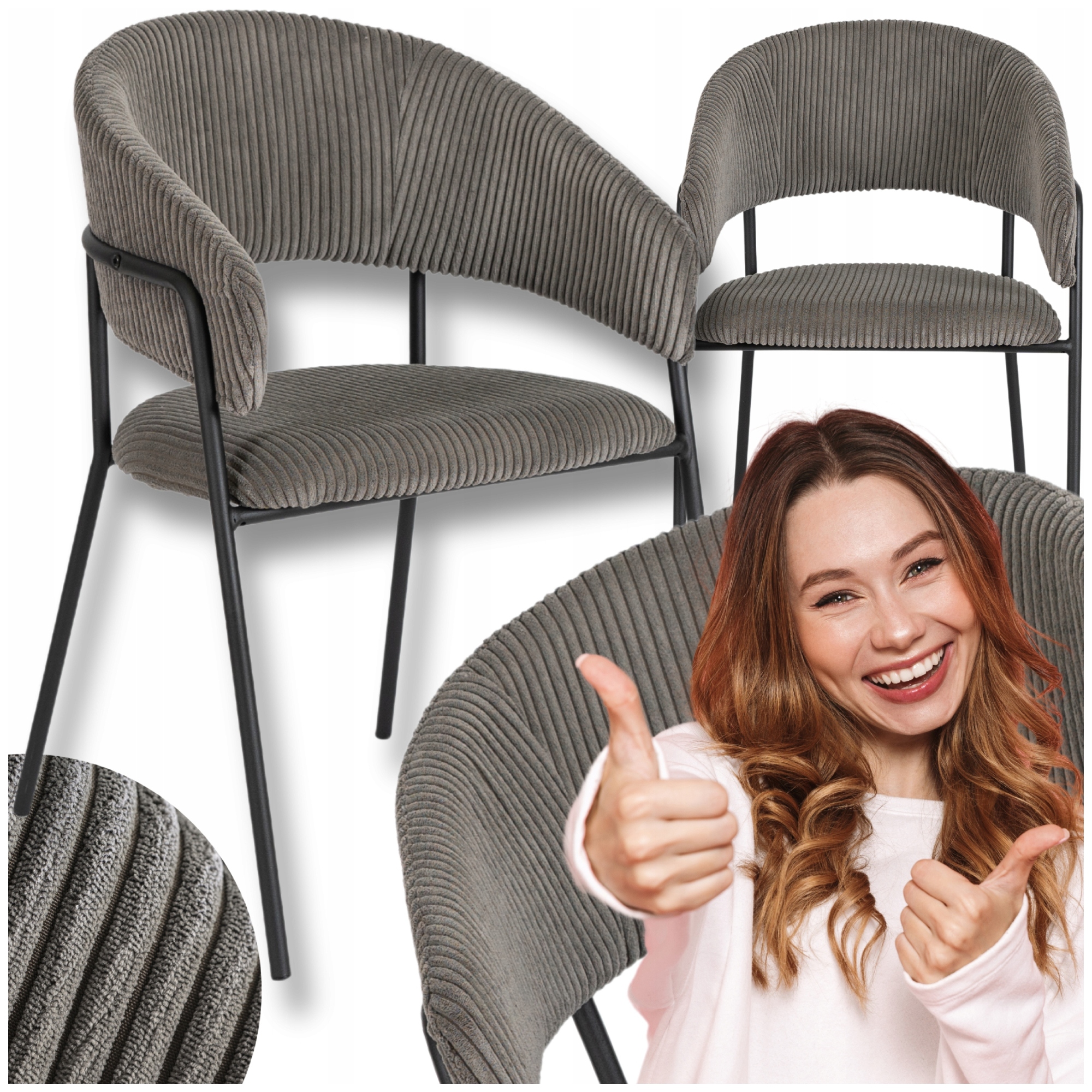 Krzesło Sztruksowe Tapicerowane Loftowe Do Salonu Jadalni Szare TINKA ⭐⭐⭐⭐⭐