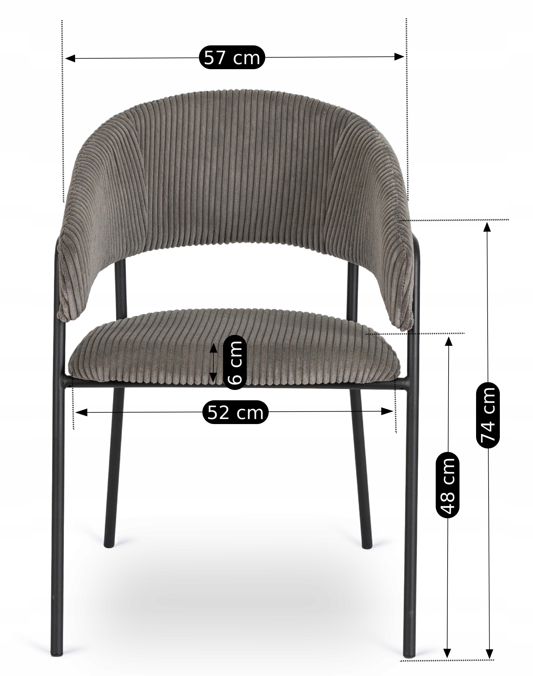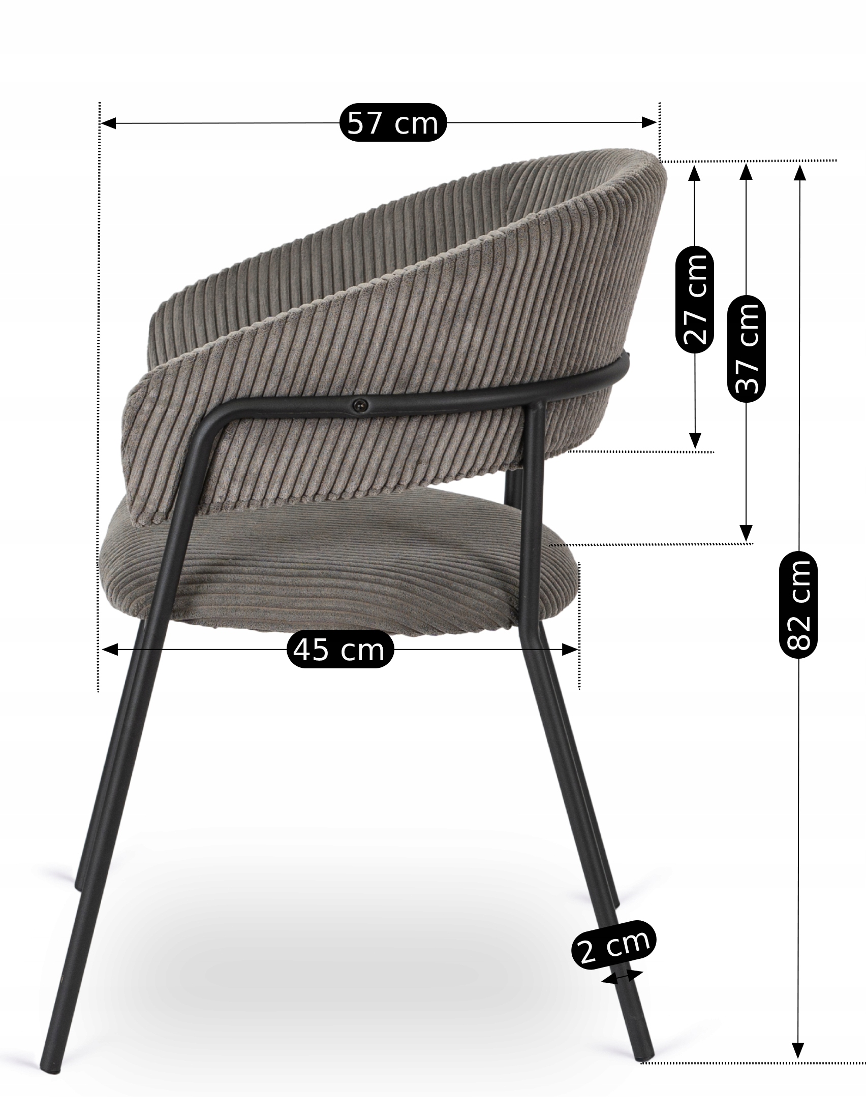 - Głębokość krzesła: 57 cm