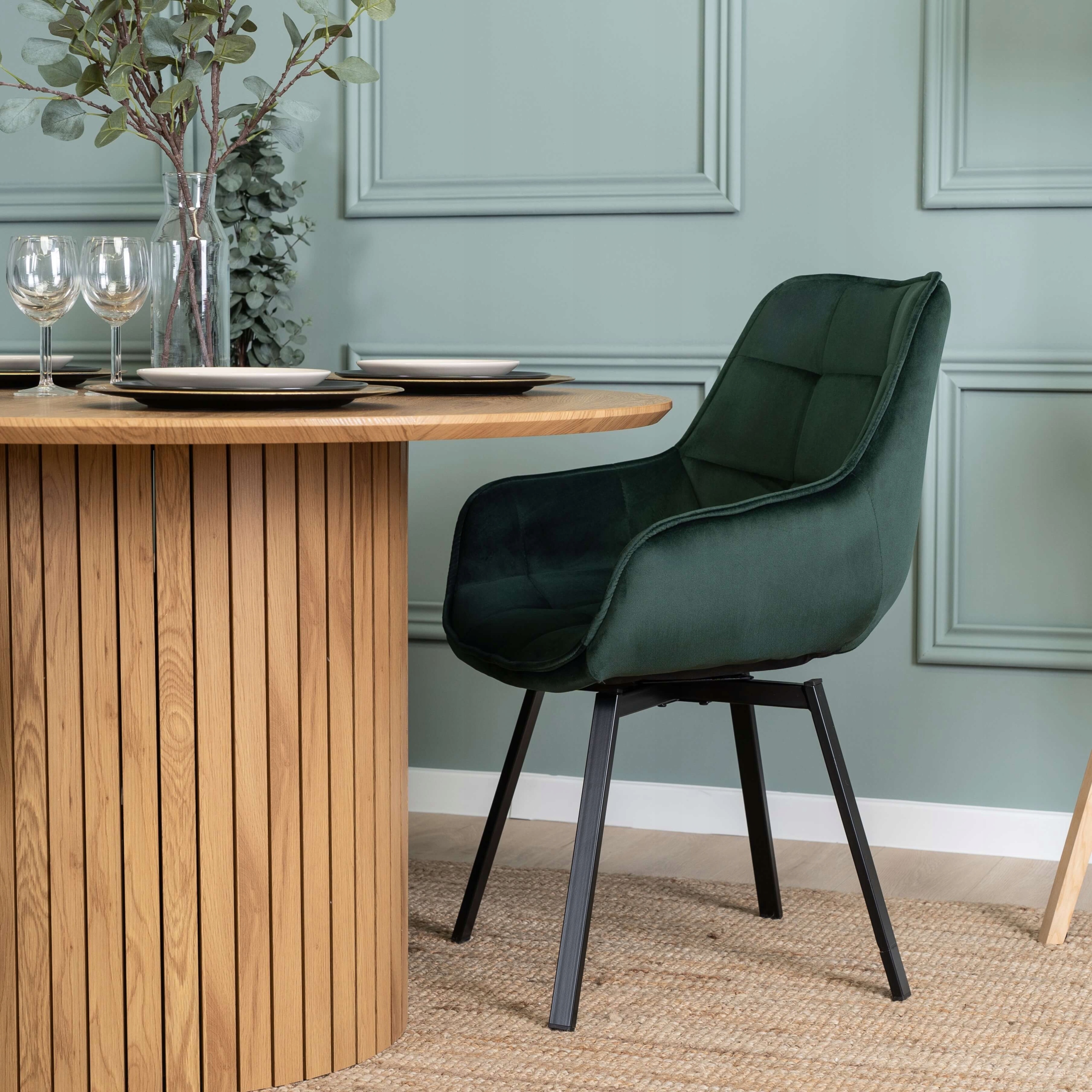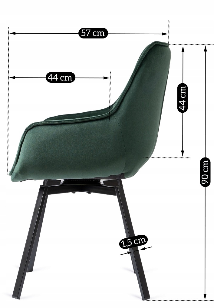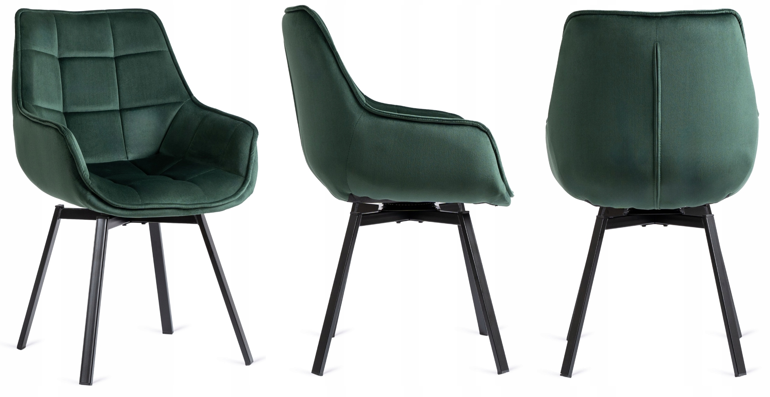- Krzesło welurowe z funkcją obracania LUNA w kolorze ciemnej zieleni (butelkowej) z czarnymi nogami