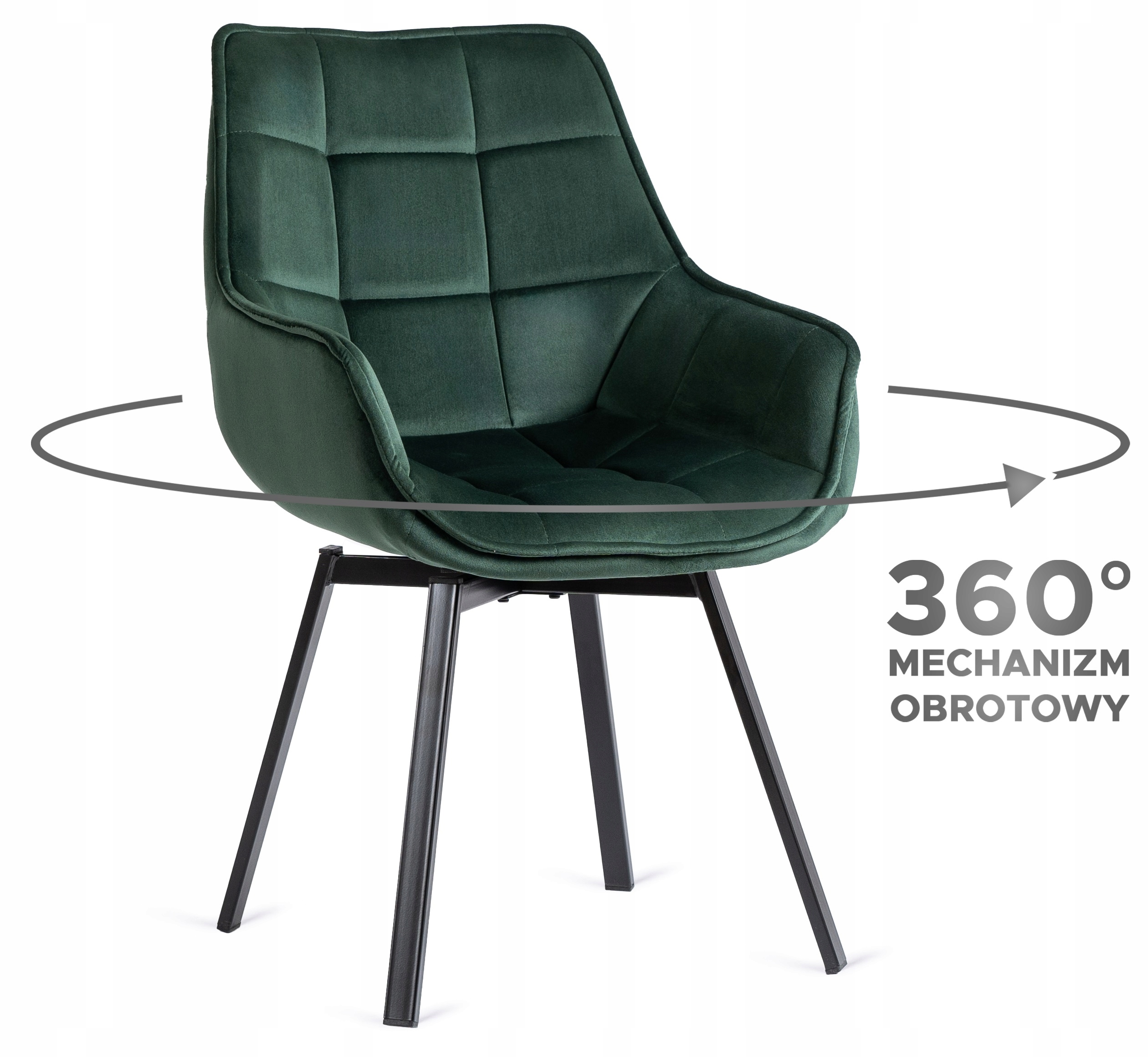 Krzesło Tapicerowane Do Jadalni Kuchni Salonu Obrotowe 360 Zielone LUNA ⭐⭐⭐⭐⭐