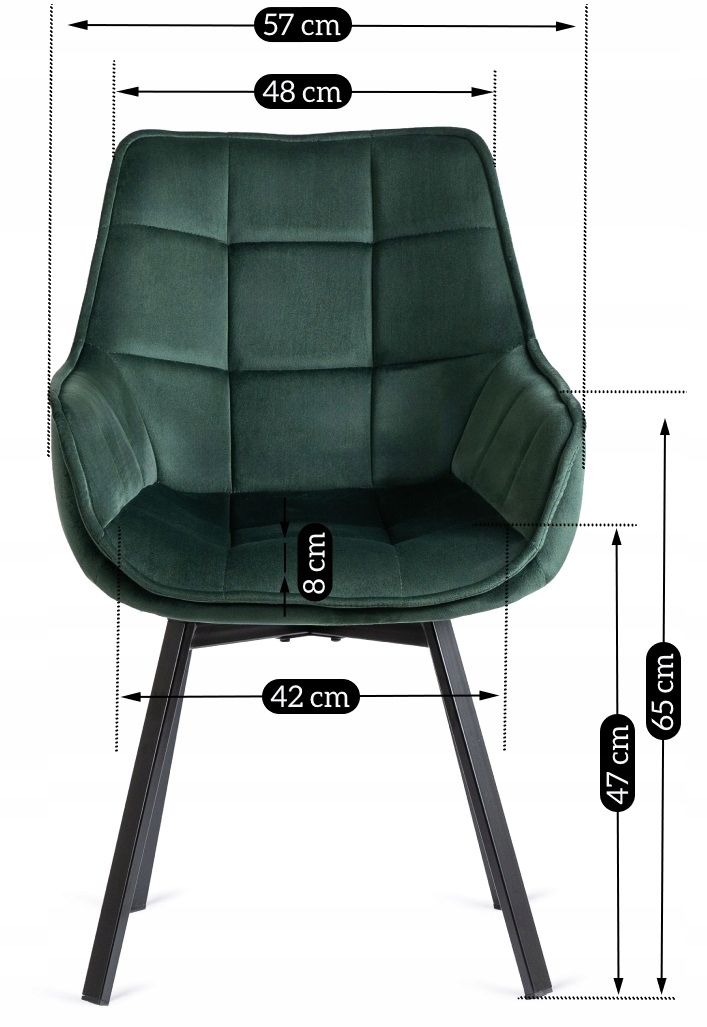 - Głębokość krzesła: 57 cm