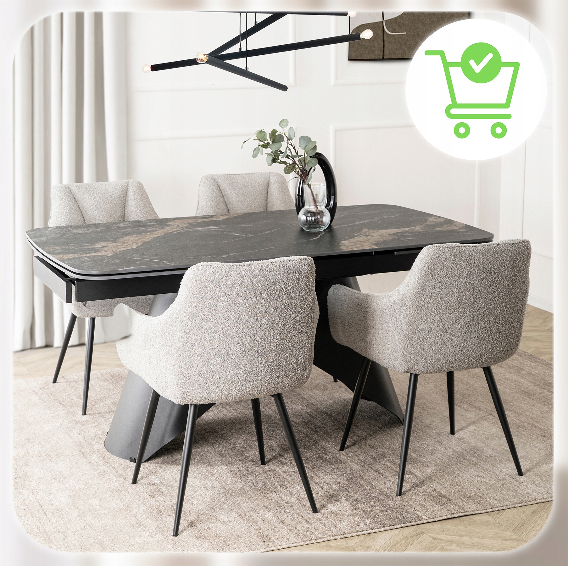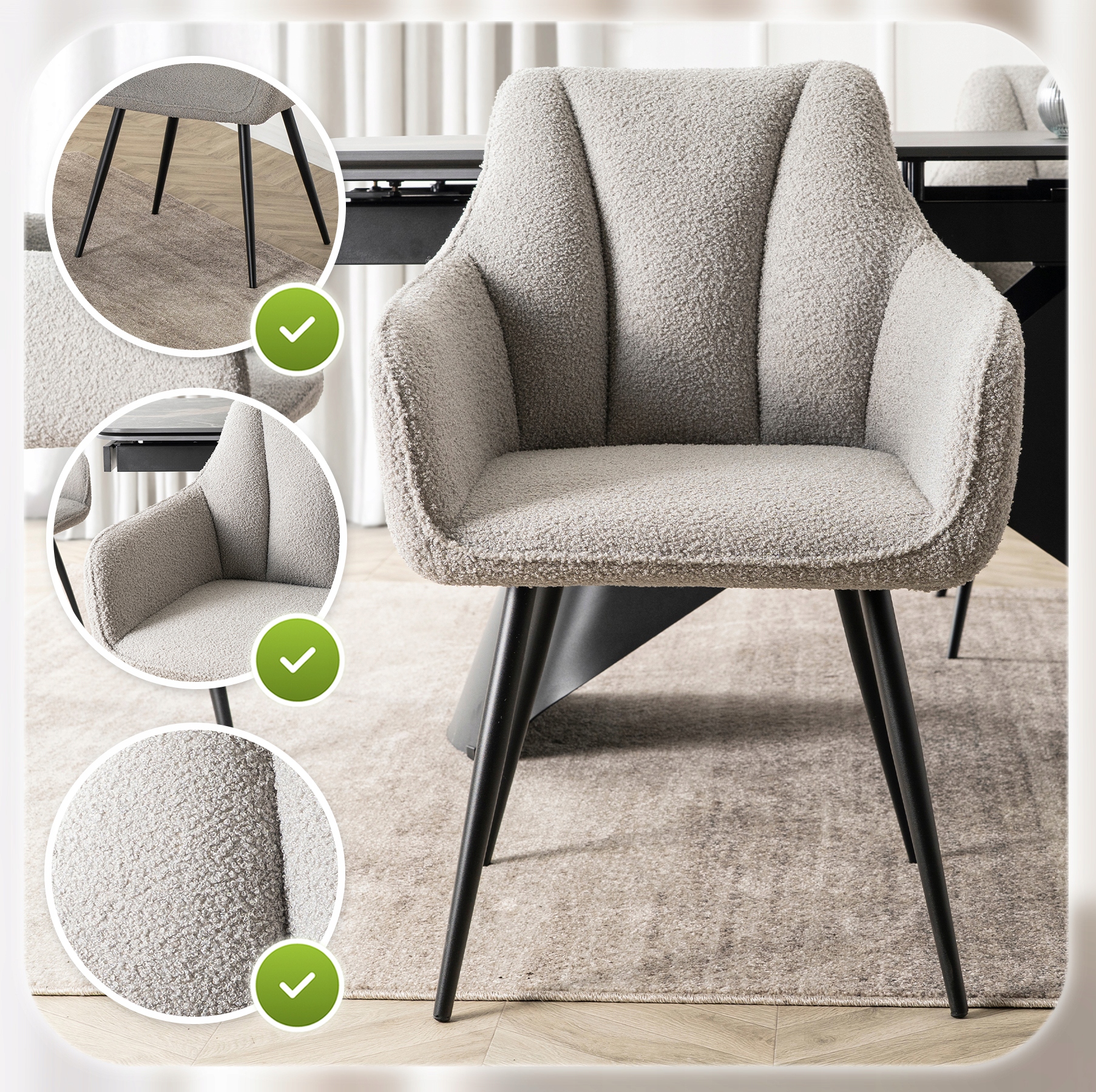 Tak – uniwersalny design i tapicerka z tkaniny teddy sprawiają, że krzesło doskonale wygląda nie tylko w jadalni, ale również w salonie, biurze czy pokoju gościnnym.