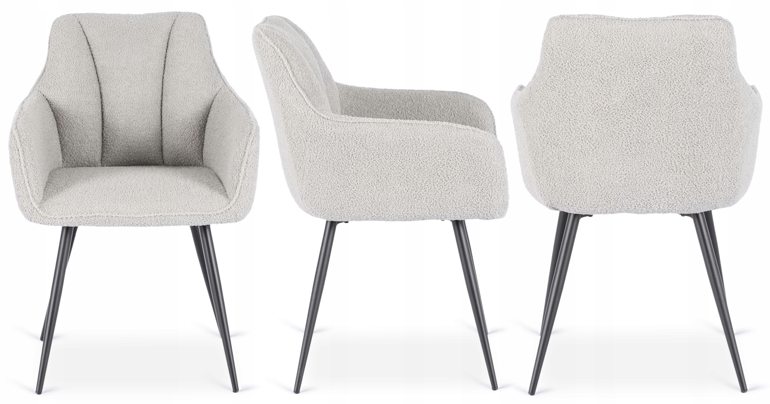 Krzesło w kolorze szarym to połączenie nowoczesnego designu i wygody. Miękka tapicerka z tkaniny teddy sprawia, że siedzisko jest niezwykle przyjemne w dotyku, a ergonomiczne oparcie z podłokietnikami zapewnia komfort użytkowania. Stabilne, czarne nogi malowane proszkowo gwarantują trwałość i nowoczesny wygląd. To idealny wybór do jadalni, salonu, kuchni, a także do eleganckich przestrzeni komercyjnych.