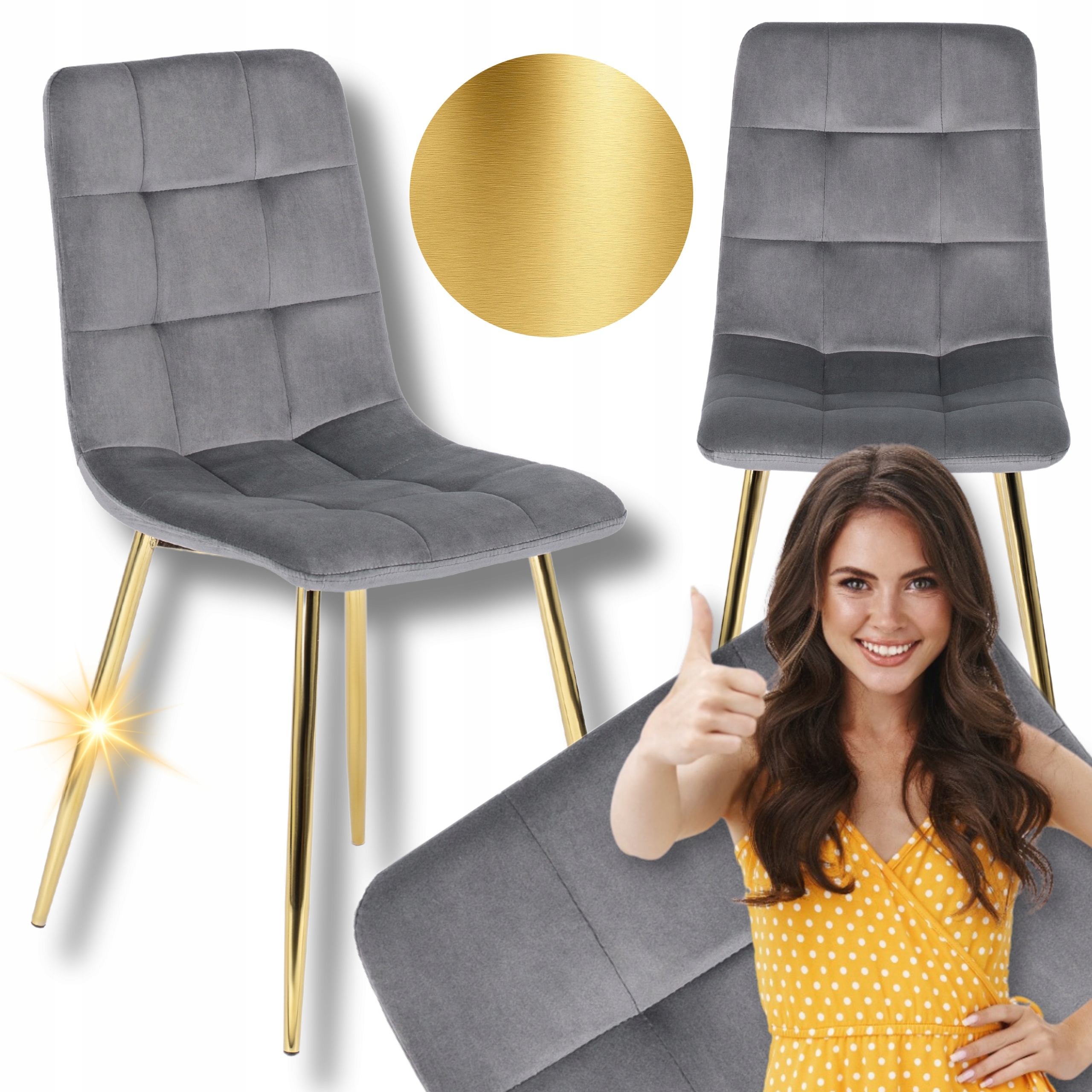 Krzesło Welurowe Jadalnia Glamour Złote Nogi Salon Do Toaletki Szare YORK ⭐⭐⭐⭐⭐