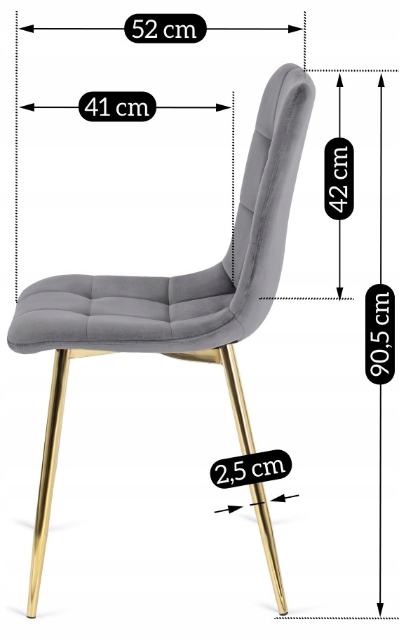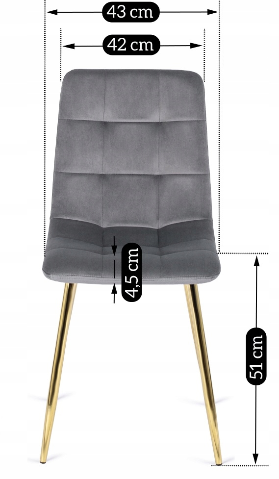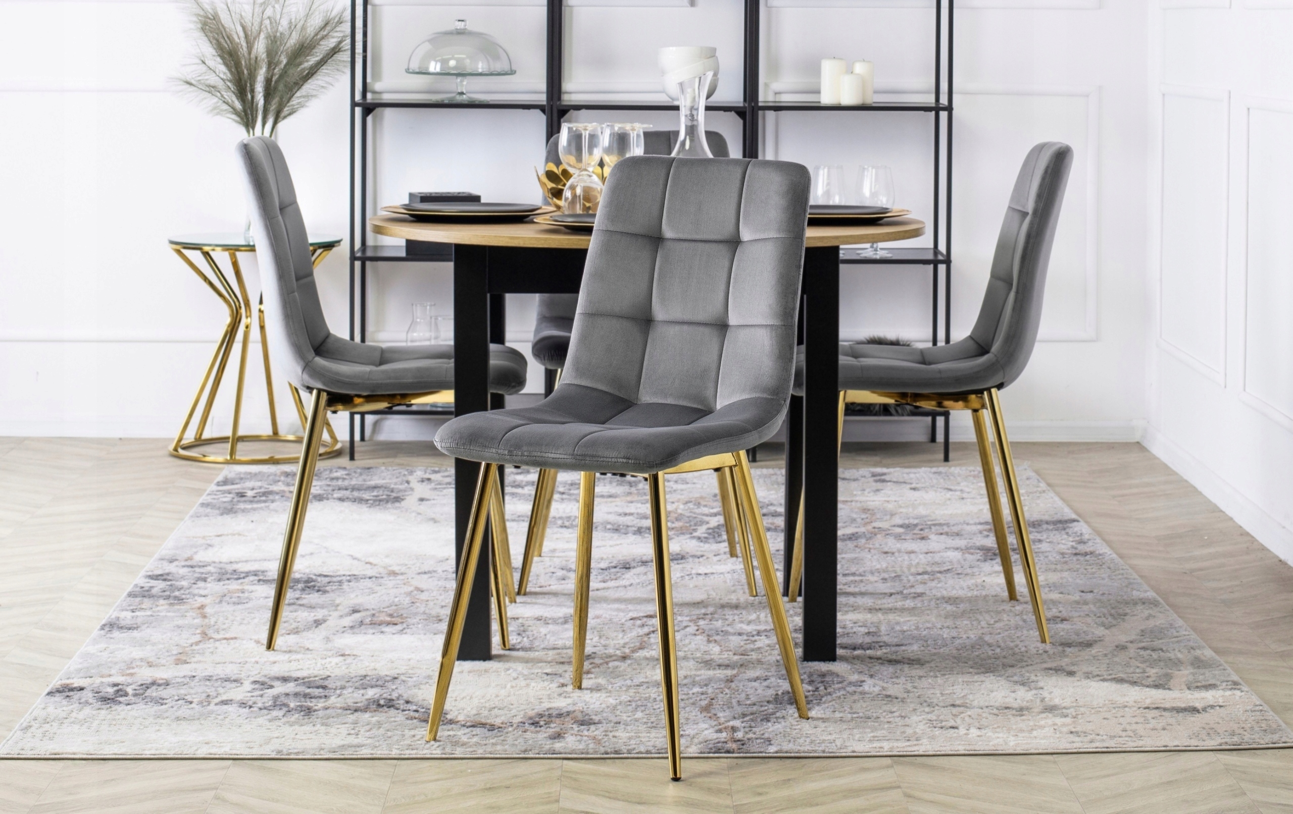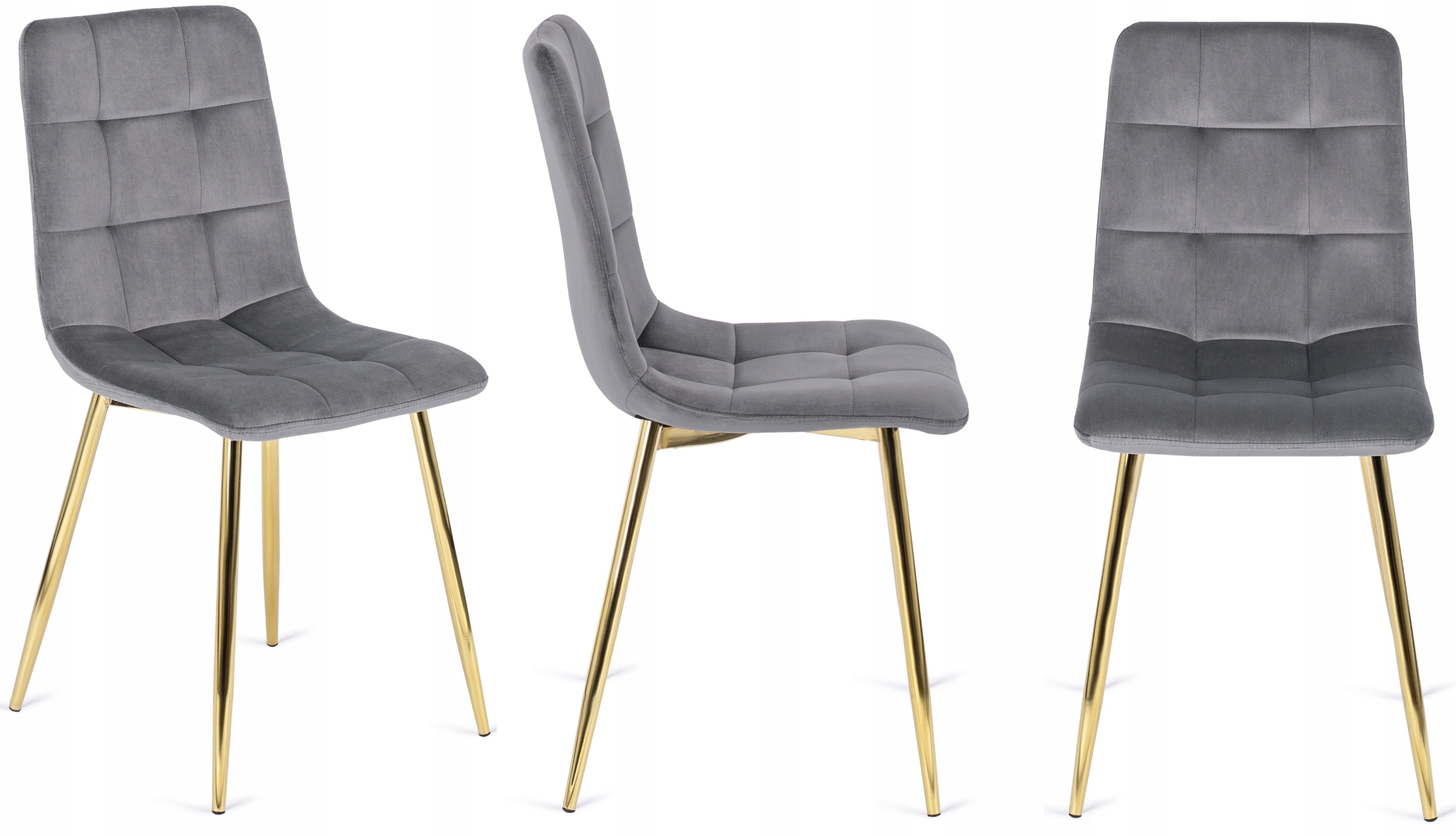 - Krzesło welurowe YORK w kolorze popielatym ze złotymi nogami