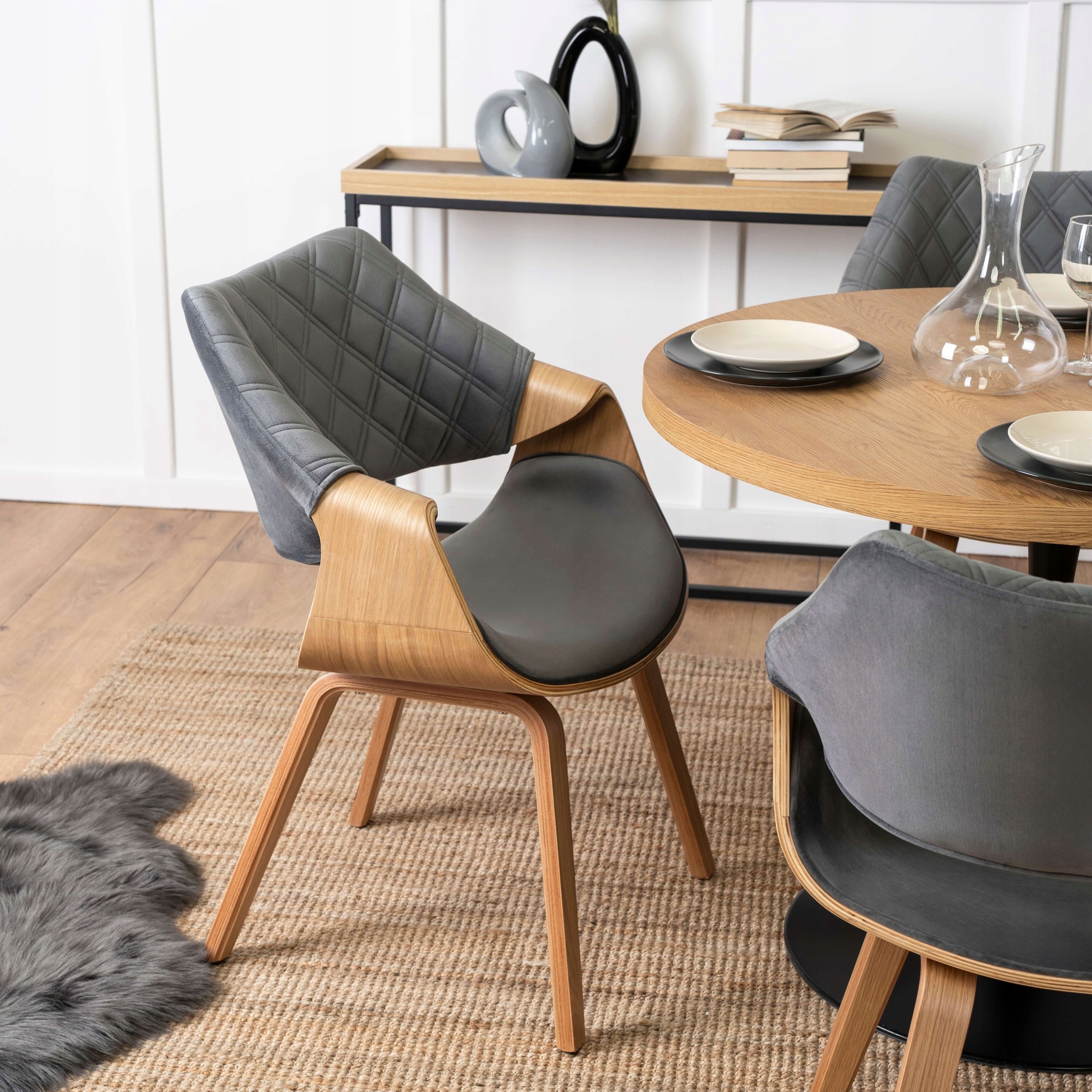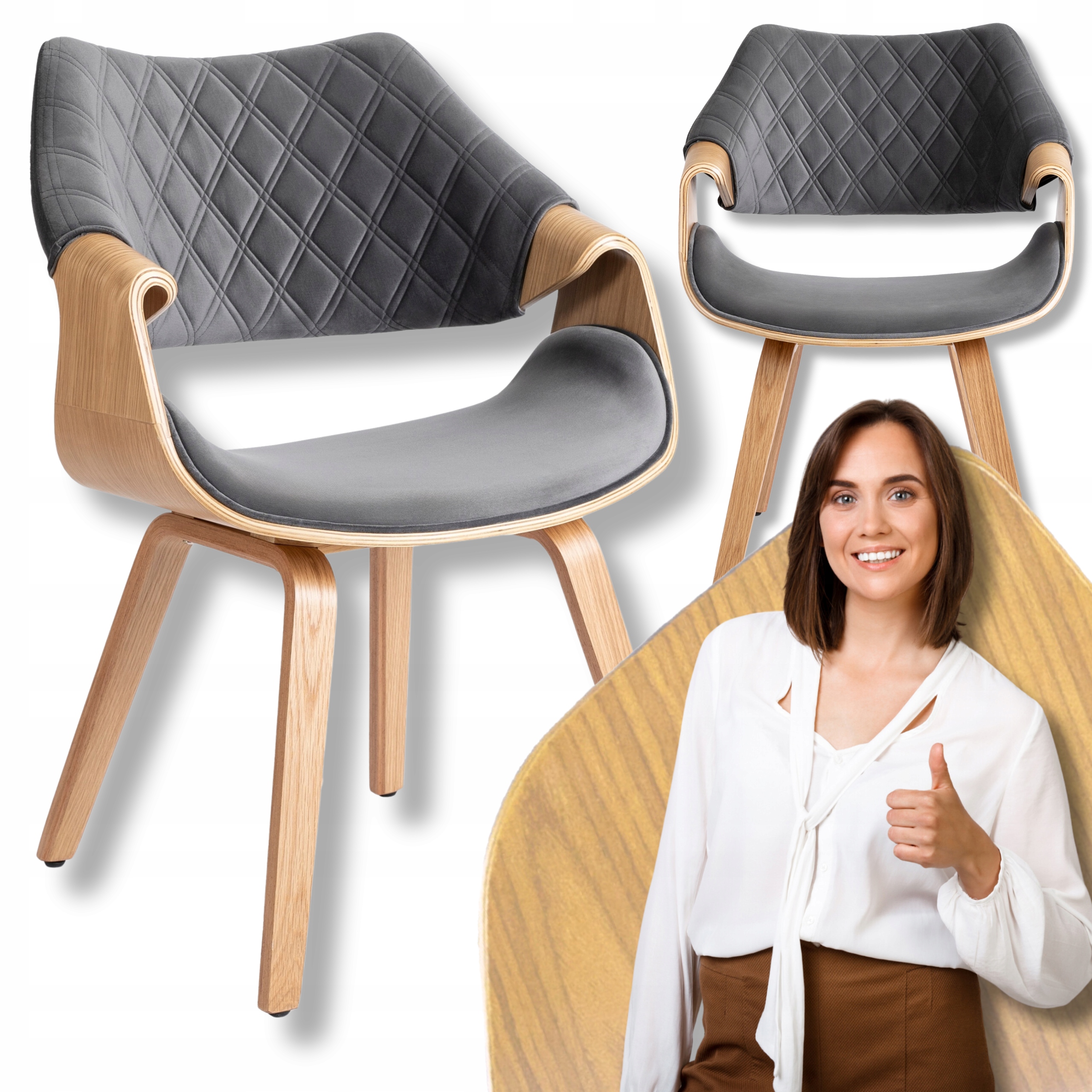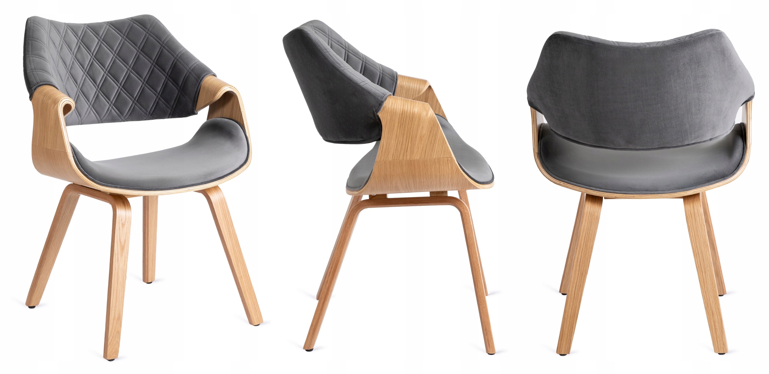 Krzesło Tapicerowane Drewniane Do Salonu Jadalni Loft Welurowe Szare LUISE ⭐⭐⭐⭐⭐