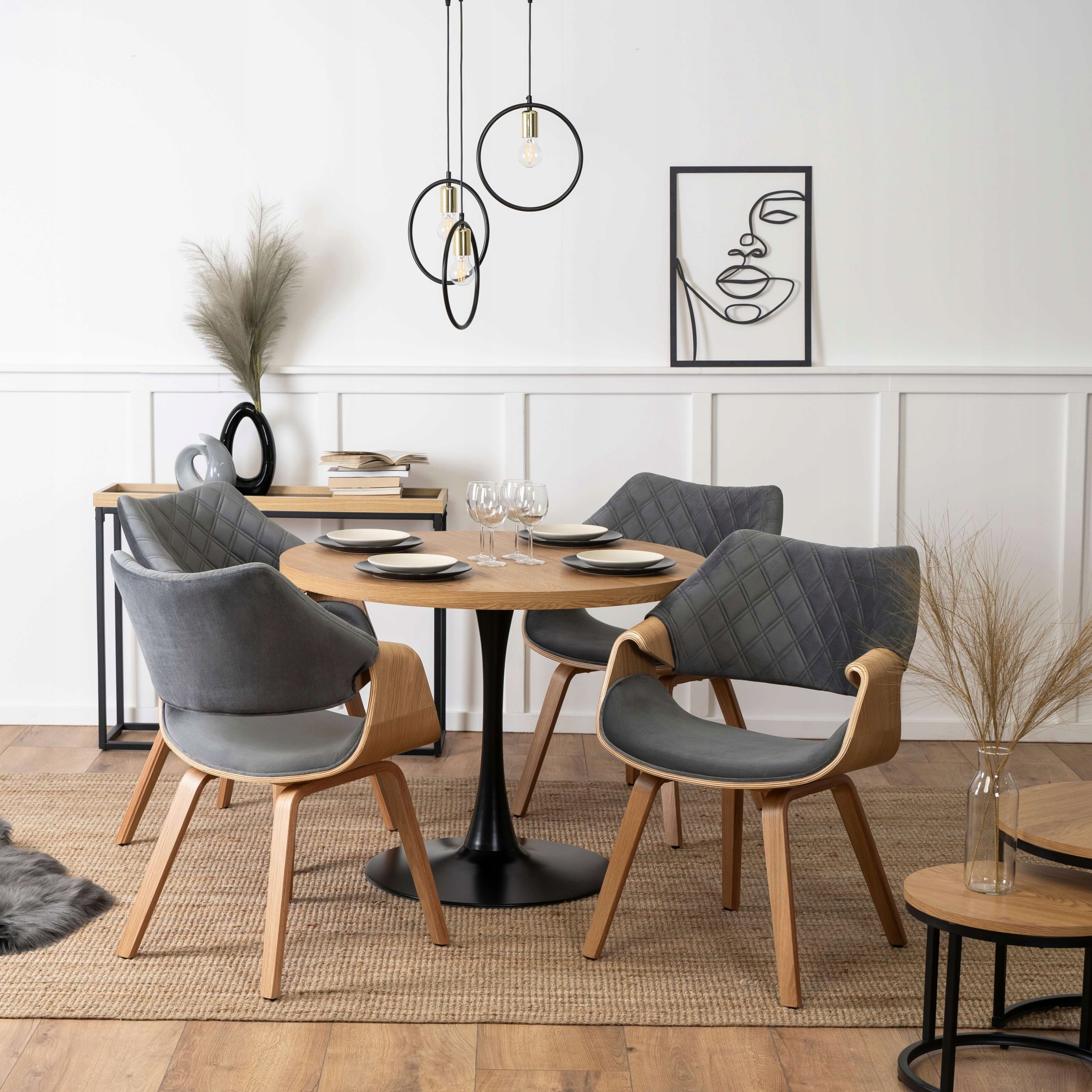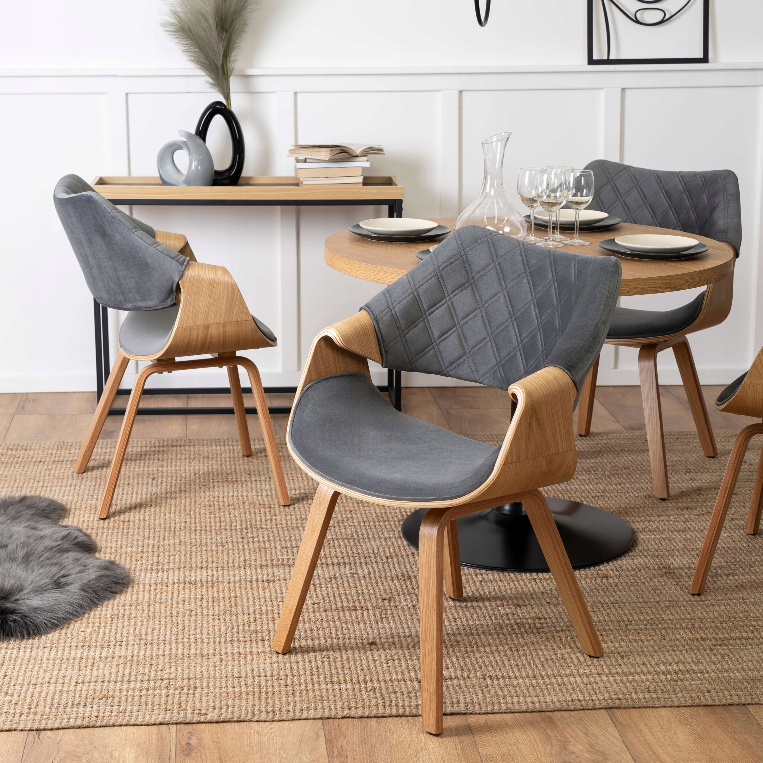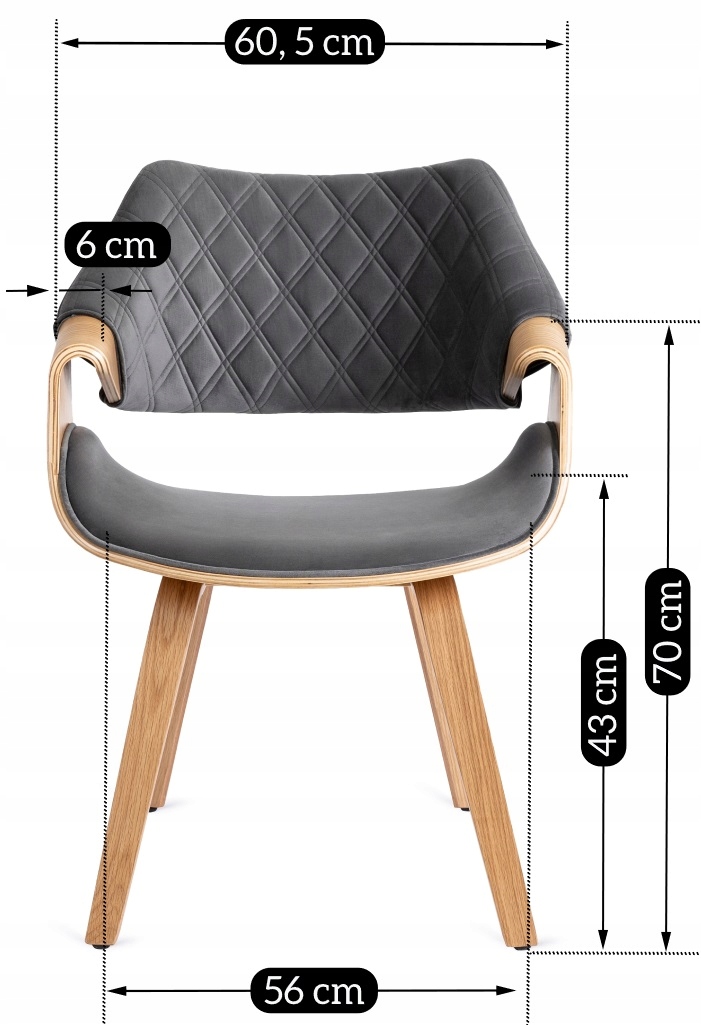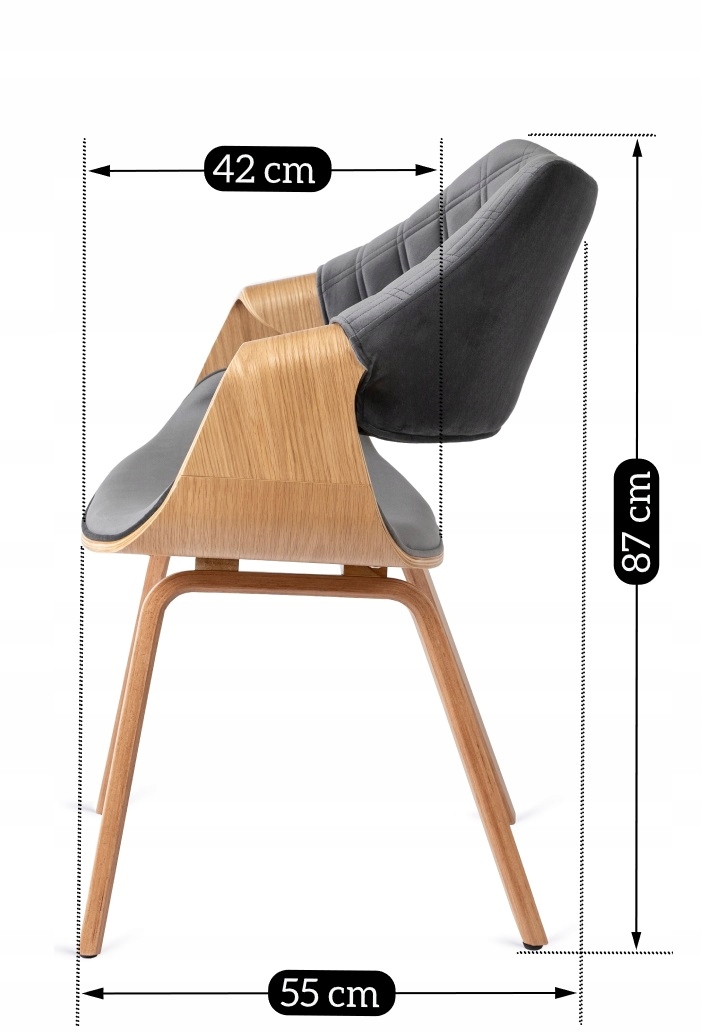 Krzesło Tapicerowane Drewniane Do Salonu Jadalni Loft Welurowe Szare LUISE ⭐⭐⭐⭐⭐