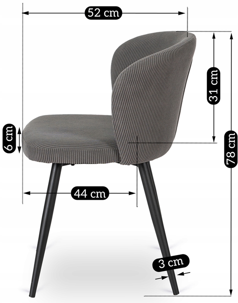Krzesło idealnie pasuje do nowoczesnych kuchni, jadalni oraz eleganckich salonów i pracowni.