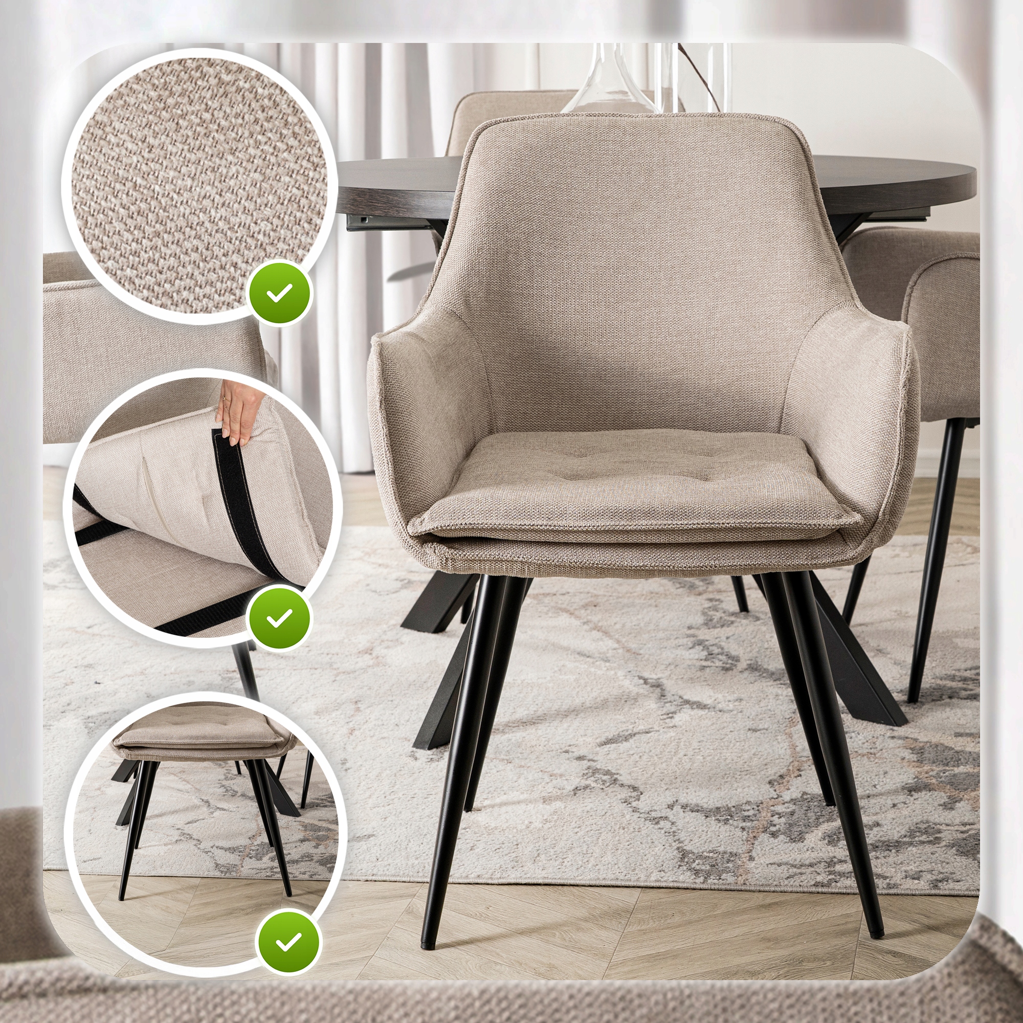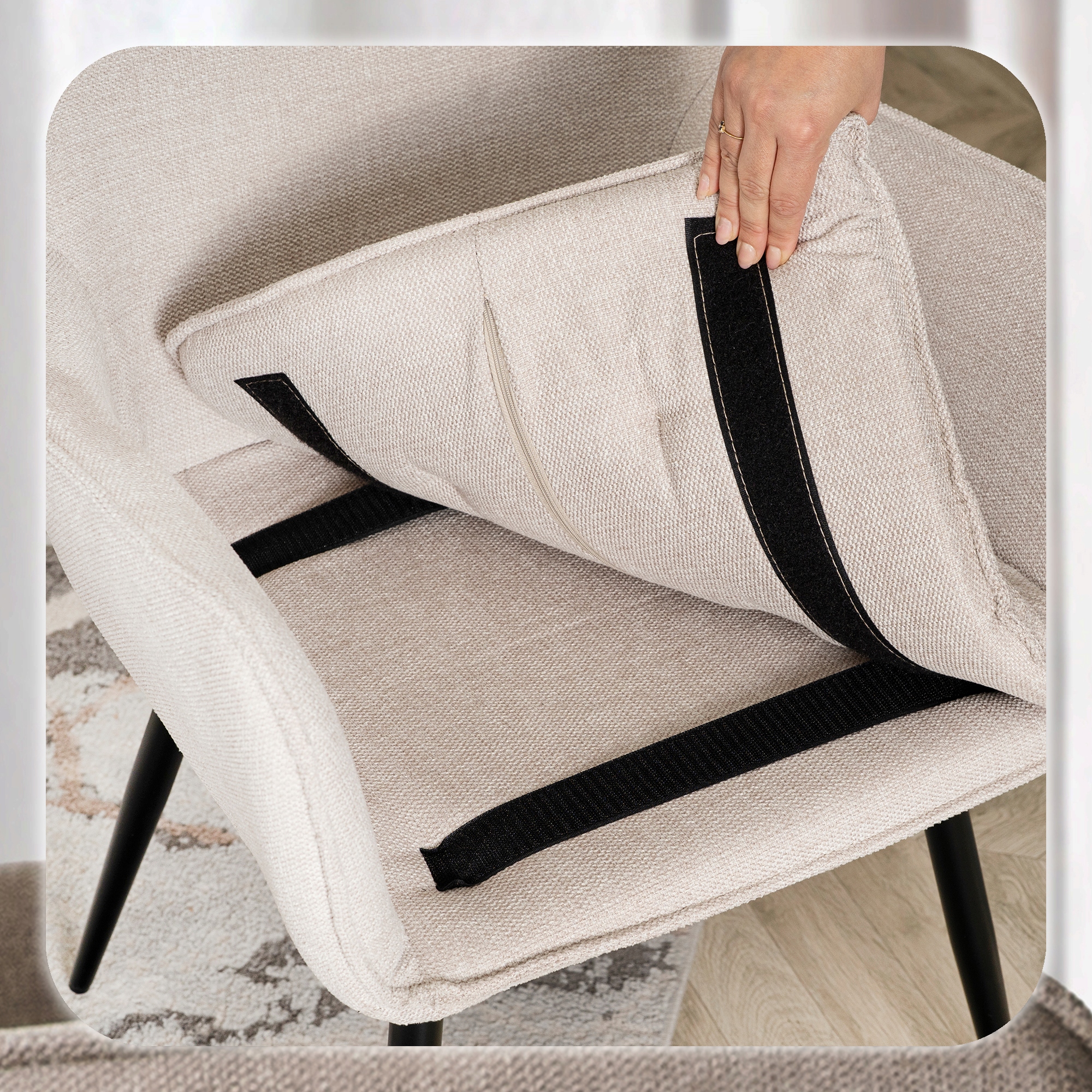Krzesło EDRICK Kremowy Tkanina zostało wyposażone w praktyczną, wyciąganą poduszkę mocowaną na rzepach, dzięki czemu utrzymanie czystości oraz codzienne użytkowanie staje się wyjątkowo proste i wygodne.