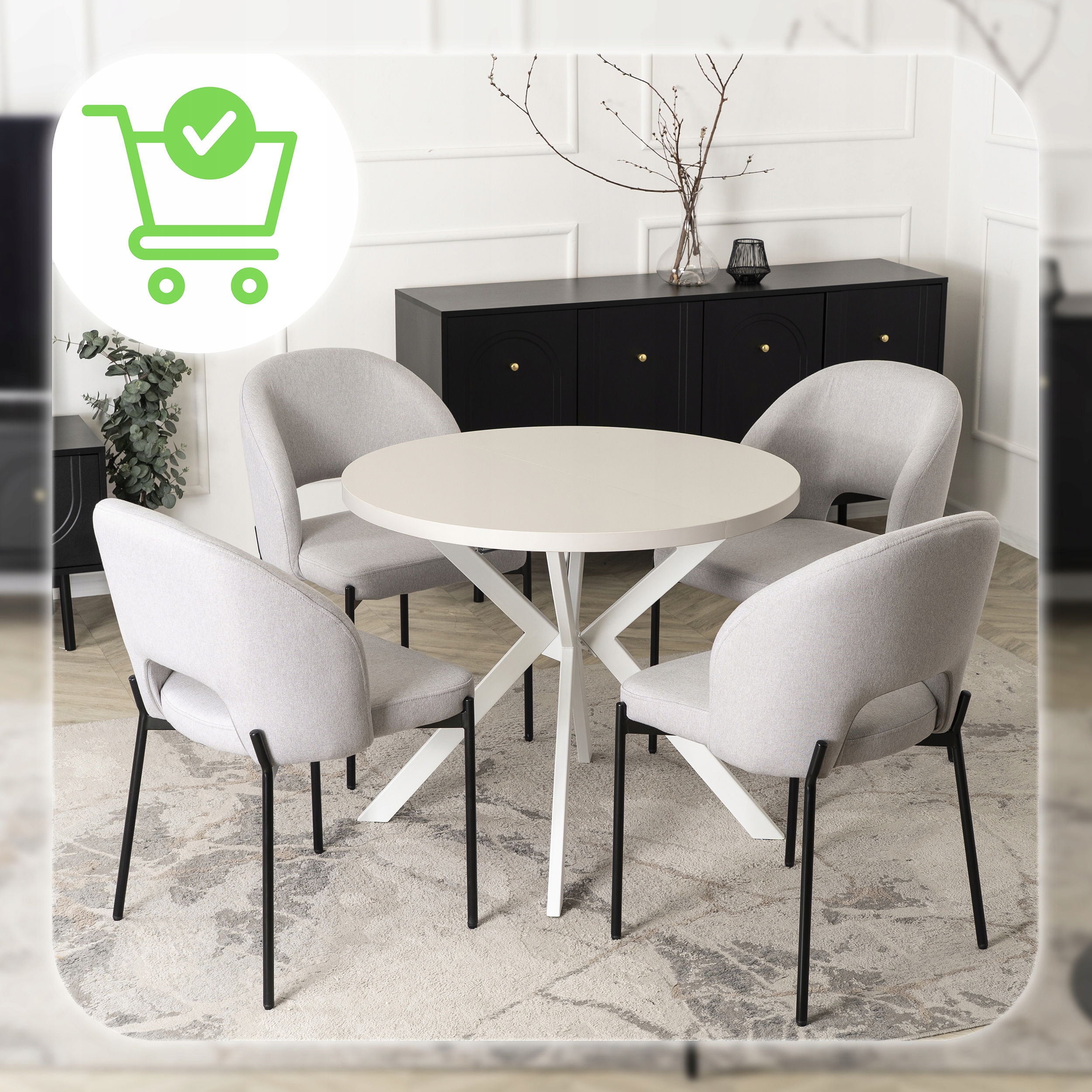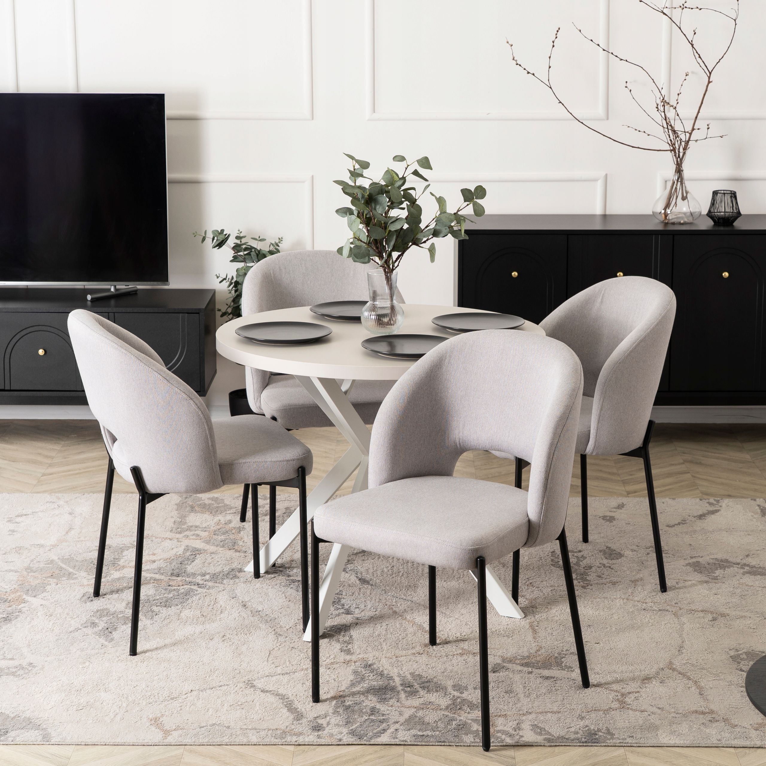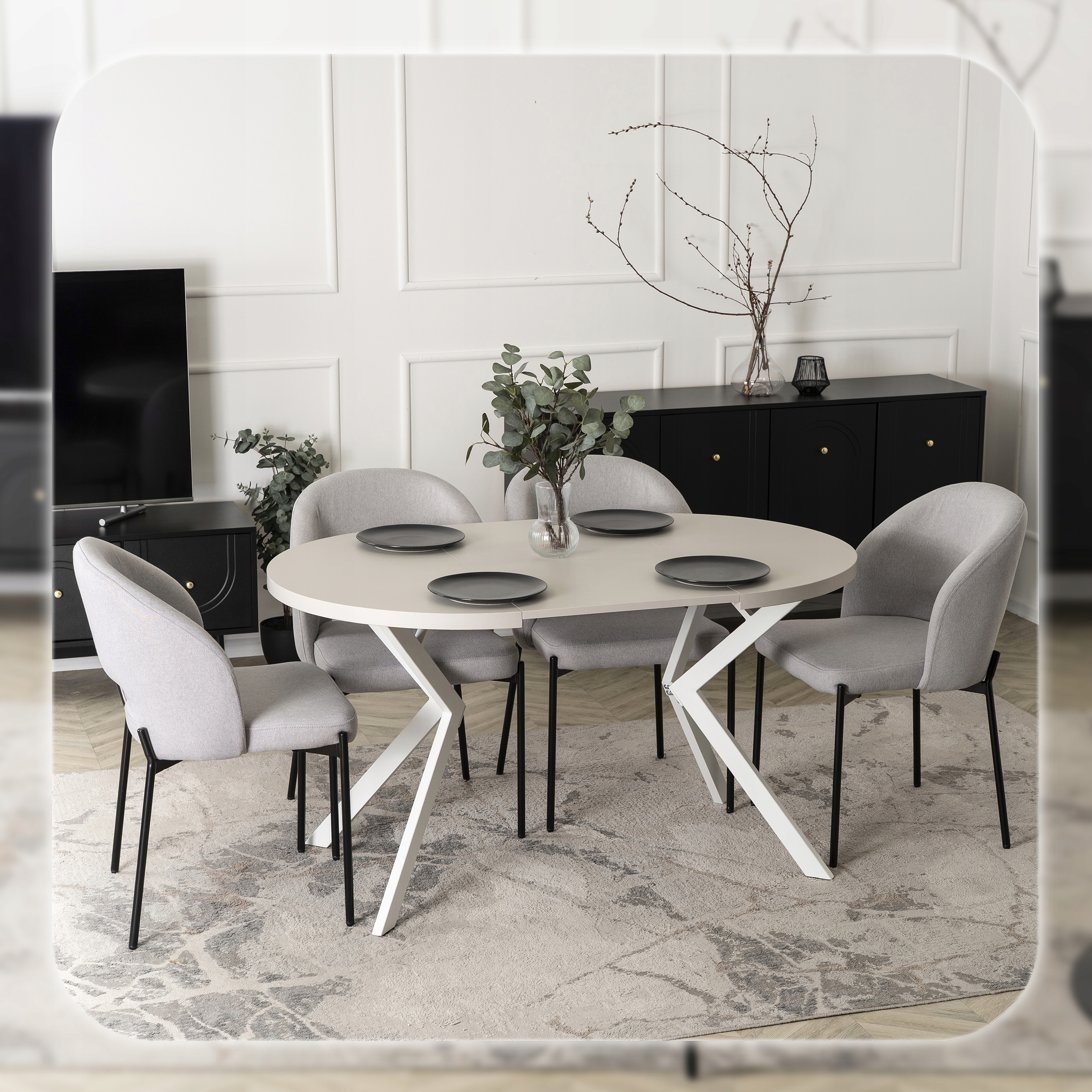 - W jadalni – elegancka szara tapicerka i czarne nogi sprawią, że każde spotkanie przy stole nabierze wyjątkowego charakteru.