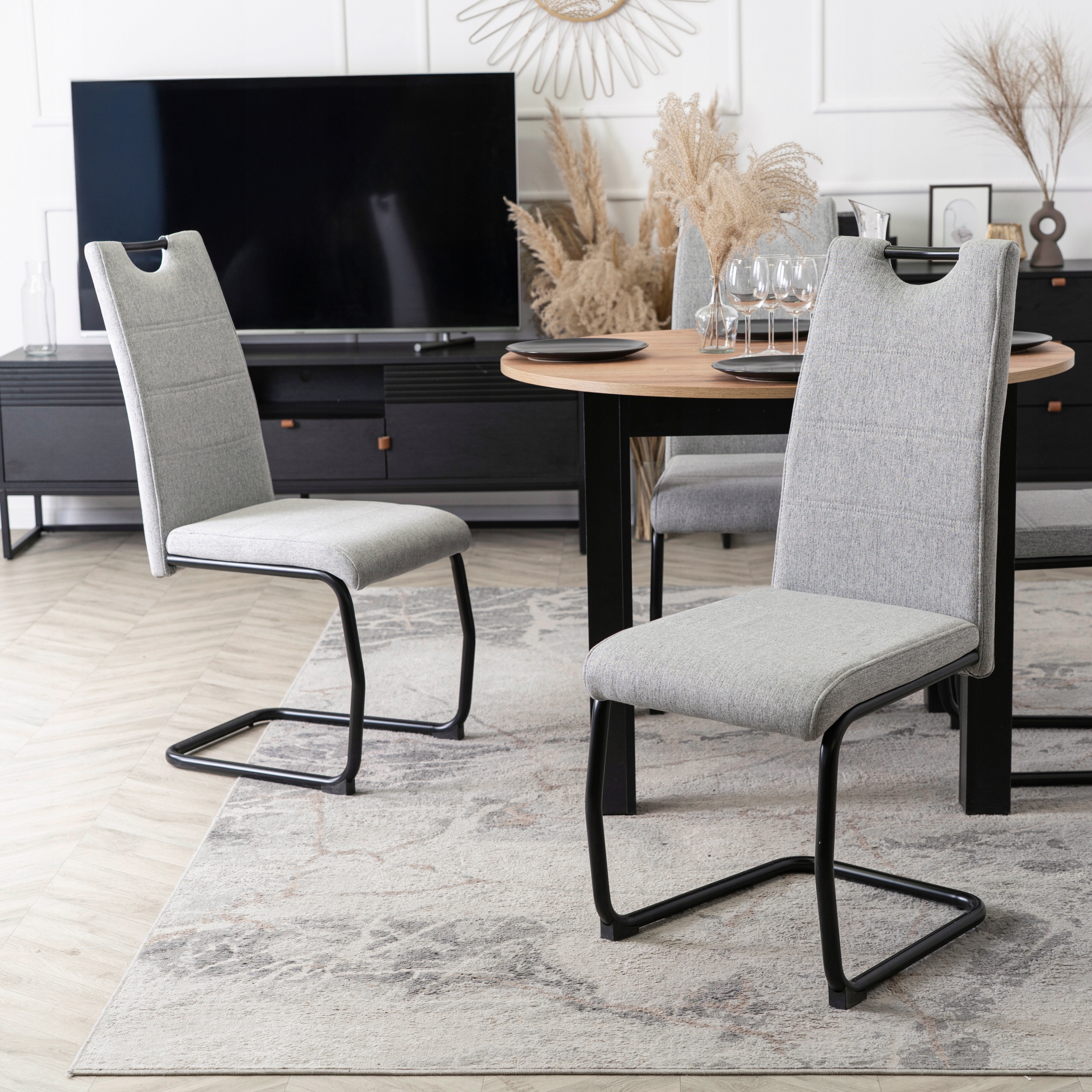 Krzesło Lopez to doskonałe połączenie nowoczesnego designu z wygodą. Tapicerowane miękką tkaniną, zapewnia wygodę i piękny wygląd. Wyprofilowane oparcie zdobią eleganckie poziome przeszycia, natomiast siedzisko osadzone jest na stylowych płozach z malowanego metalu.