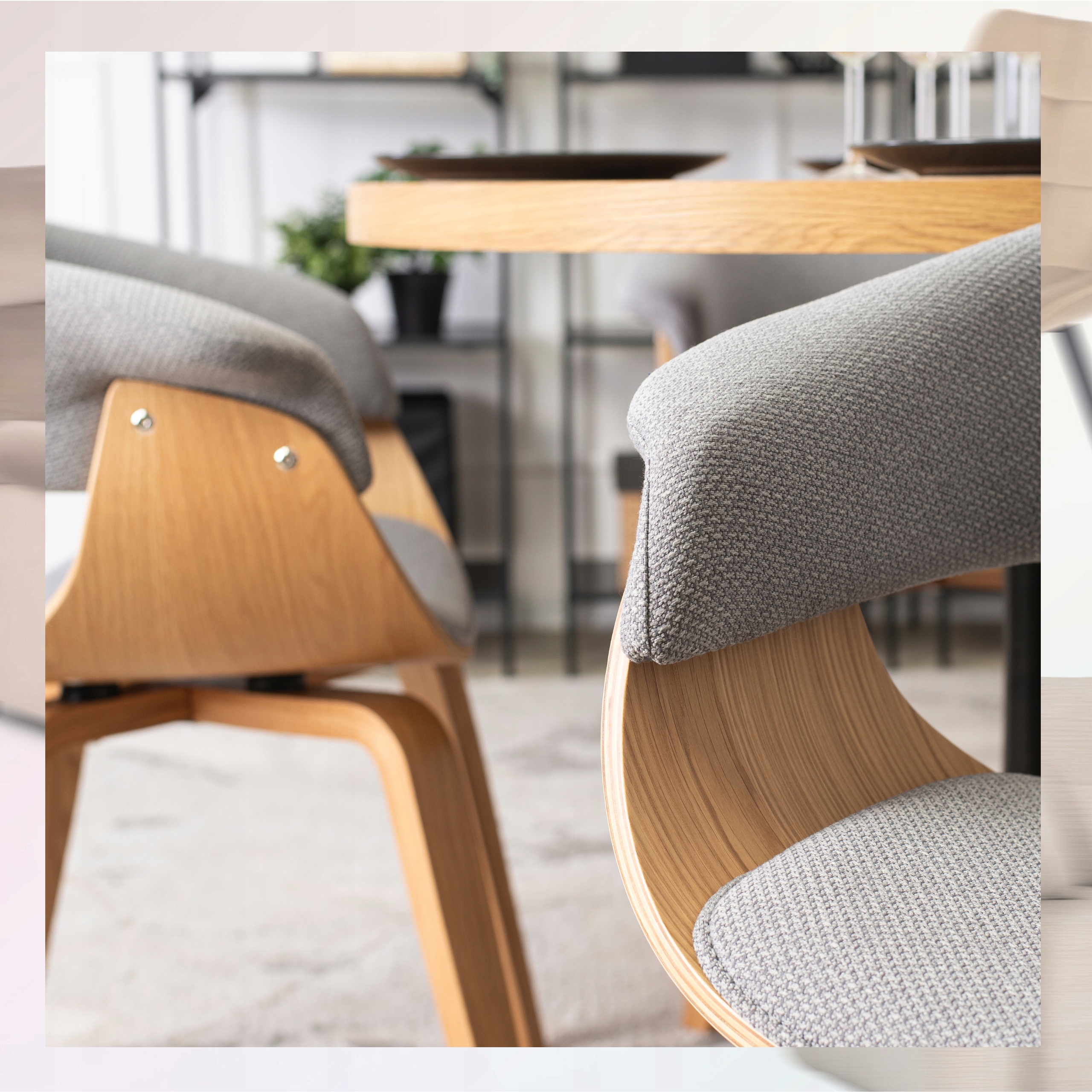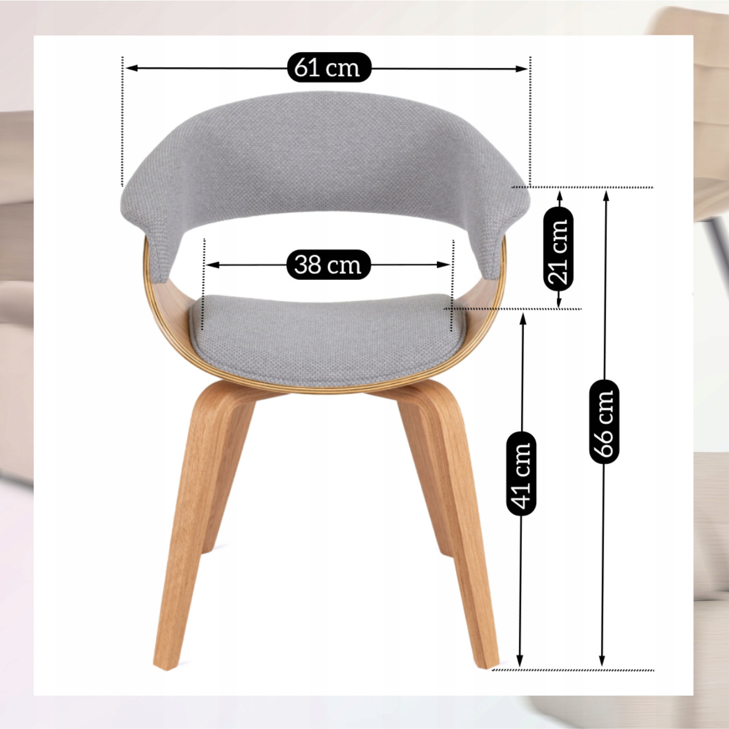 Krzesło Tapicerowane Loftowe Drewno Gięte GARY 2 Dąb Szare Do Salonu Loft ⭐⭐⭐⭐⭐