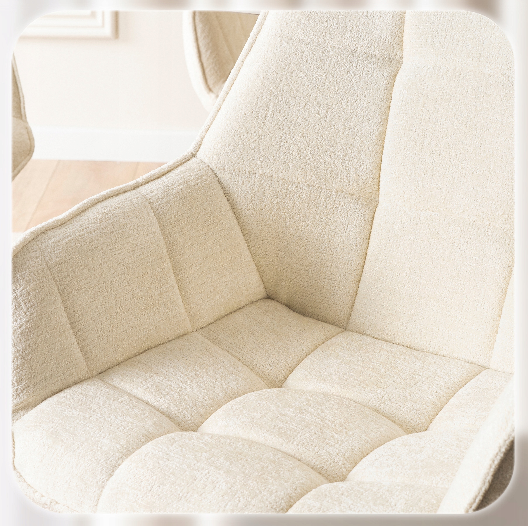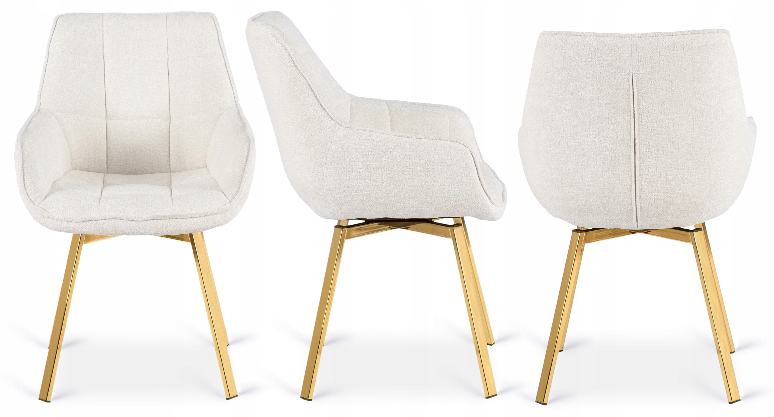 Krzesło MIA w kolorze kremowym to elegancka propozycja łącząca nowoczesny design i komfort. Miękkie siedzisko, wyprofilowane oparcie z przeszyciami oraz funkcja obrotu 360° zapewniają wygodę i praktyczność. Idealne do jadalni, kuchni, salonu oraz przestrzeni komercyjnych.